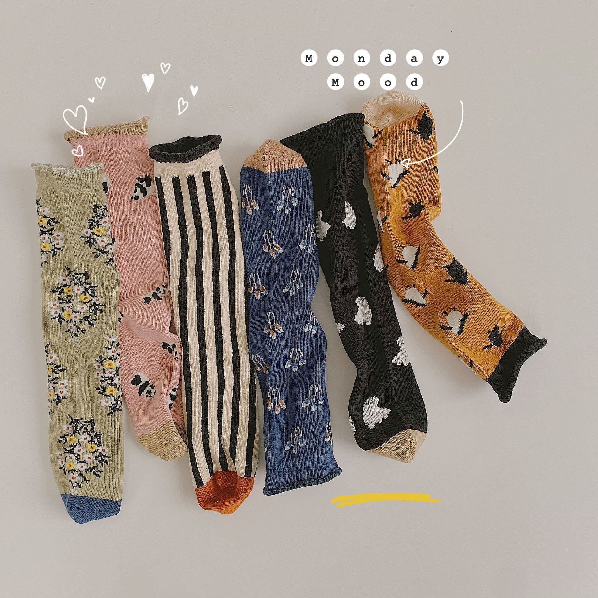 オータムソックス ストライプフローラル 秋物 タイツ ストッキング 花柄 7/7 mi0991493533934
