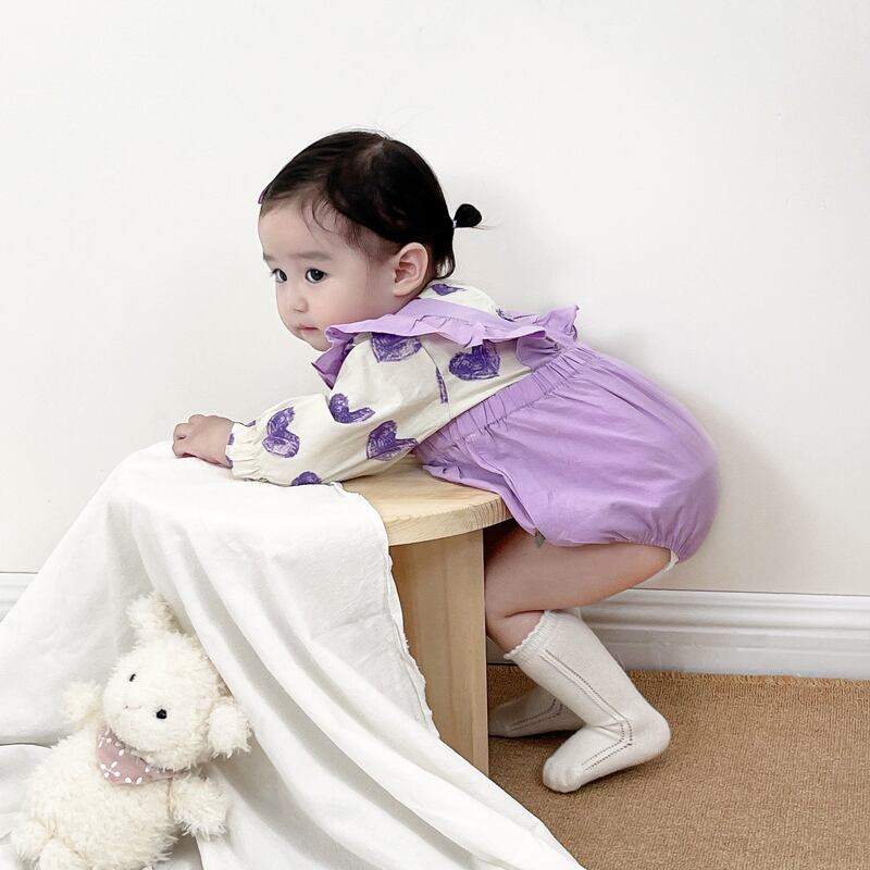 オータムスタイルトライアングルロンパース オールインワン ヘアバンド ロング 秋物 パープル 7/7 mi0964162868812