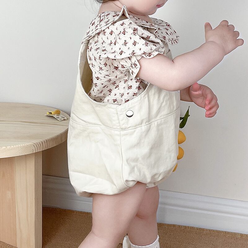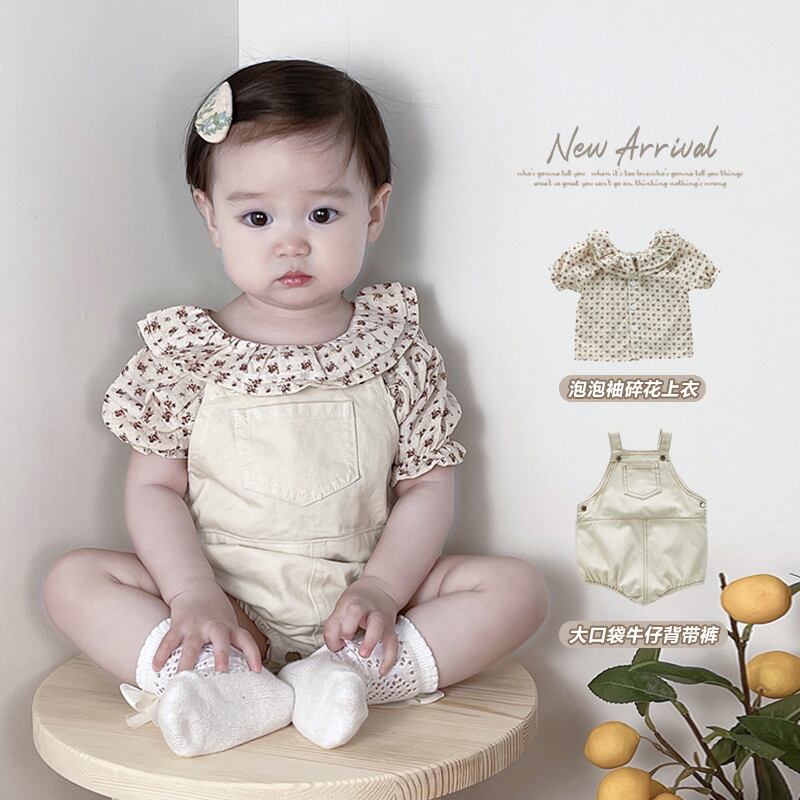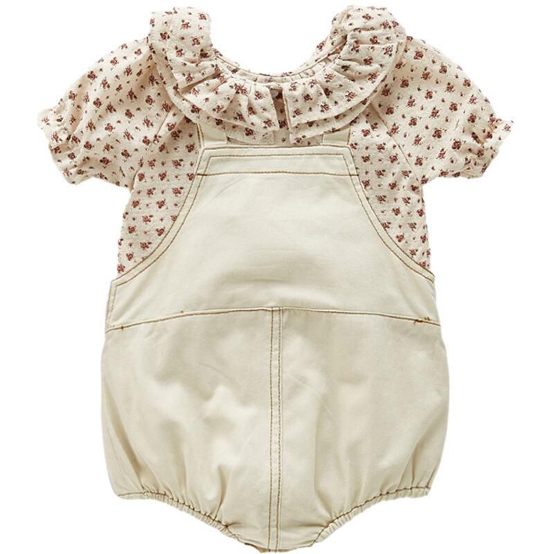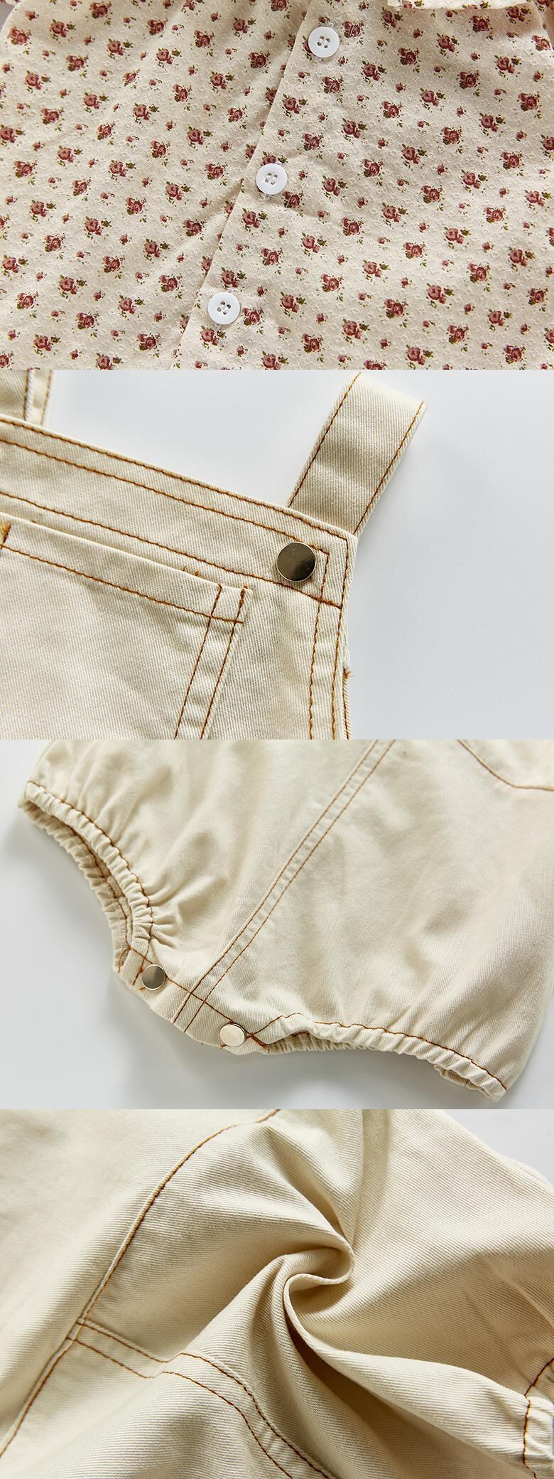 色:フローラルトップ,ベージュデニムオーバーオール,フローラルトップス+デニムオーバーオール