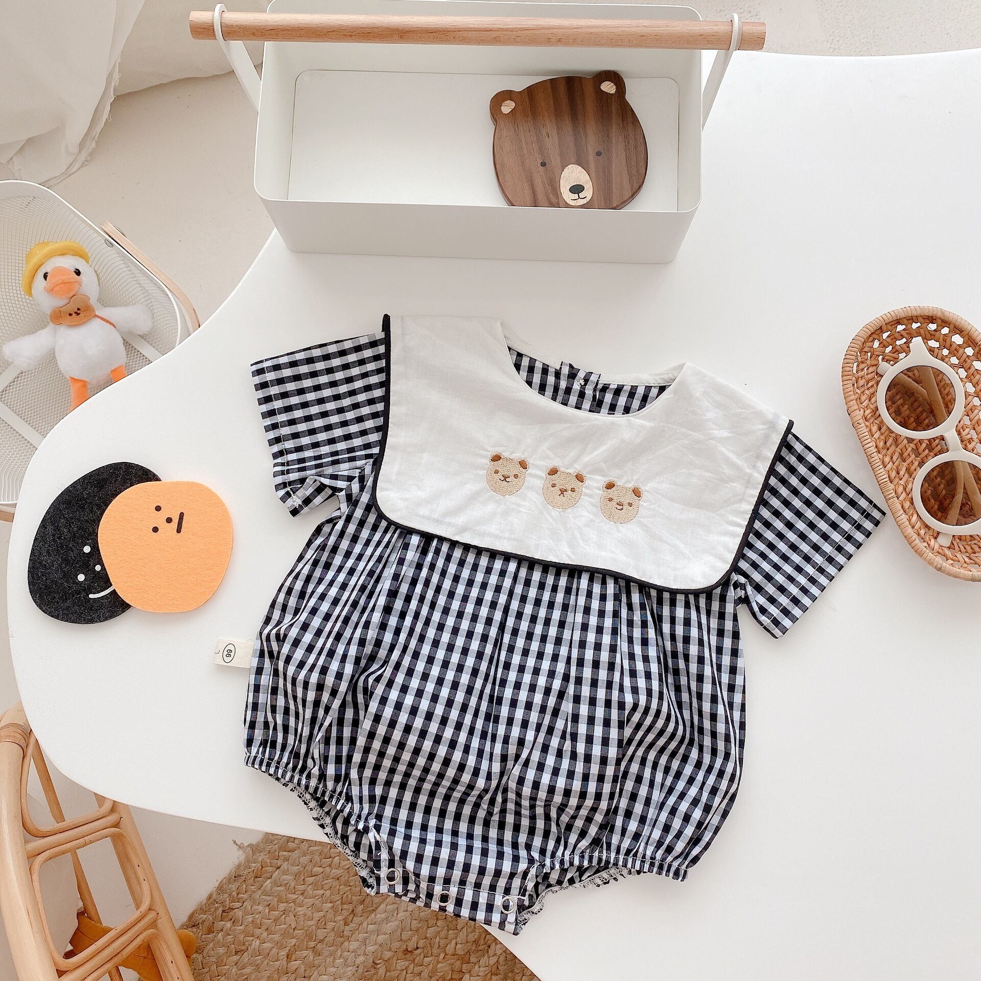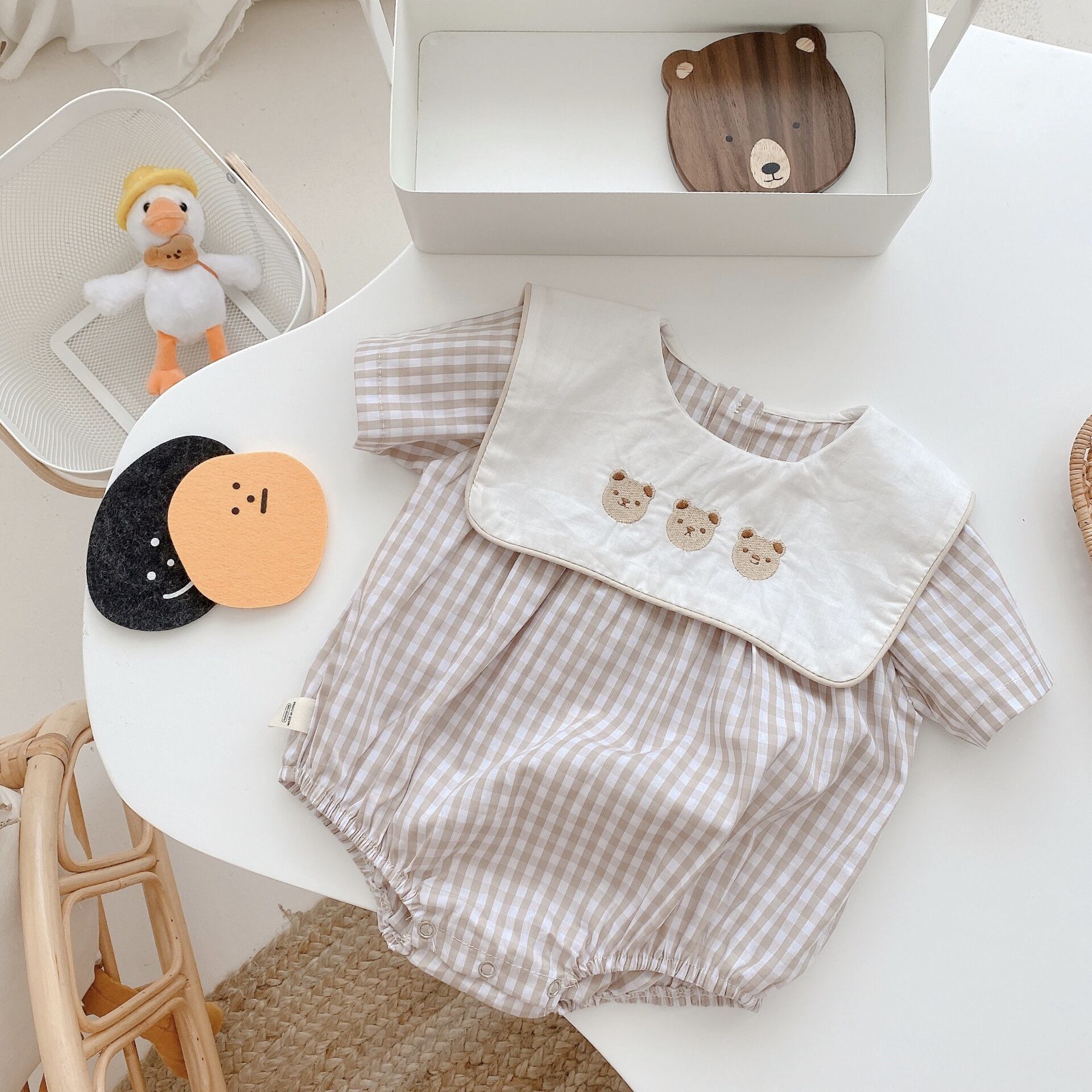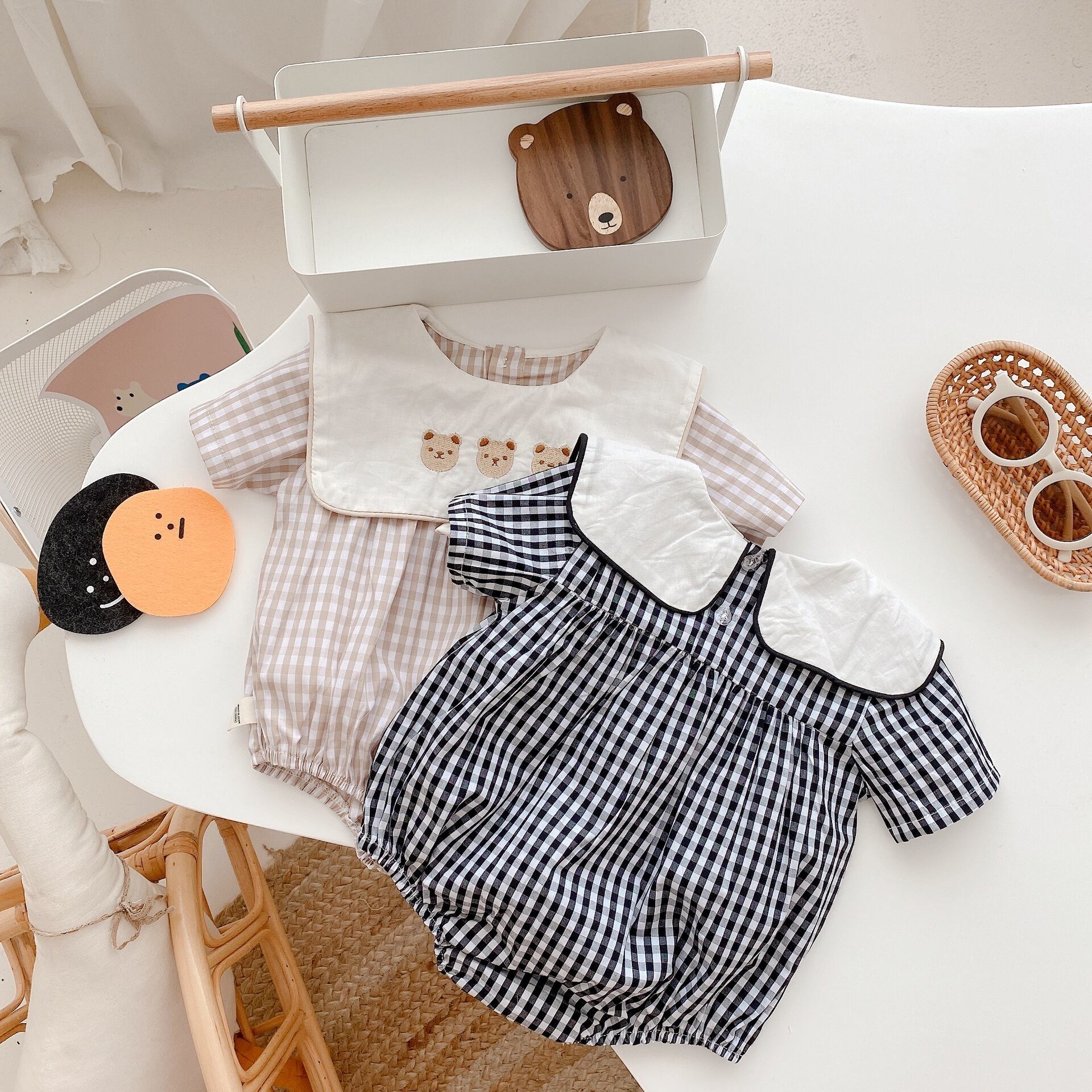 スタイルサマー格子柄ロンパース オールインワン レディース刺繍薄手 大人ガーリー スウィート キュート カジュアル 夏物 7/7 mi0989359494627