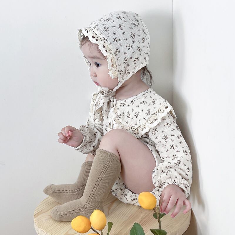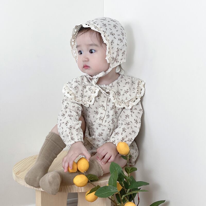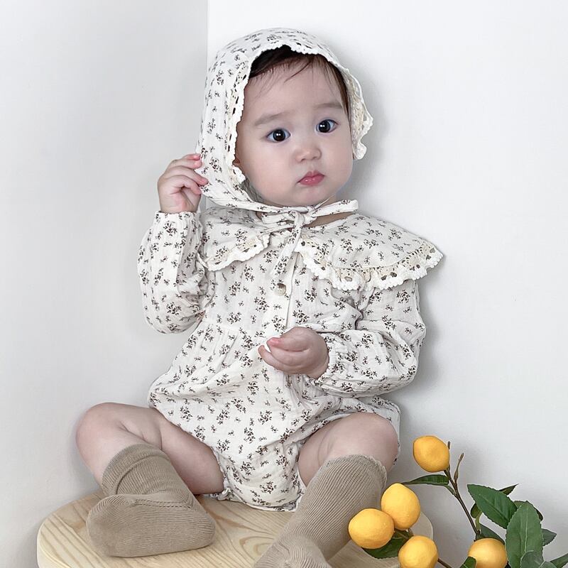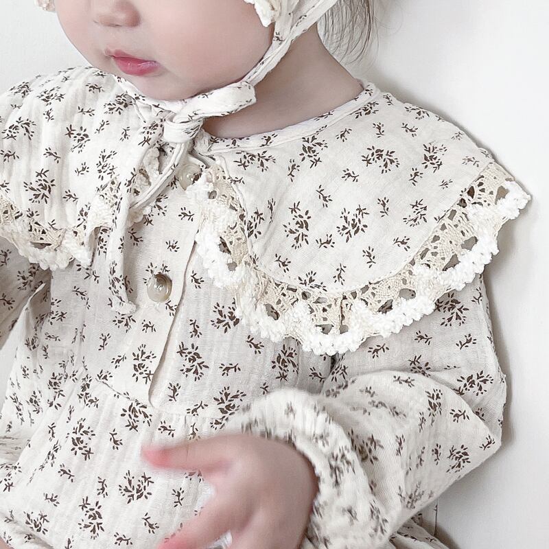 オータムスタイルフローラル長袖スリーブドレス トライアングルロンパース オールインワン ロング 帽子 大人ガーリー スウィート キュート カジュアル 秋物 花柄 7/7 mi0965922924600
