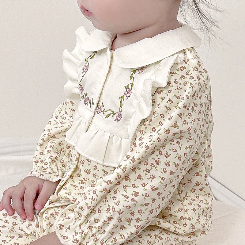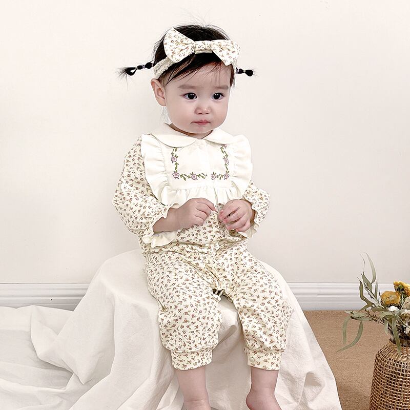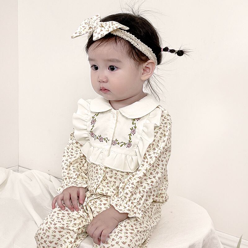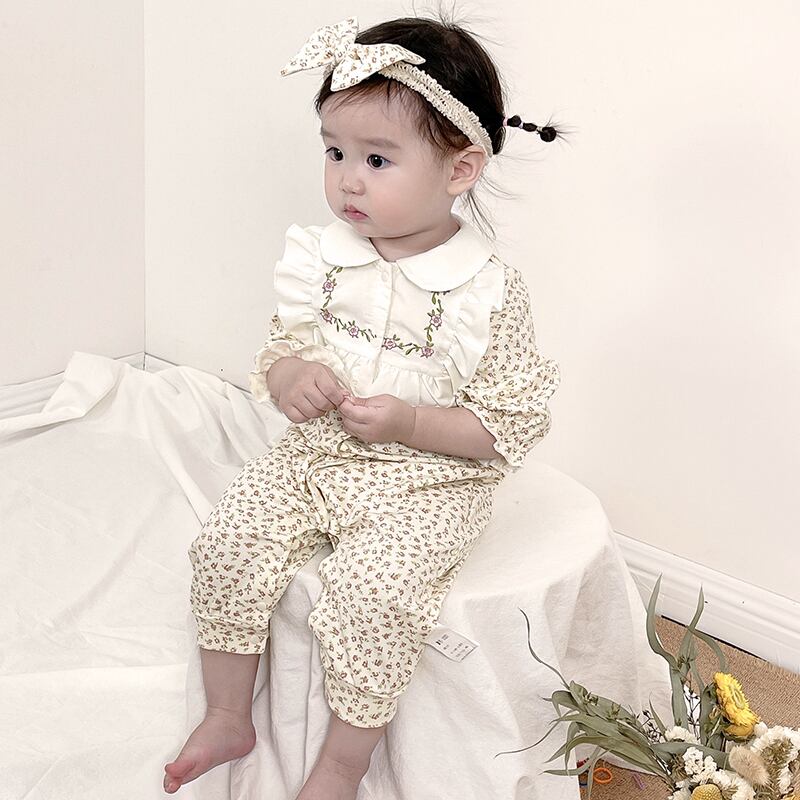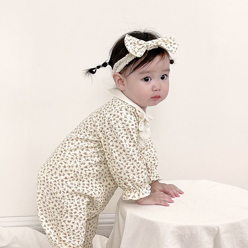 オータムカラーフローラルワンピースロンパース オールインワン ヘアバンド 大人ガーリー スウィート キュート カジュアル 秋物 花柄 7/7 mi0977417176155