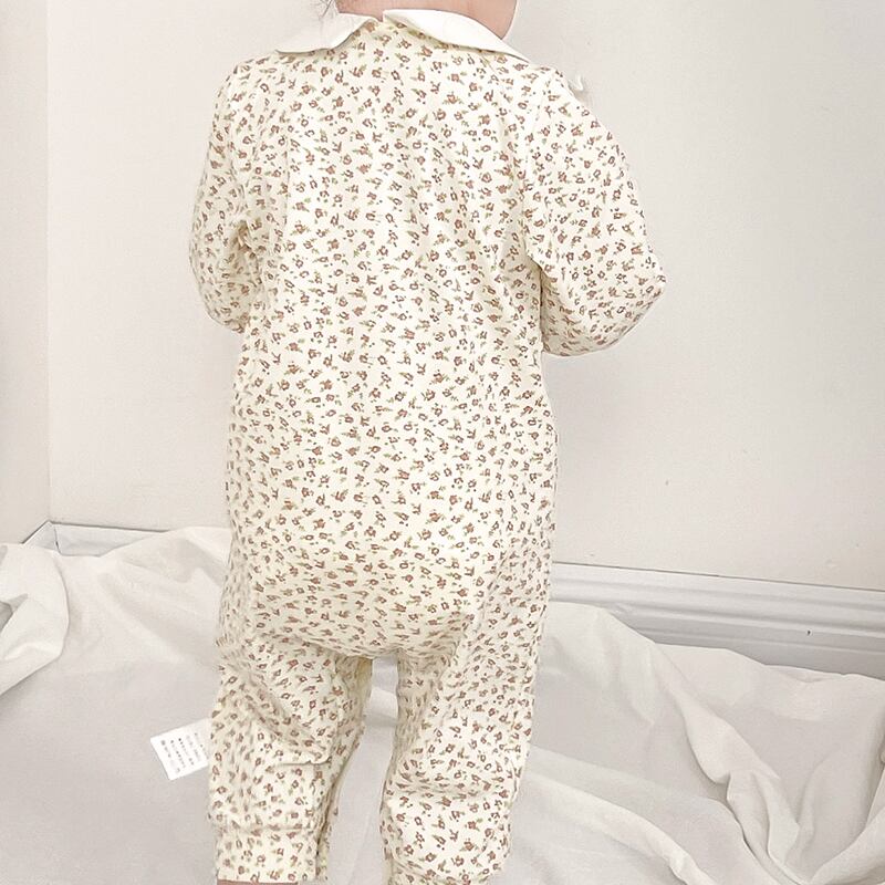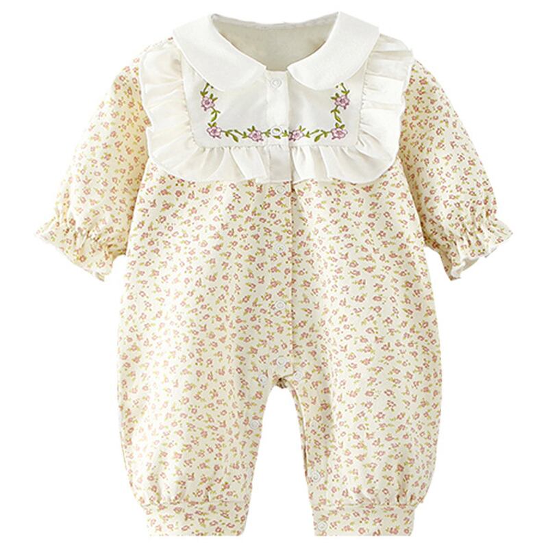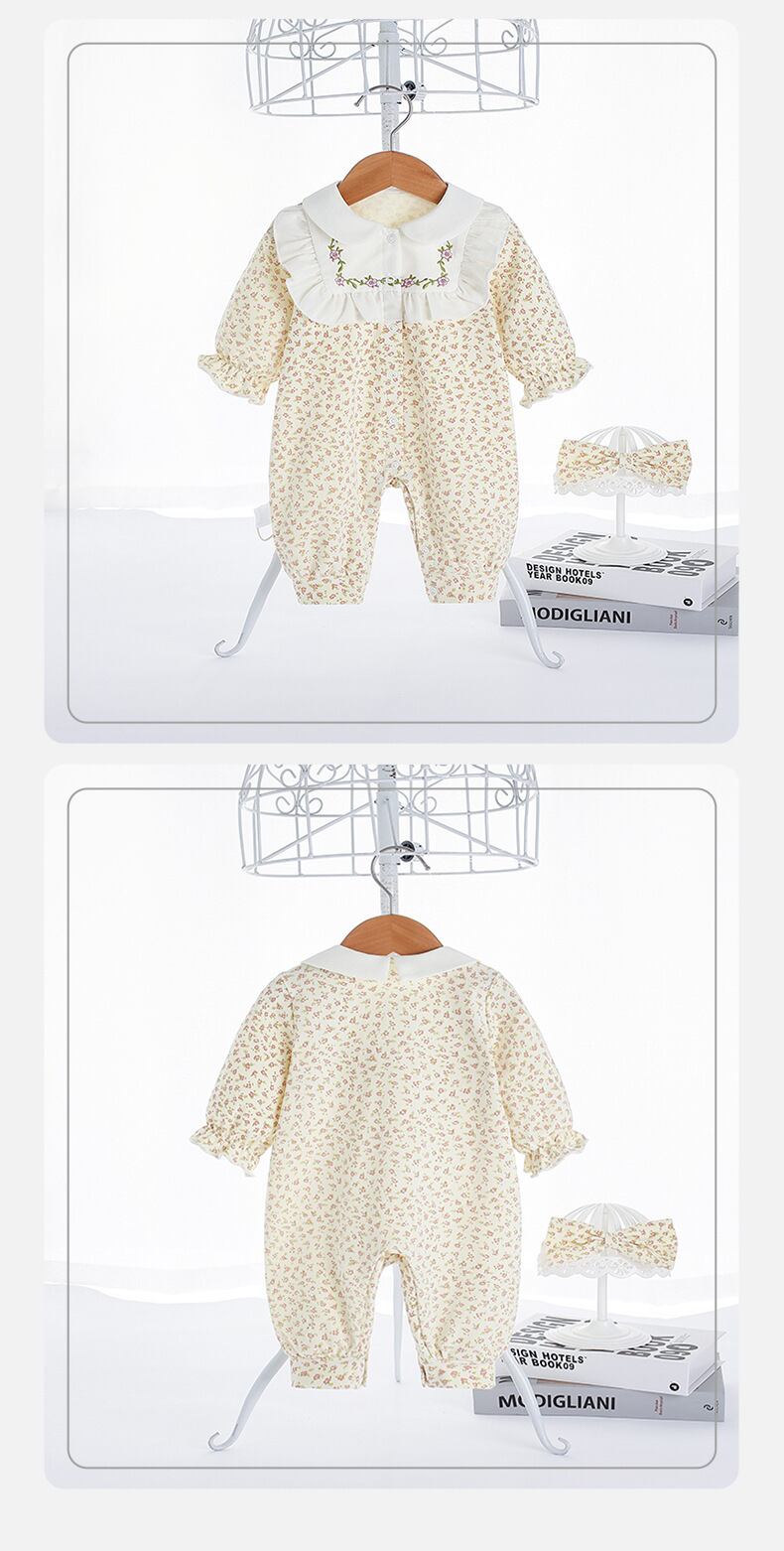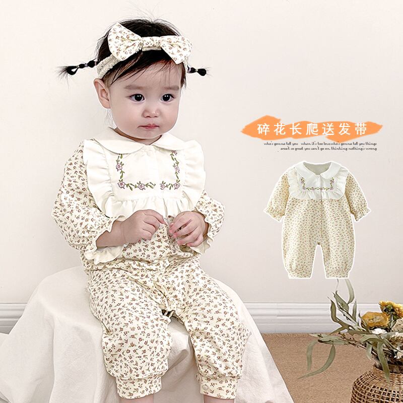 オータムカラーフローラルワンピースロンパース オールインワン ヘアバンド 大人ガーリー スウィート キュート カジュアル 秋物 花柄 7/7 mi0977417176155