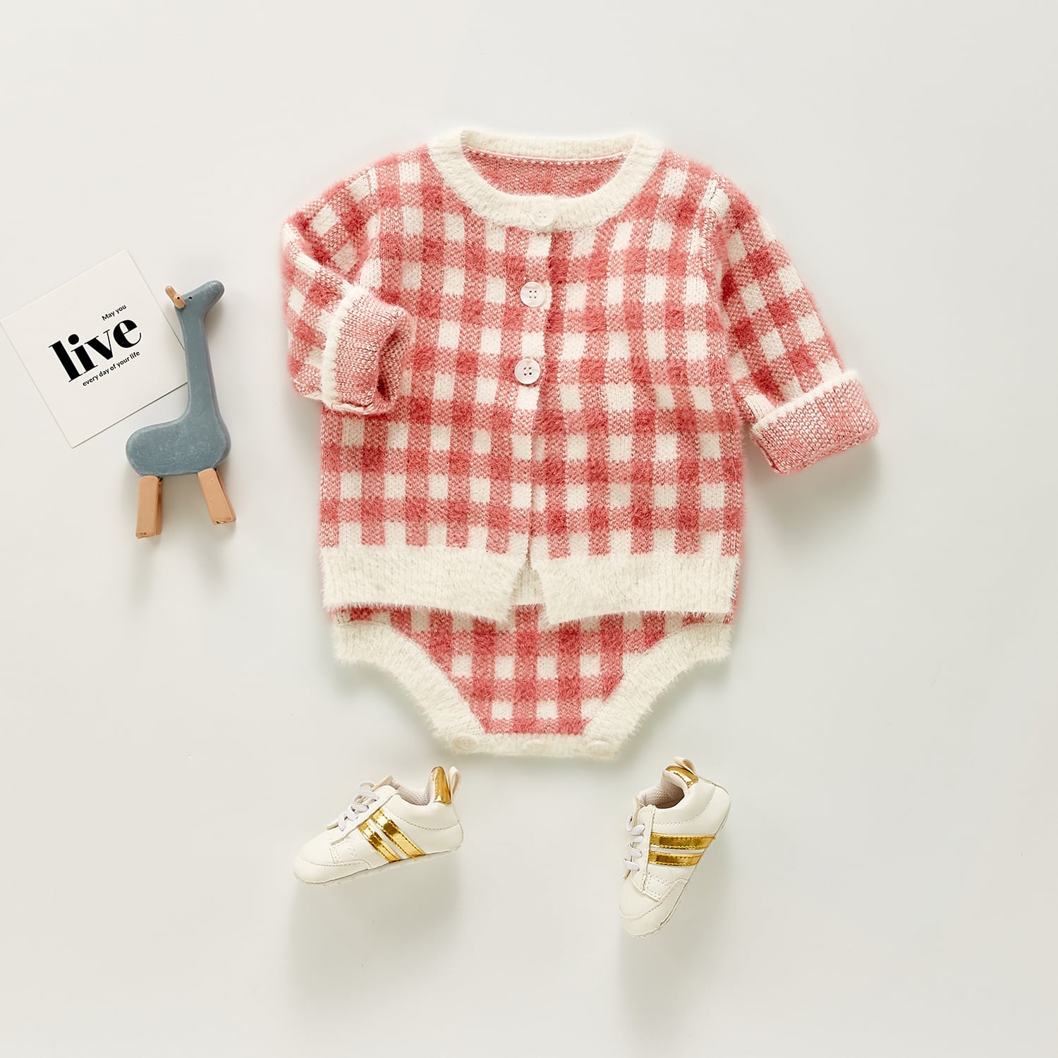 ニットセーター スプリングオータム格子柄ロンパース オールインワン 春物 秋物 8/3 mi09510118805 | Sagittarius By Constellation -KIDS&BABY-