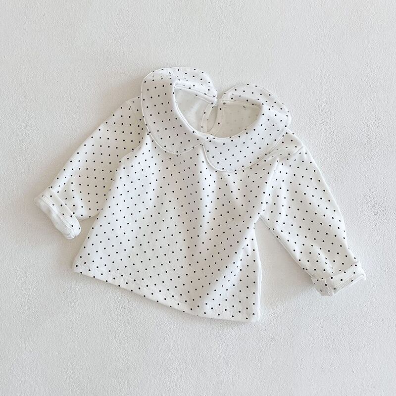 シャツ オータムホワイトトップス 長袖スリーブ水玉Tシャツ ロング コットン 秋物 8/3 mi0931662891457 | Sagittarius By Constellation -KIDS&BABY-