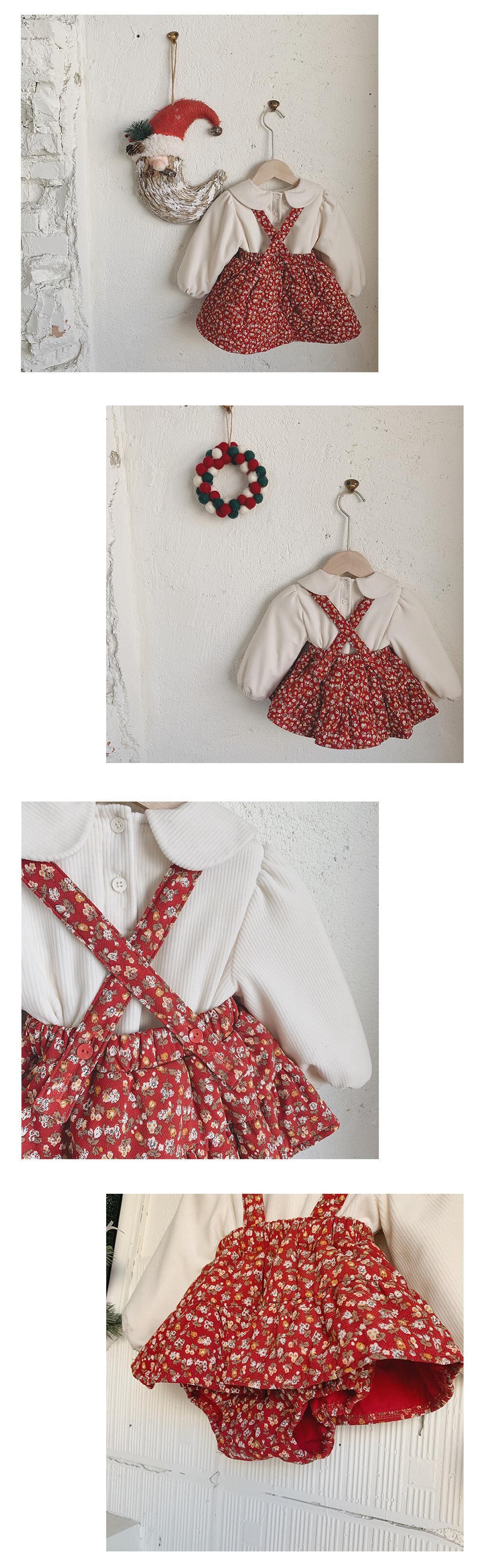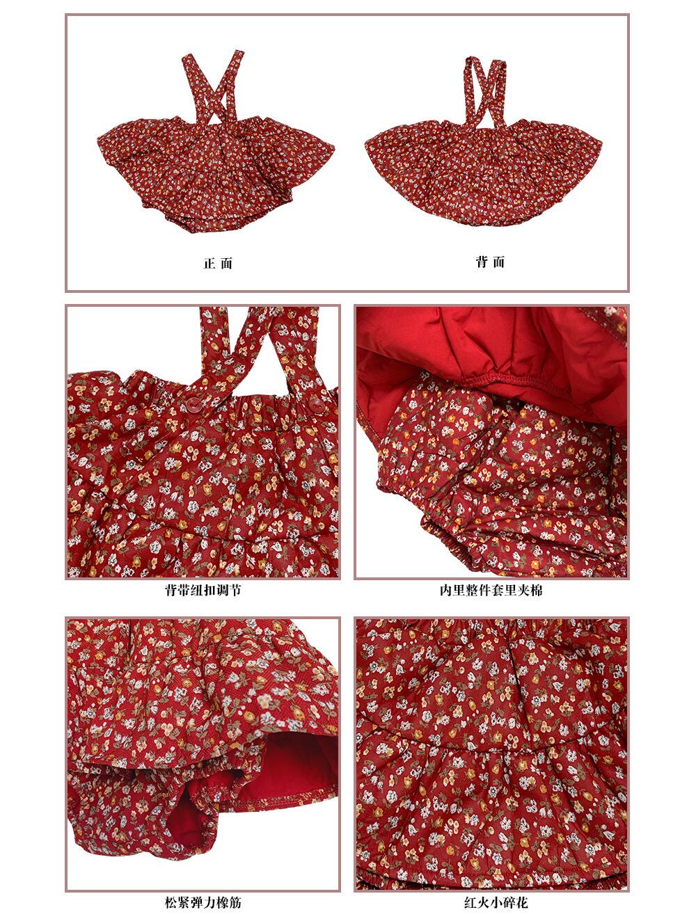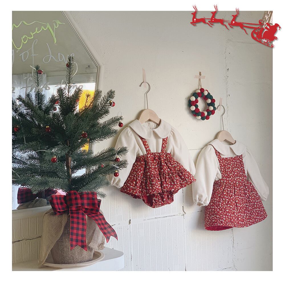ウィンターフローラルロンパース オールインワン スカート コットン 冬物 花柄 9/24 秋冬 mi0953173767399