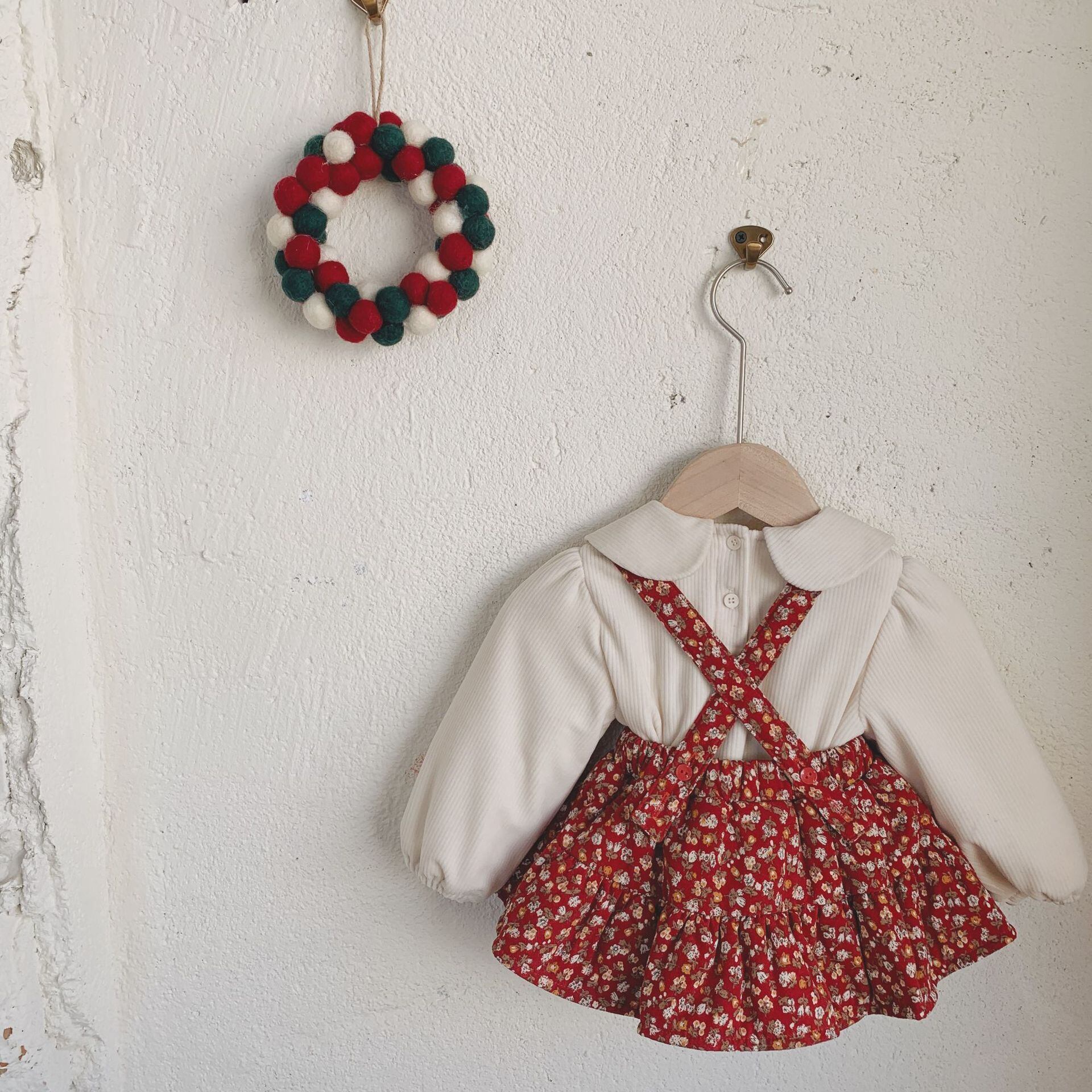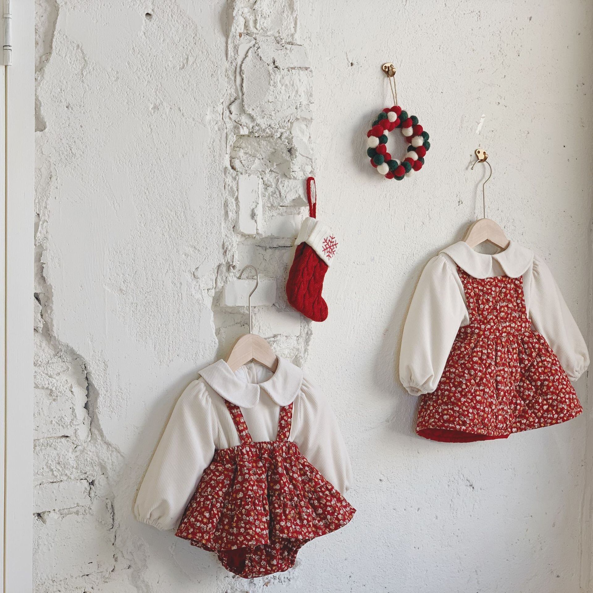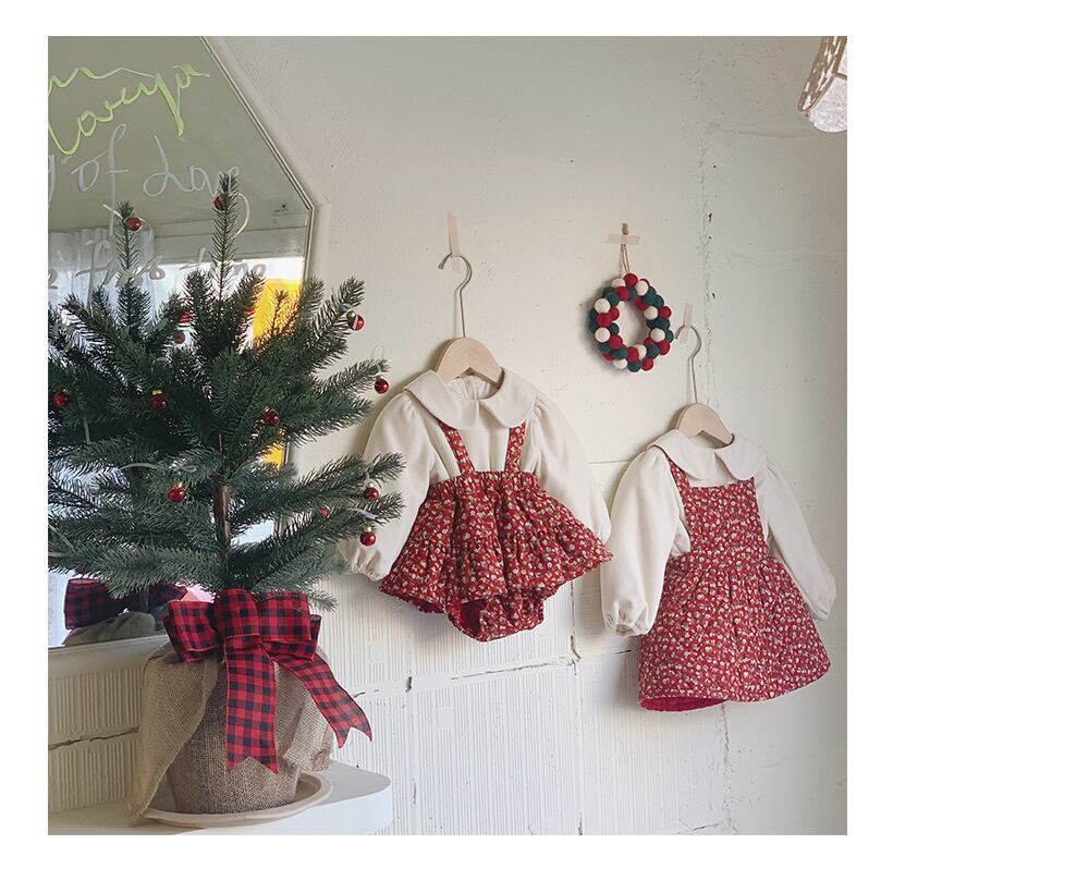 ウィンターフローラルロンパース オールインワン スカート コットン 冬物 花柄 9/24 秋冬 mi0953173767399