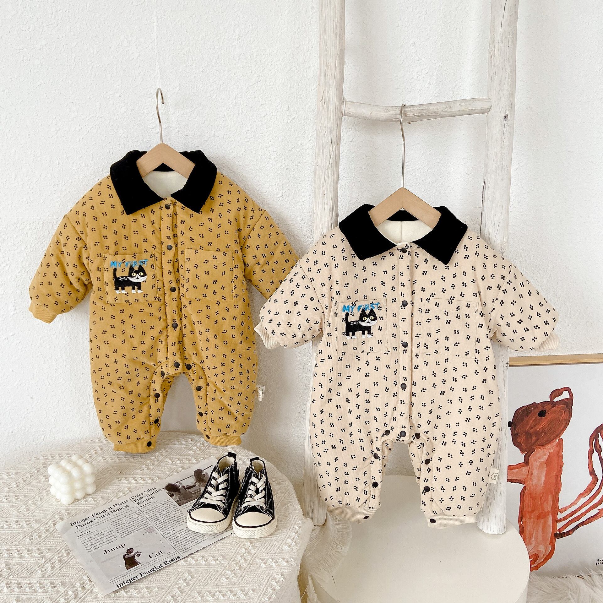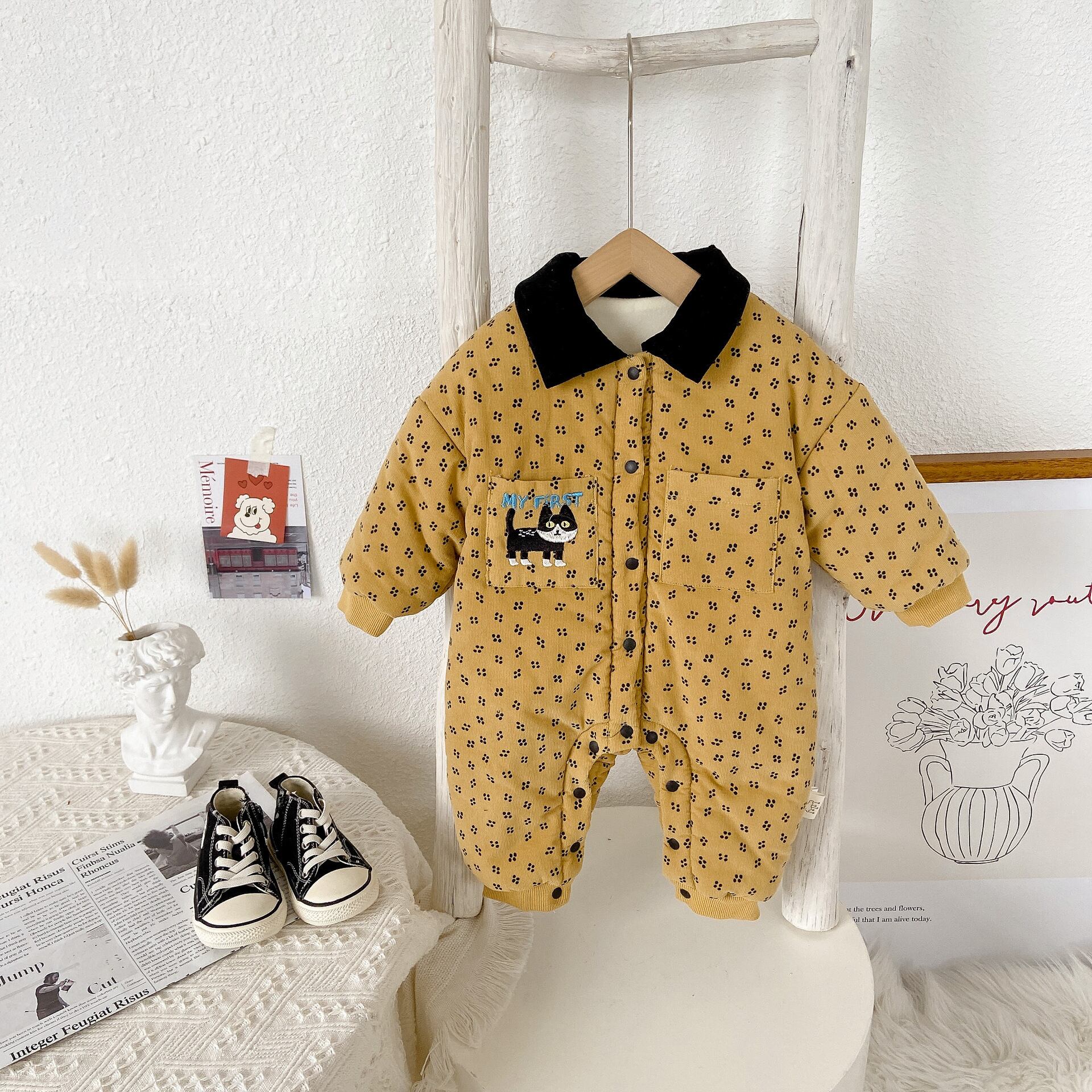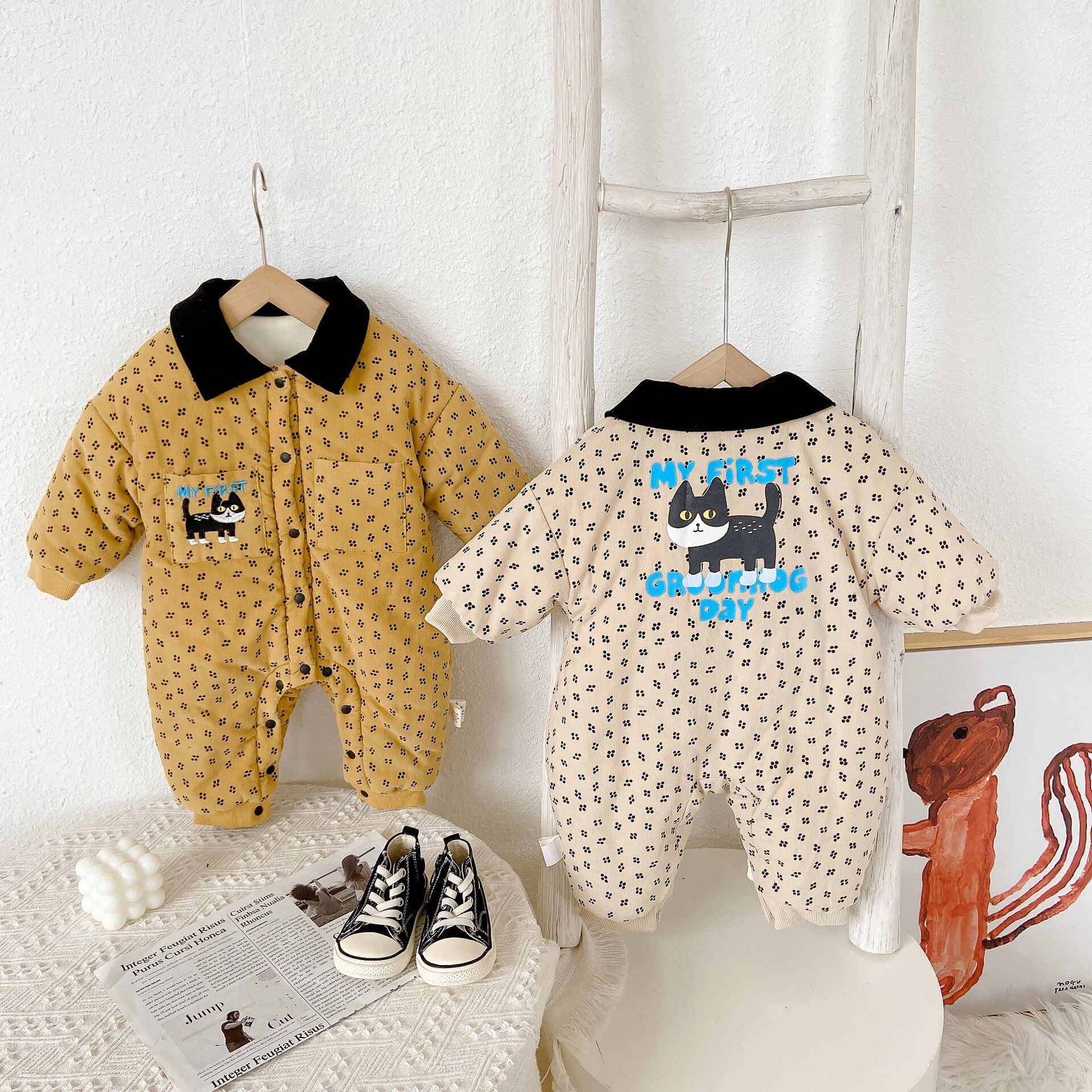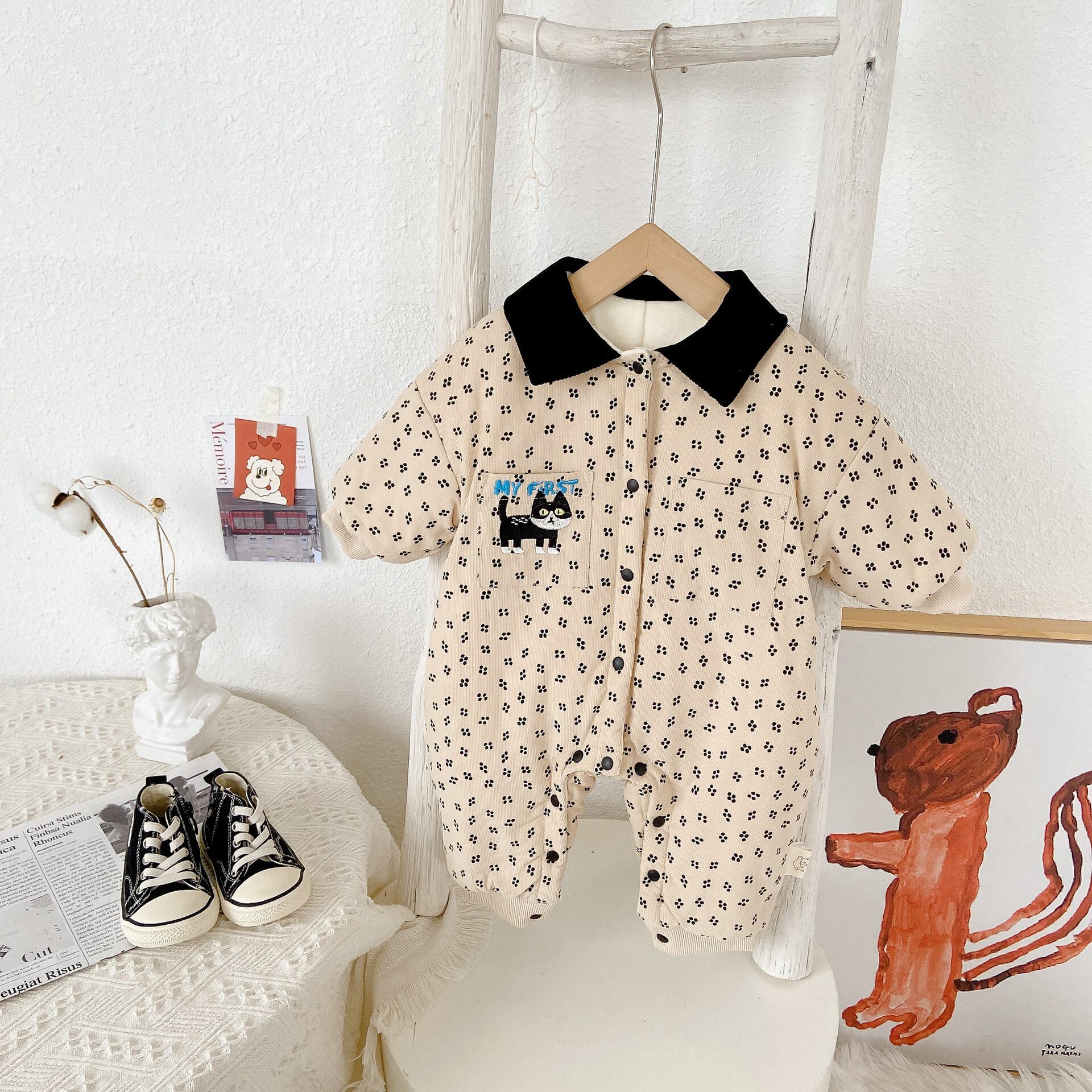 オータムウィンタープリントジャンプスーツ オールインワン スタイル コットン 大人ガーリー スウィート キュート カジュアル 秋物 冬物 9/24 秋冬 mi0932903360204