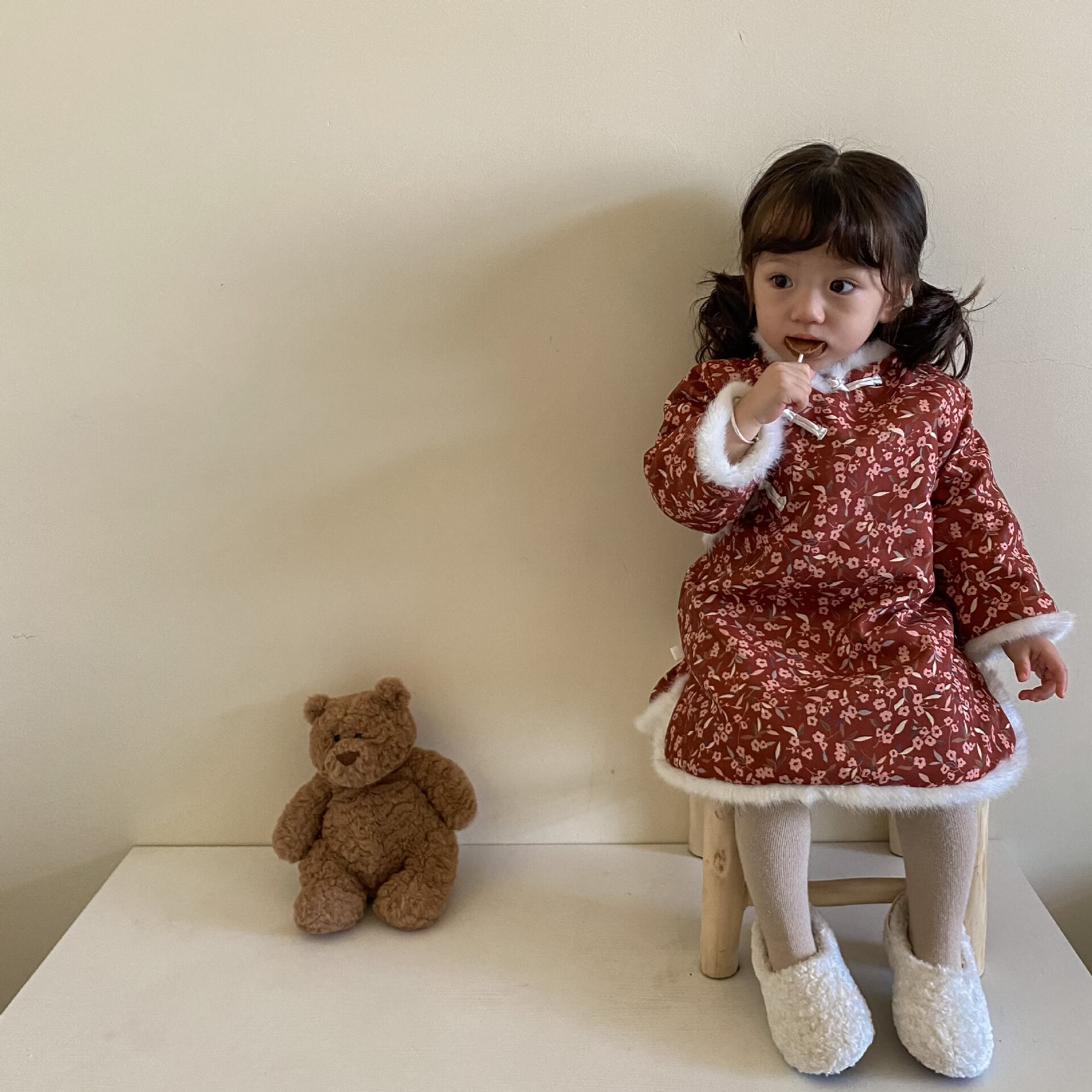 ウィンターフローラルドレス レッド 冬物 花柄 9/24 秋冬 mi0950500469350