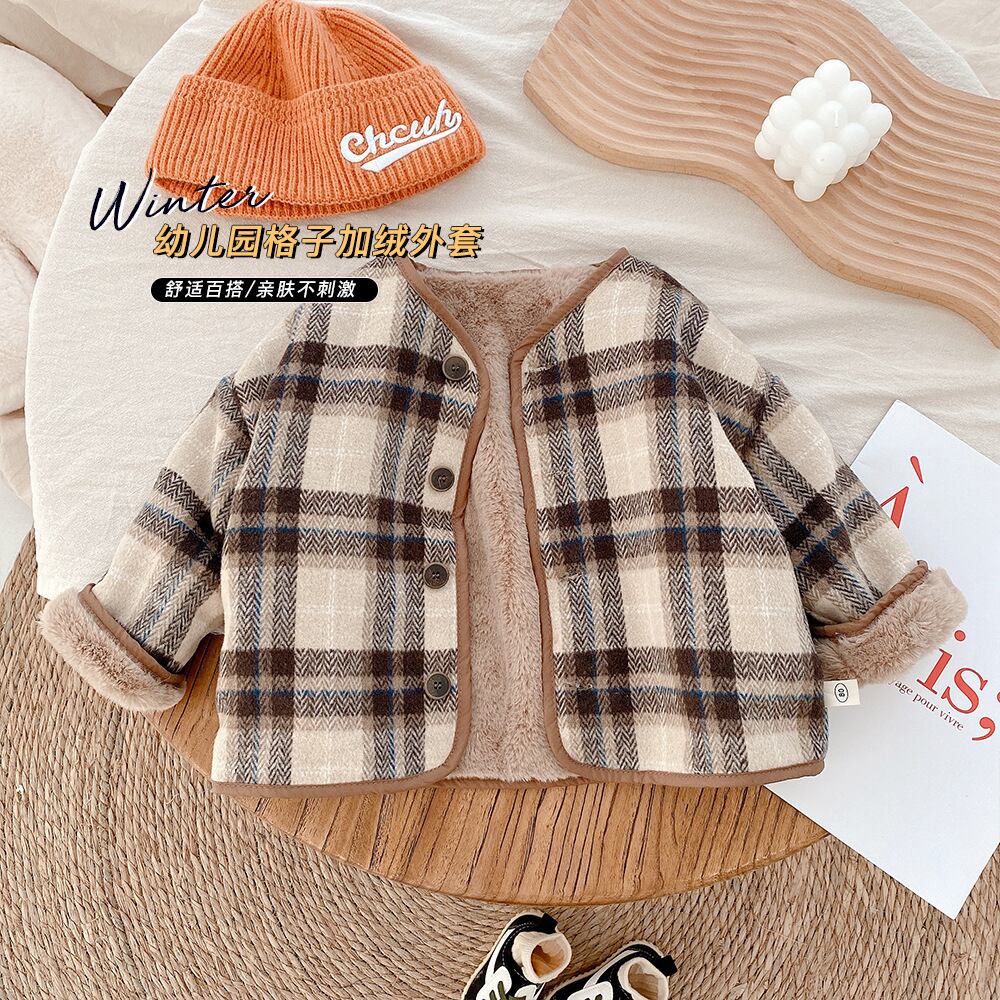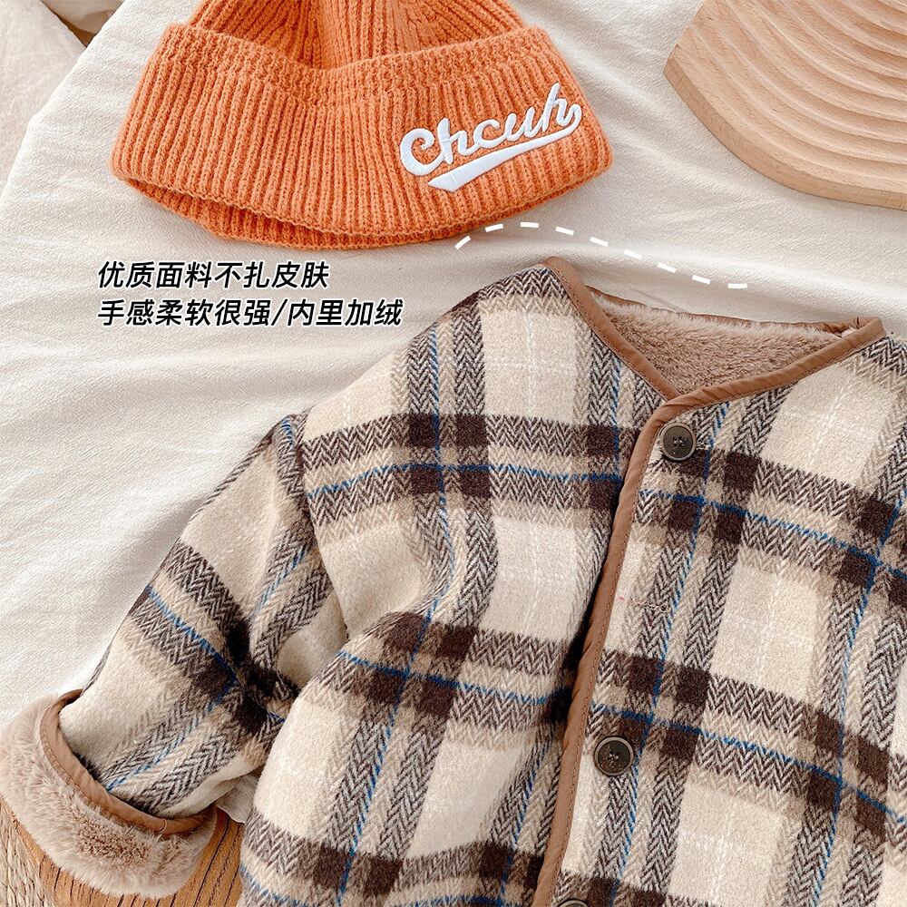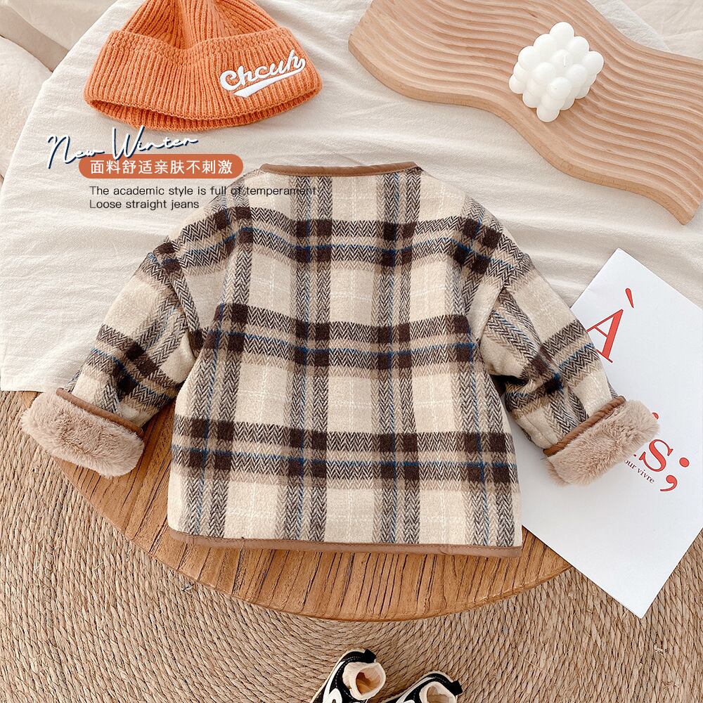 ウィンター格子柄ベルベットスタイルジャケット カジュアル 冬物 9/24 秋冬 mi0914133892245