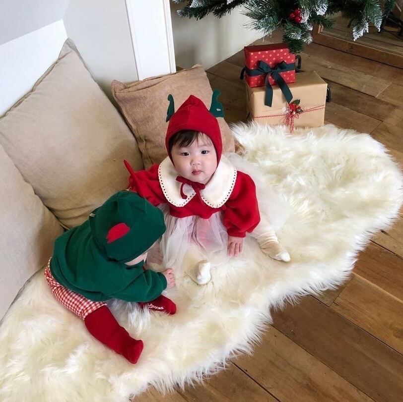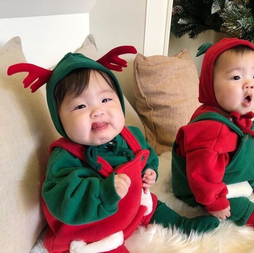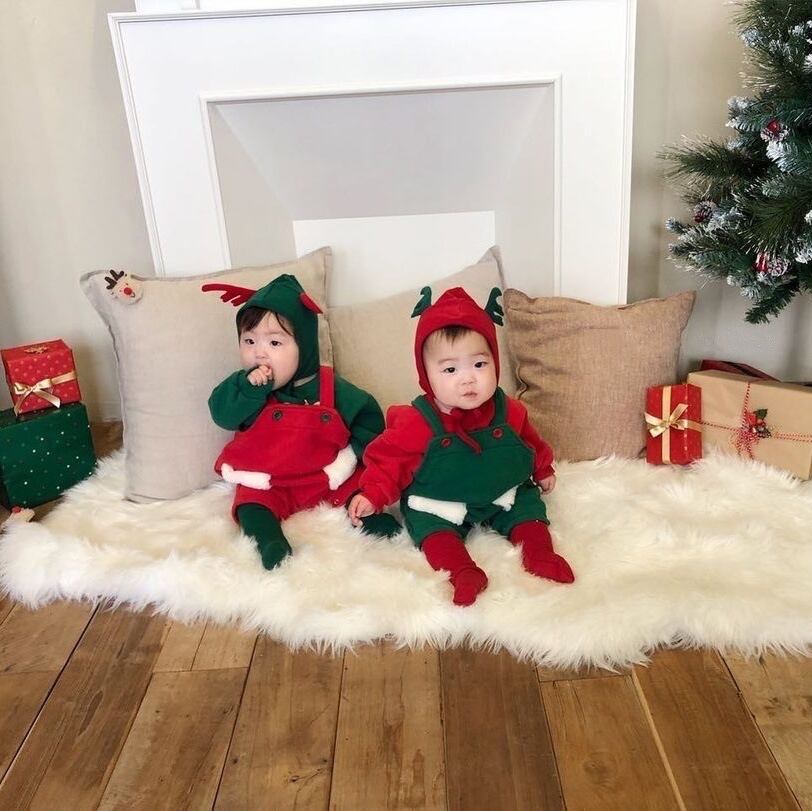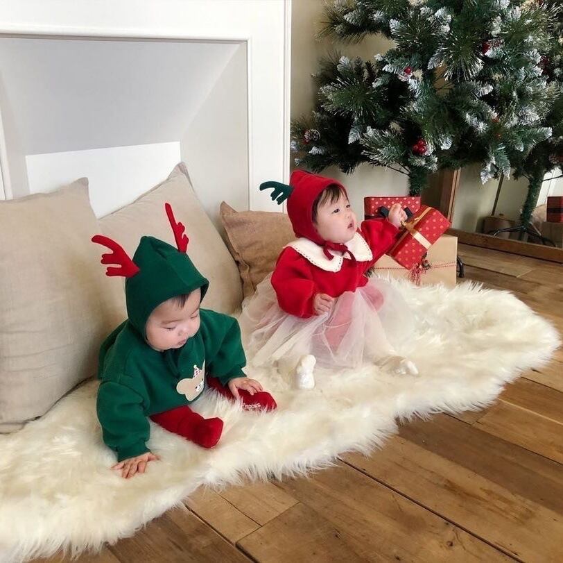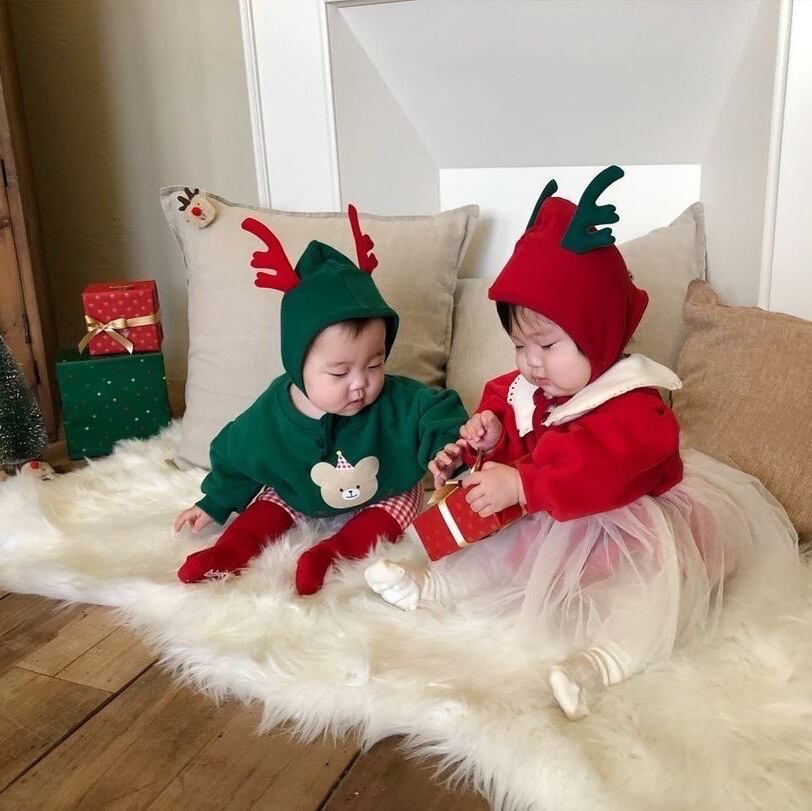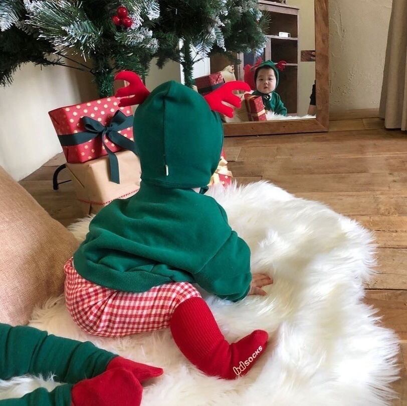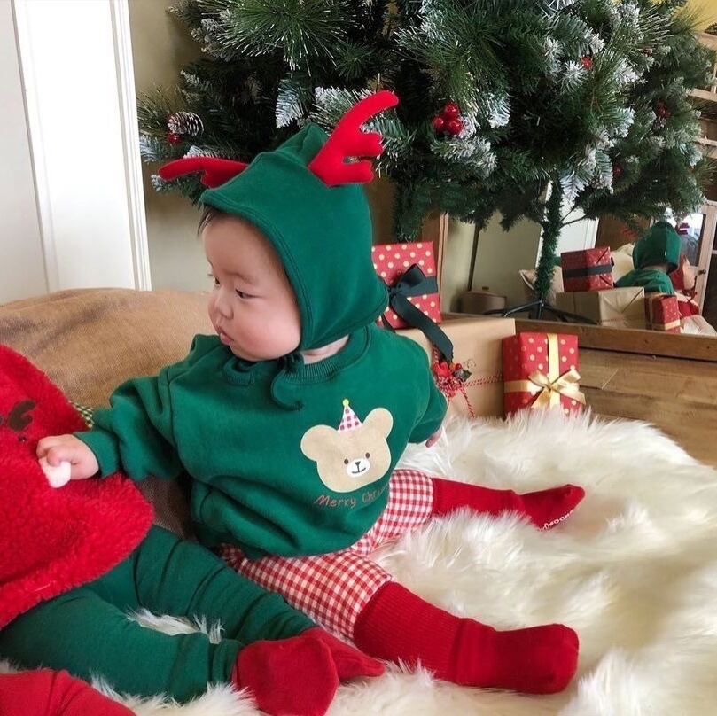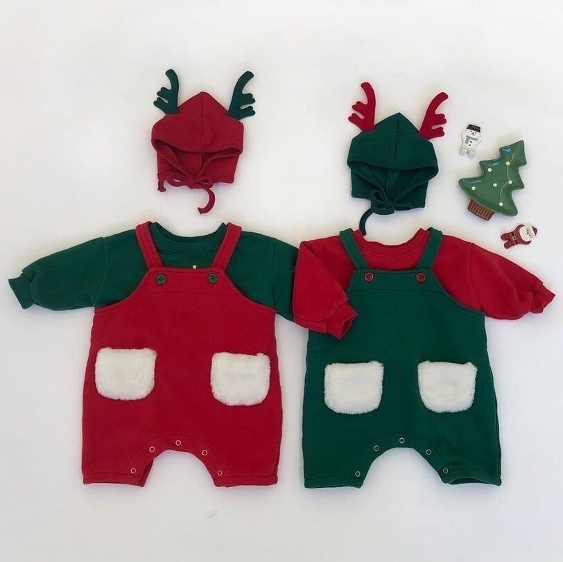 色:スウェットシャツレッド,スウェットシャツグリーン,ベビーバッグパンツ赤,ベビーバッグパンツグリーン,赤いアントラーハット,グリーンアントラーハット