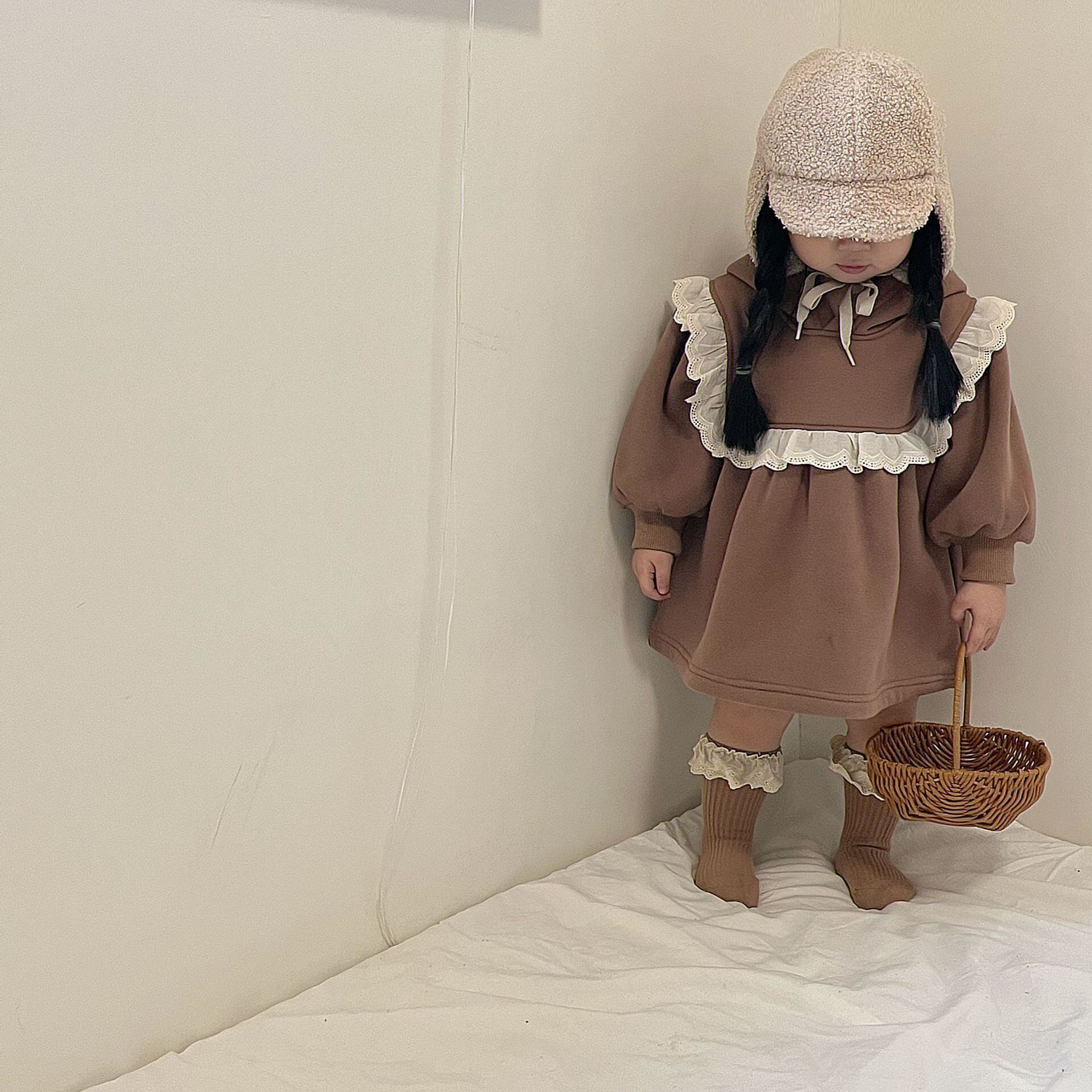 ウィンターレースフードベルベットセーター ドレス スカート 大人ガーリー スウィート キュート カジュアル 冬物 9/24 秋冬 mi0927128549284