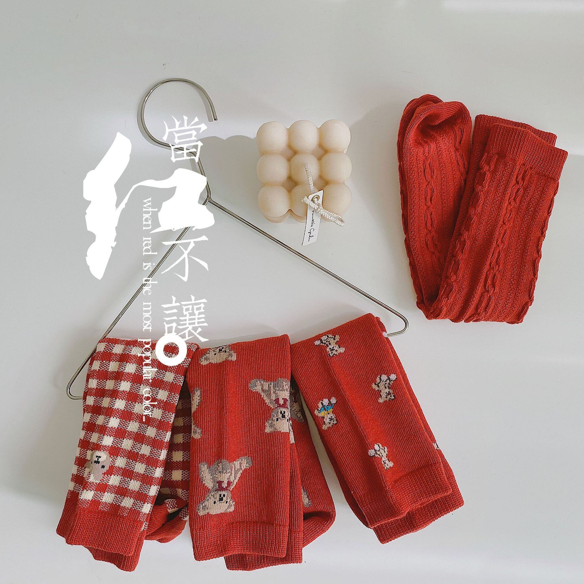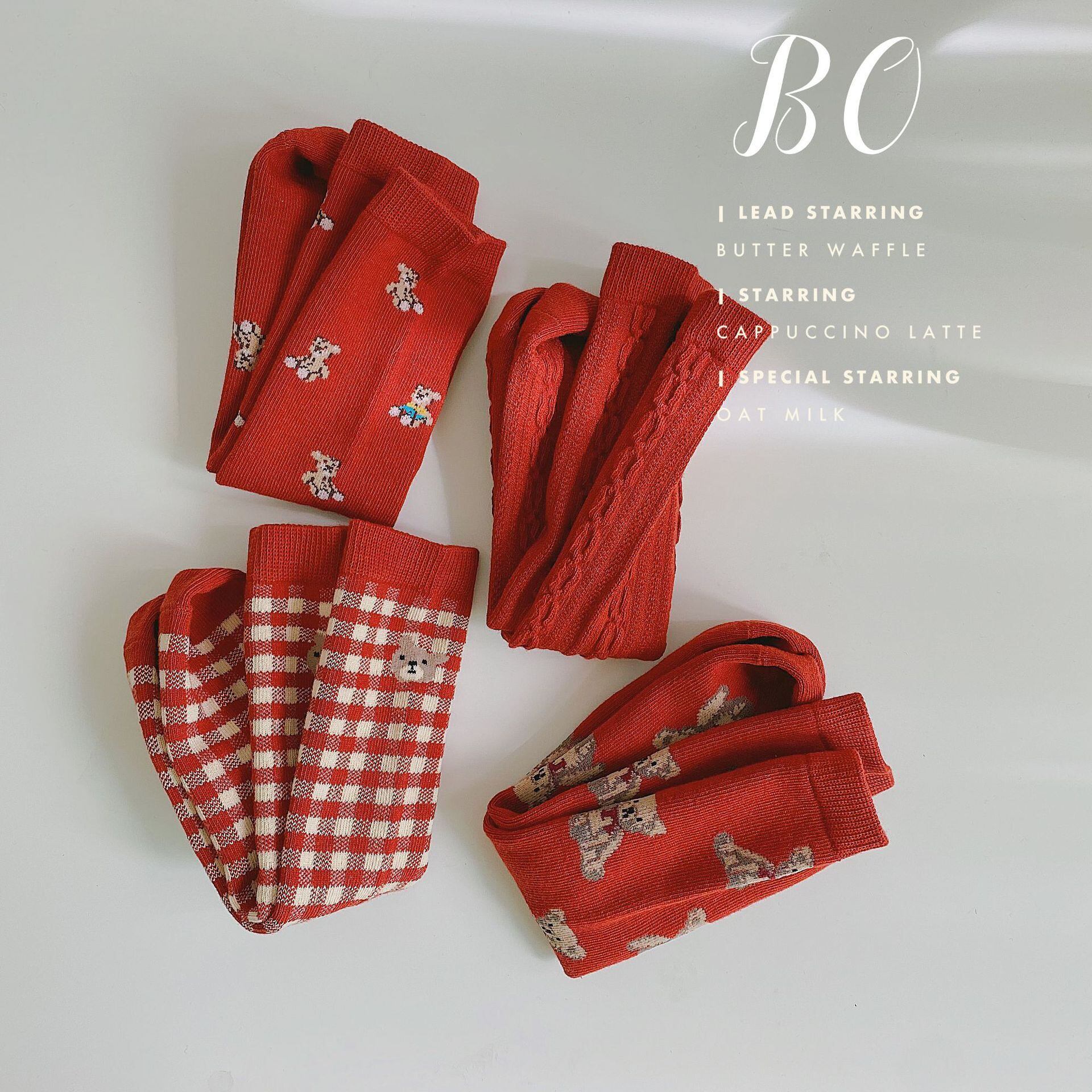 オータムウィンターソックス レッド コットン 大人ガーリー スウィート キュート カジュアル 秋物 冬物 タイツ ストッキング 9/24 秋冬 mi0912829387224