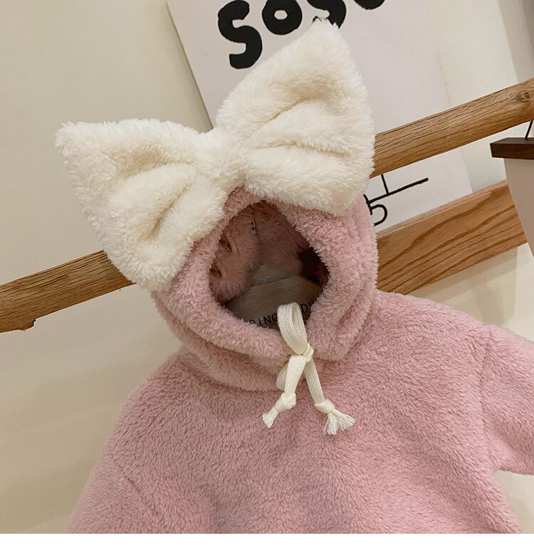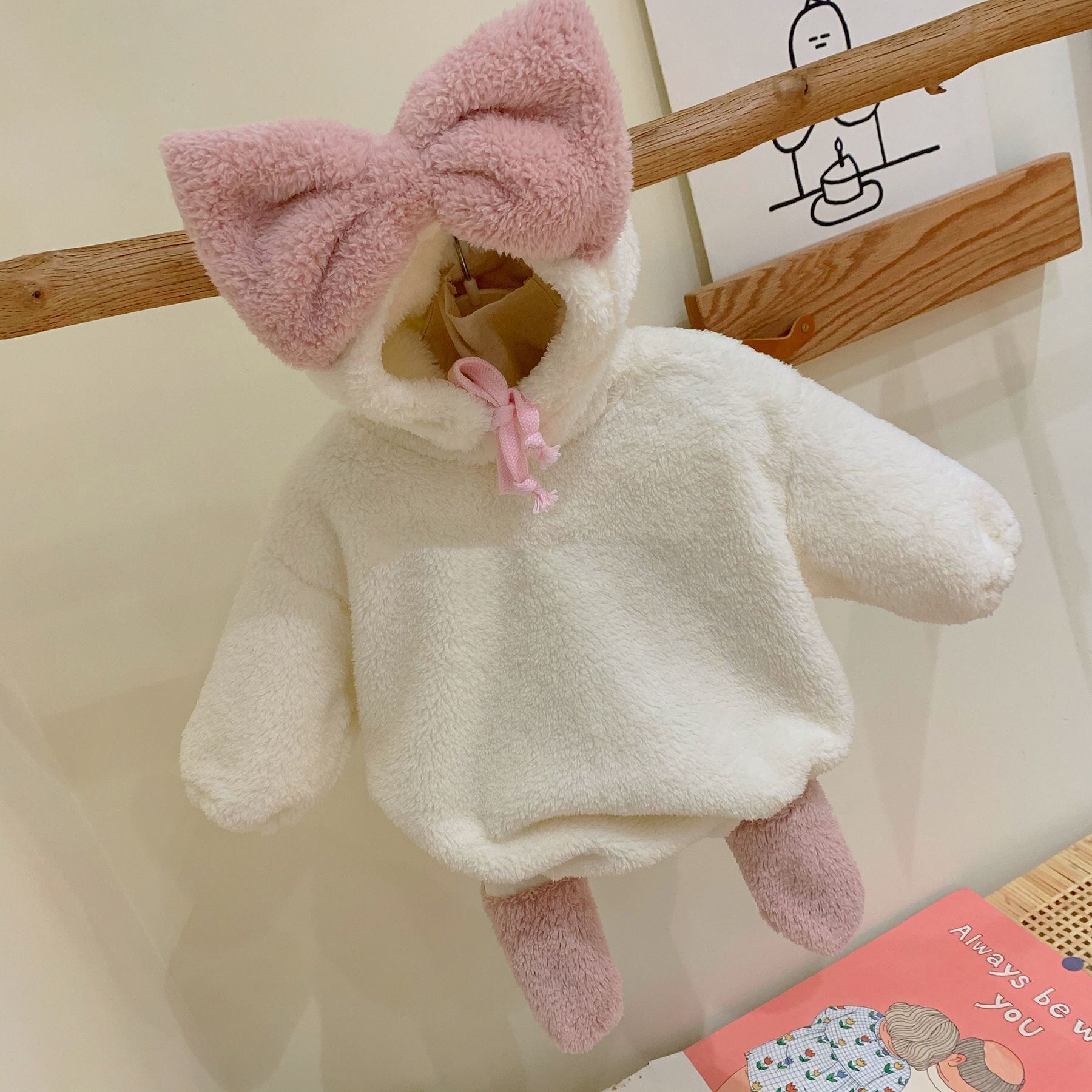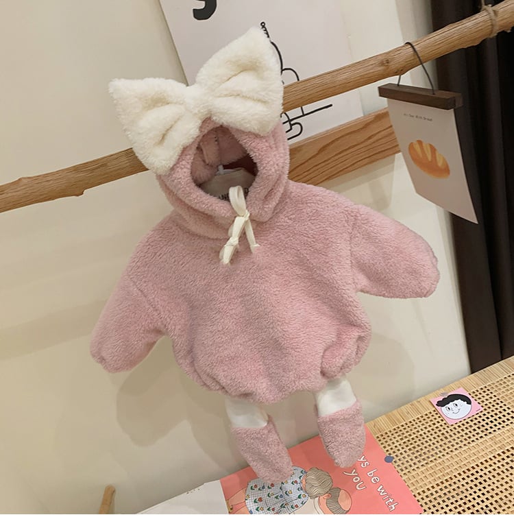 色:白い毛皮のような大きな弓のロンパース,ピンクのぬいぐるみビッグボウロンパース,ピンクのウールパンツ,白い毛皮のズボン
