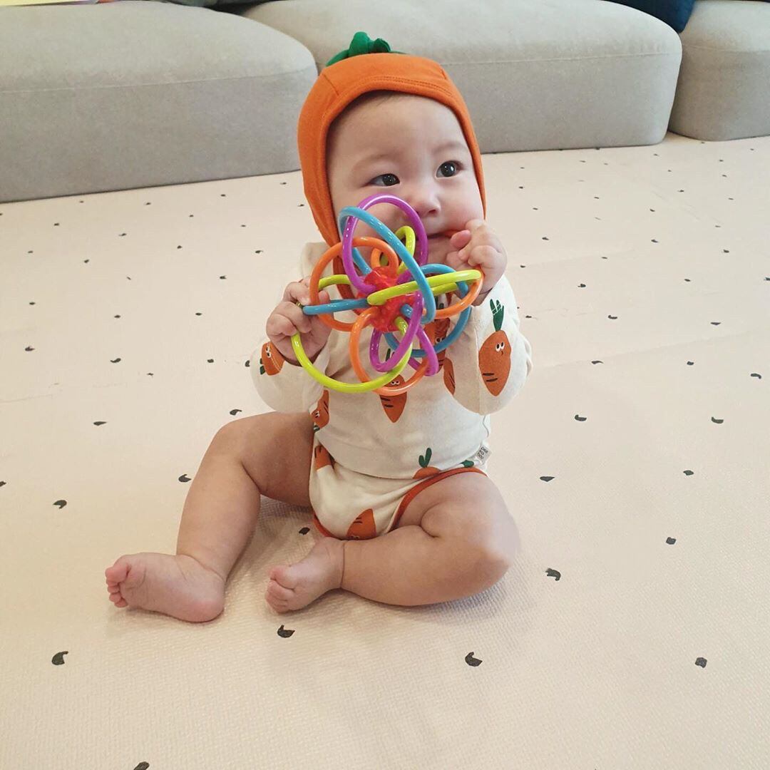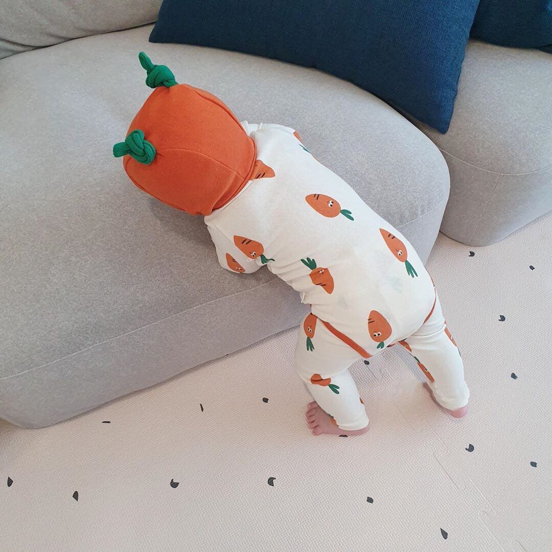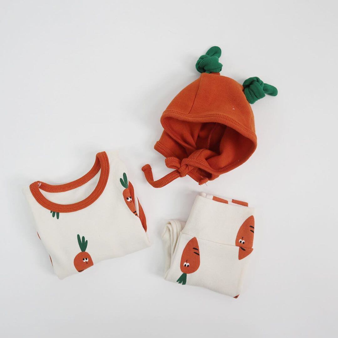 色:キャロットロンパース+パンツ+ハットスリーピースセット