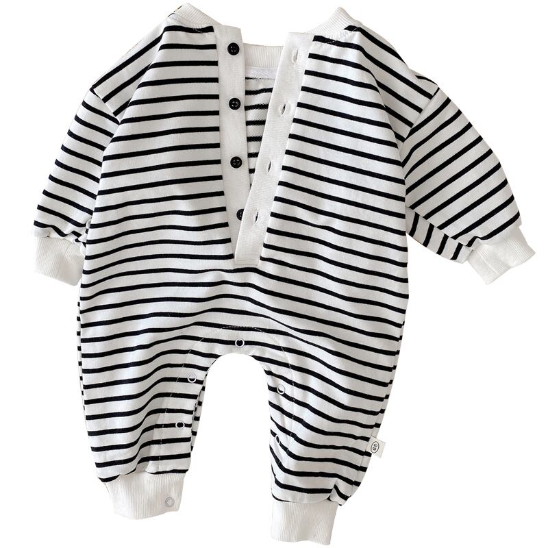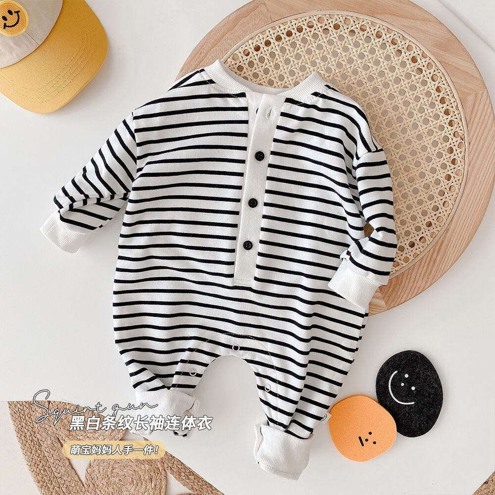 オータムブラックホワイトストライプロンパース オールインワン カジュアルジャンプスーツ オールインワン ロング 秋物 9/24 秋冬 mi0988491155779