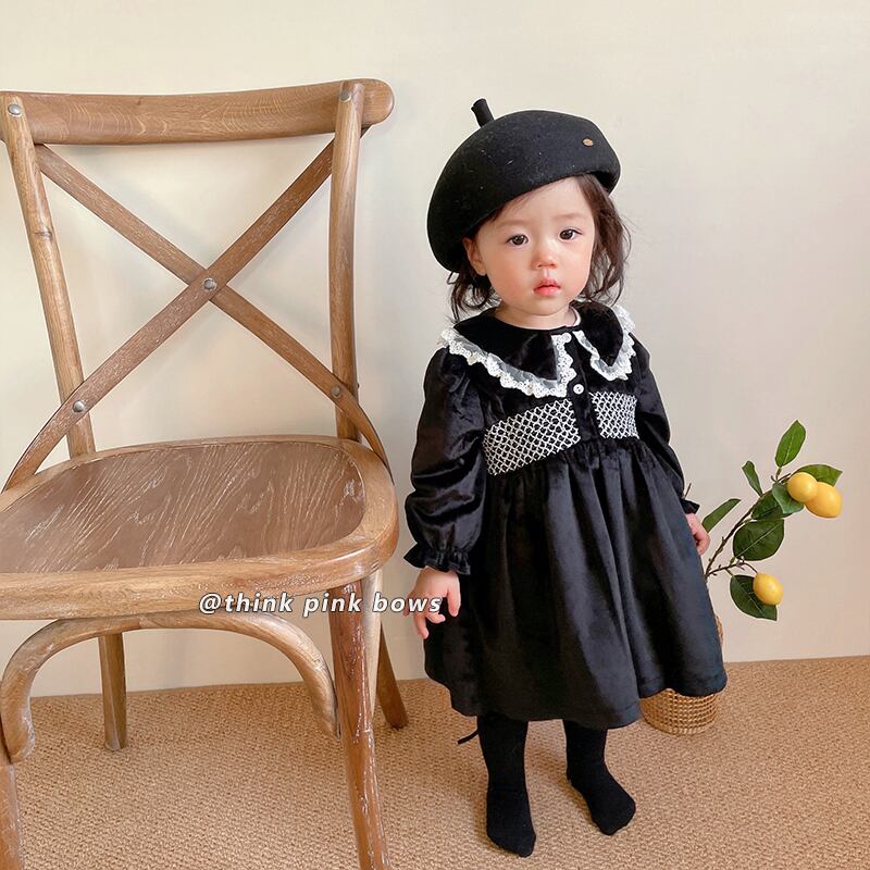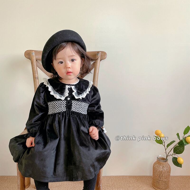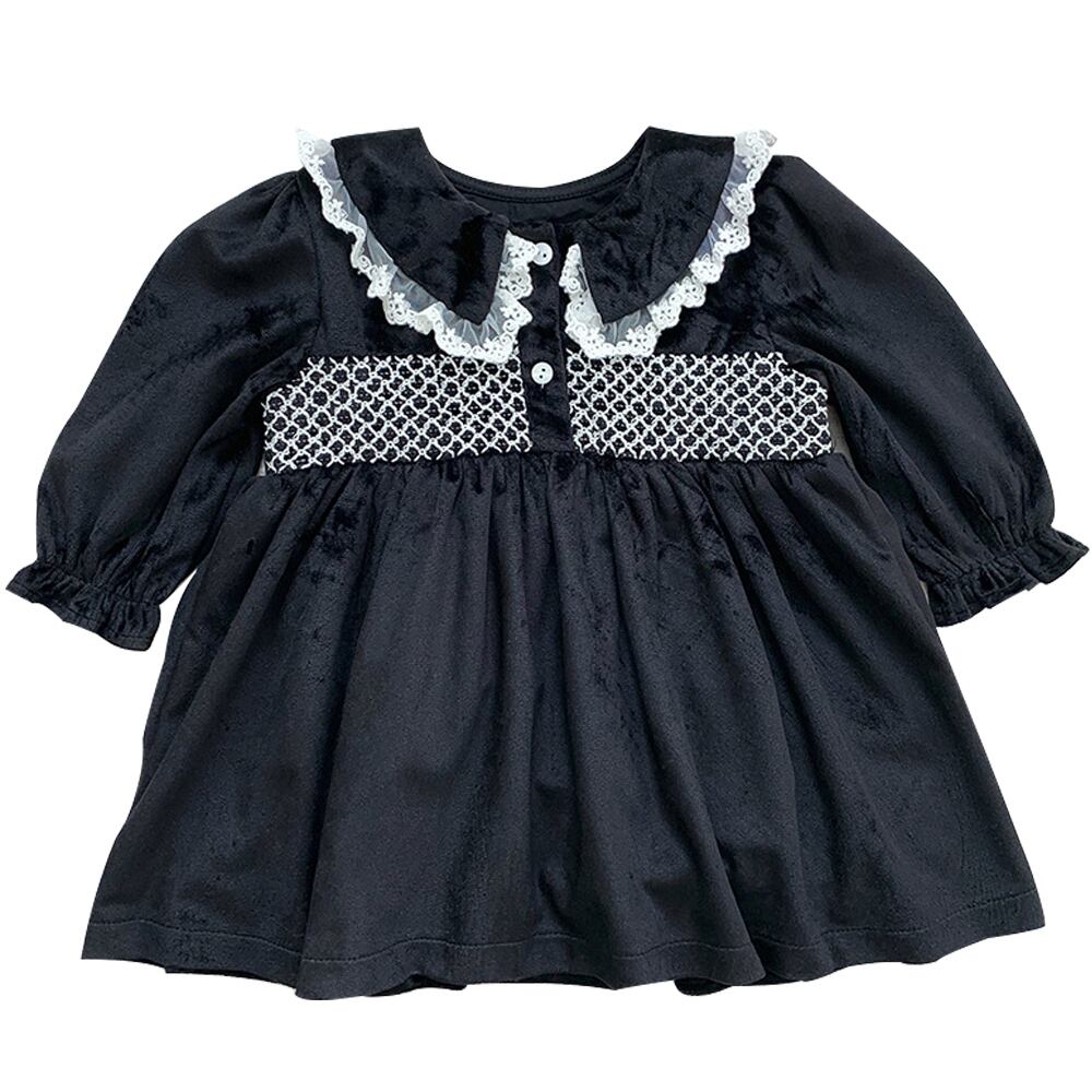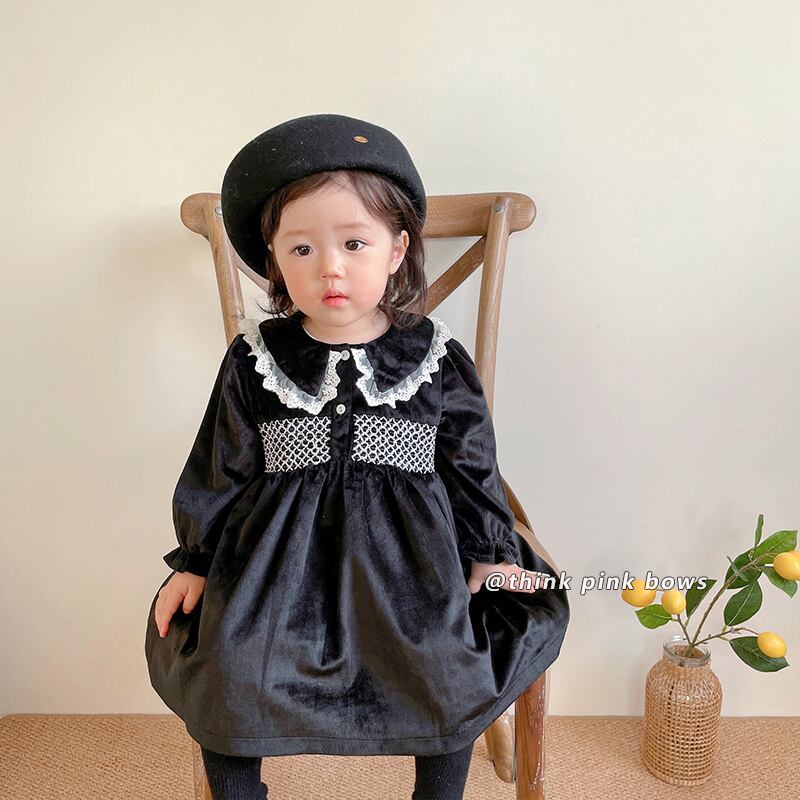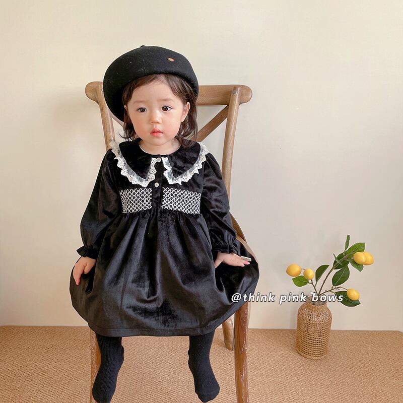 オータムウィンタースタンダードブラックベルベットドレス レース レトロ 大人ガーリー スウィート キュート カジュアル 秋物 冬物 9/24 秋冬 mi0951786702317 | Sagittarius By Constellation -KIDS&BABY-
