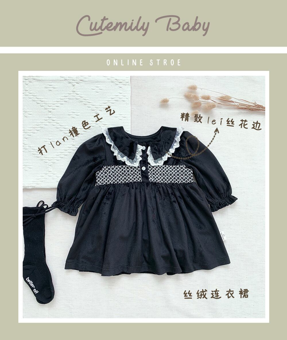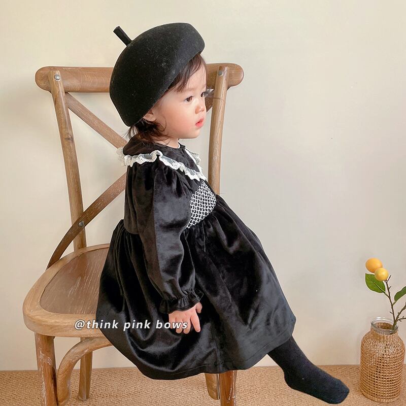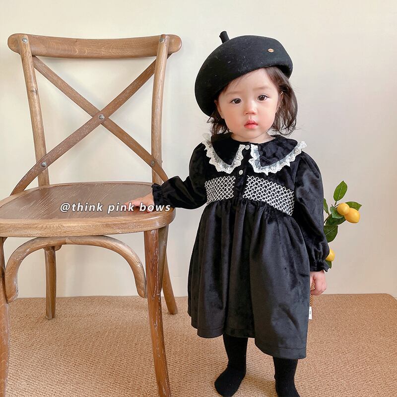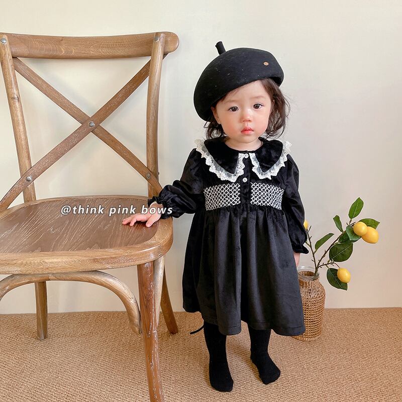 オータムウィンタースタンダードブラックベルベットドレス レース レトロ 大人ガーリー スウィート キュート カジュアル 秋物 冬物 9/24 秋冬 mi0951786702317 | Sagittarius By Constellation -KIDS&BABY-