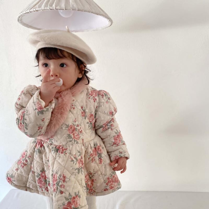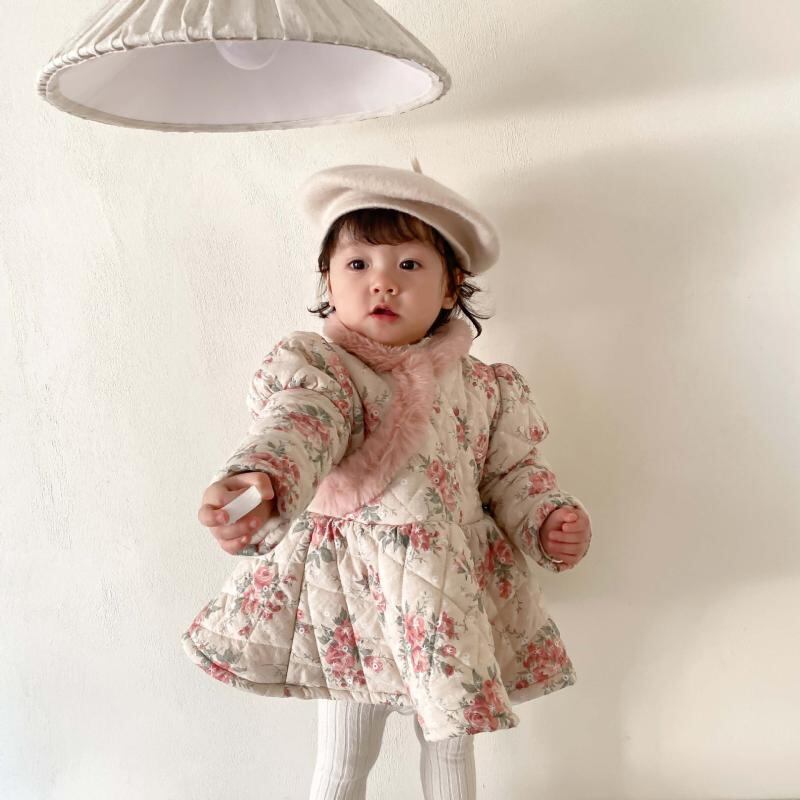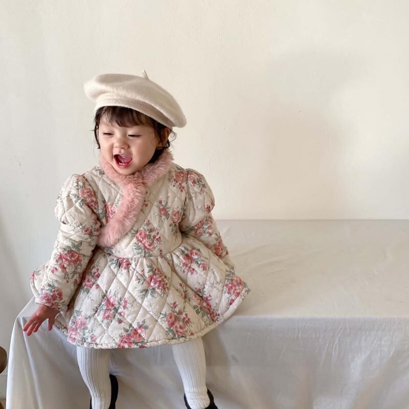 ウィンタースタイルフローラルドレス スタンダードベルベット レトロ 冬物 花柄 9/24 秋冬 mi0929591104417 | Sagittarius By Constellation -KIDS&BABY-
