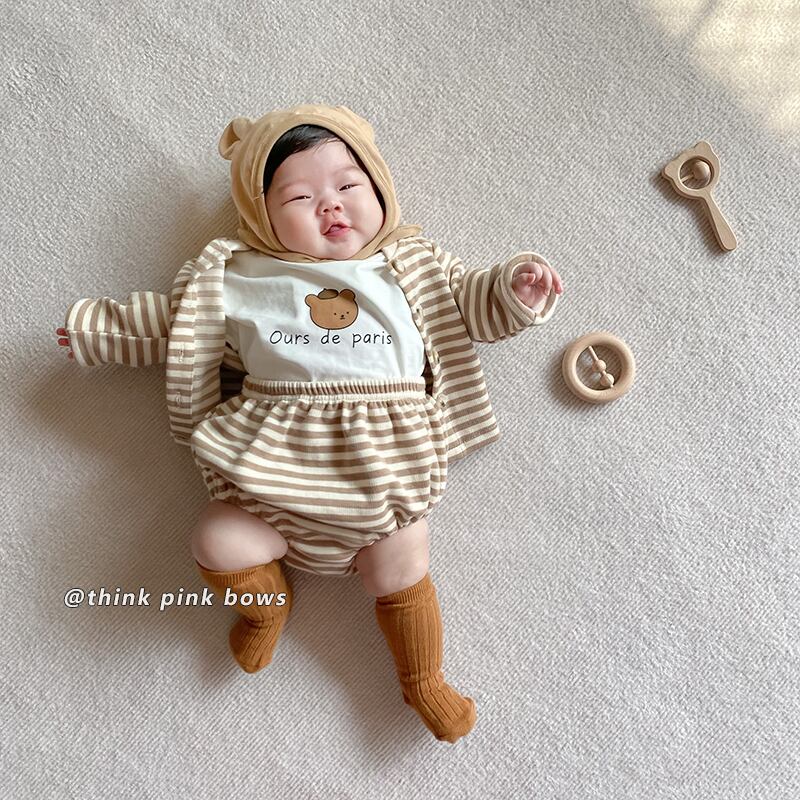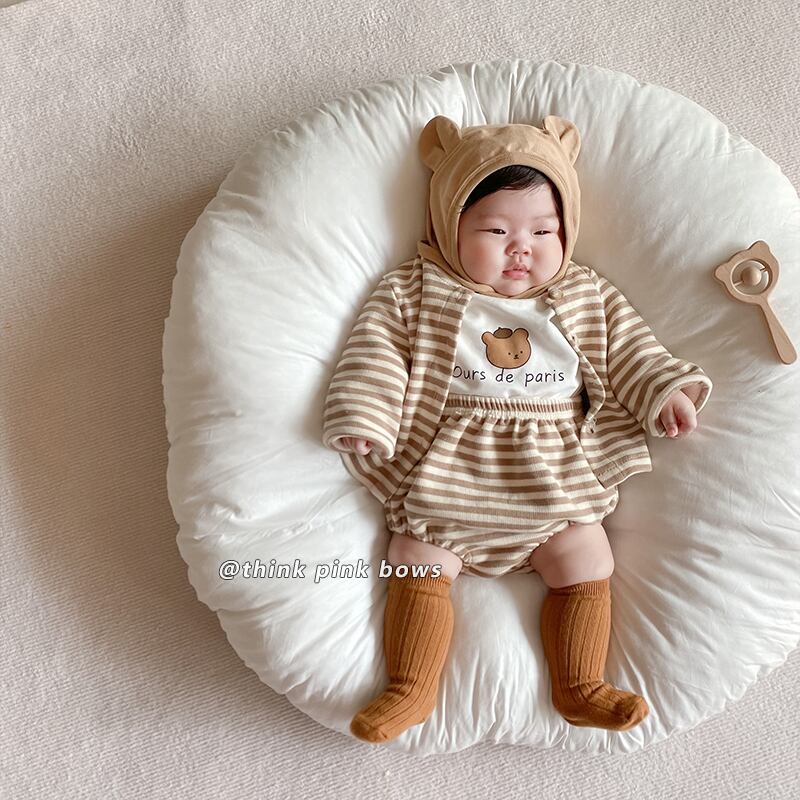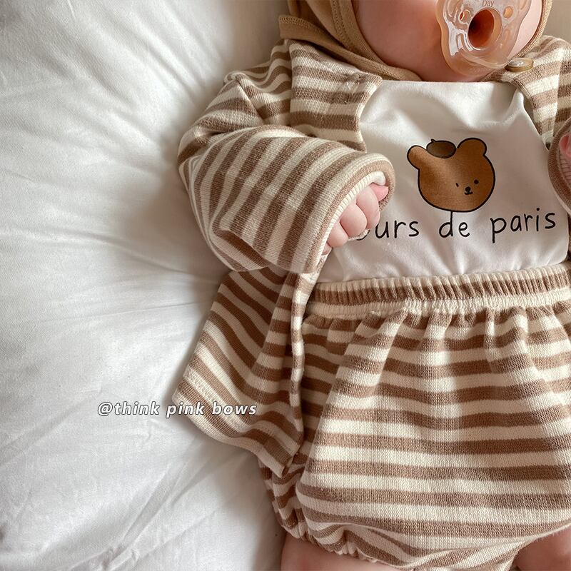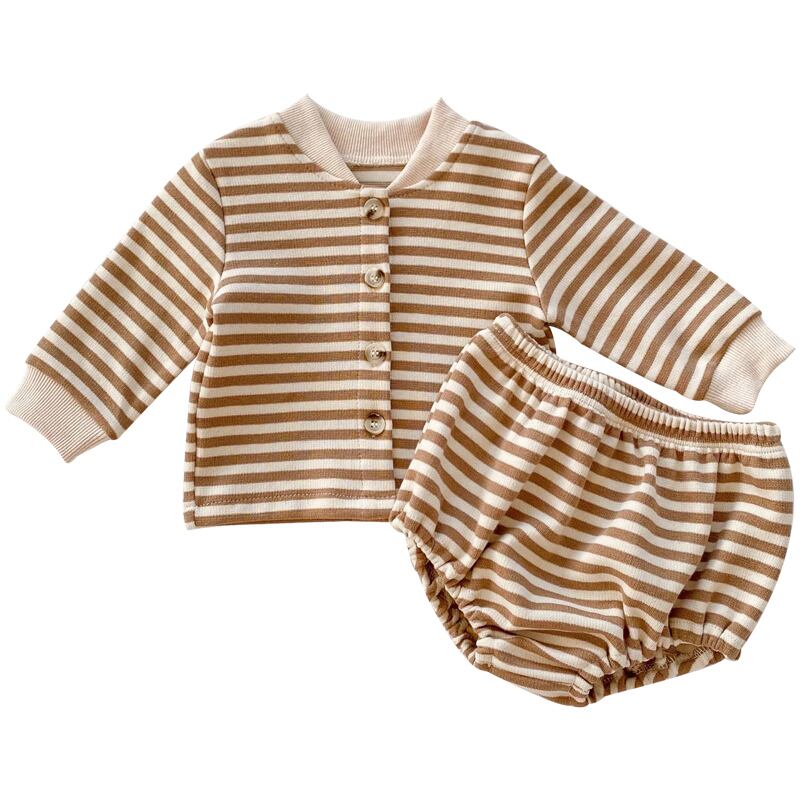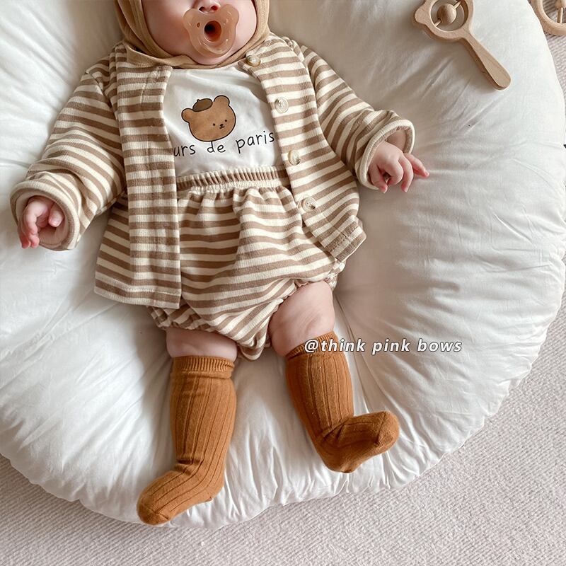 スプリングオータムストライプカーディガンショーツ セット ロング 春物 秋物 ブルマー 9/24 秋冬 mi0918380636580