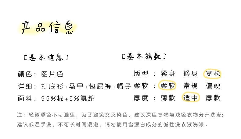 色:ボトム+ベスト+バッグおならパンツ+帽子