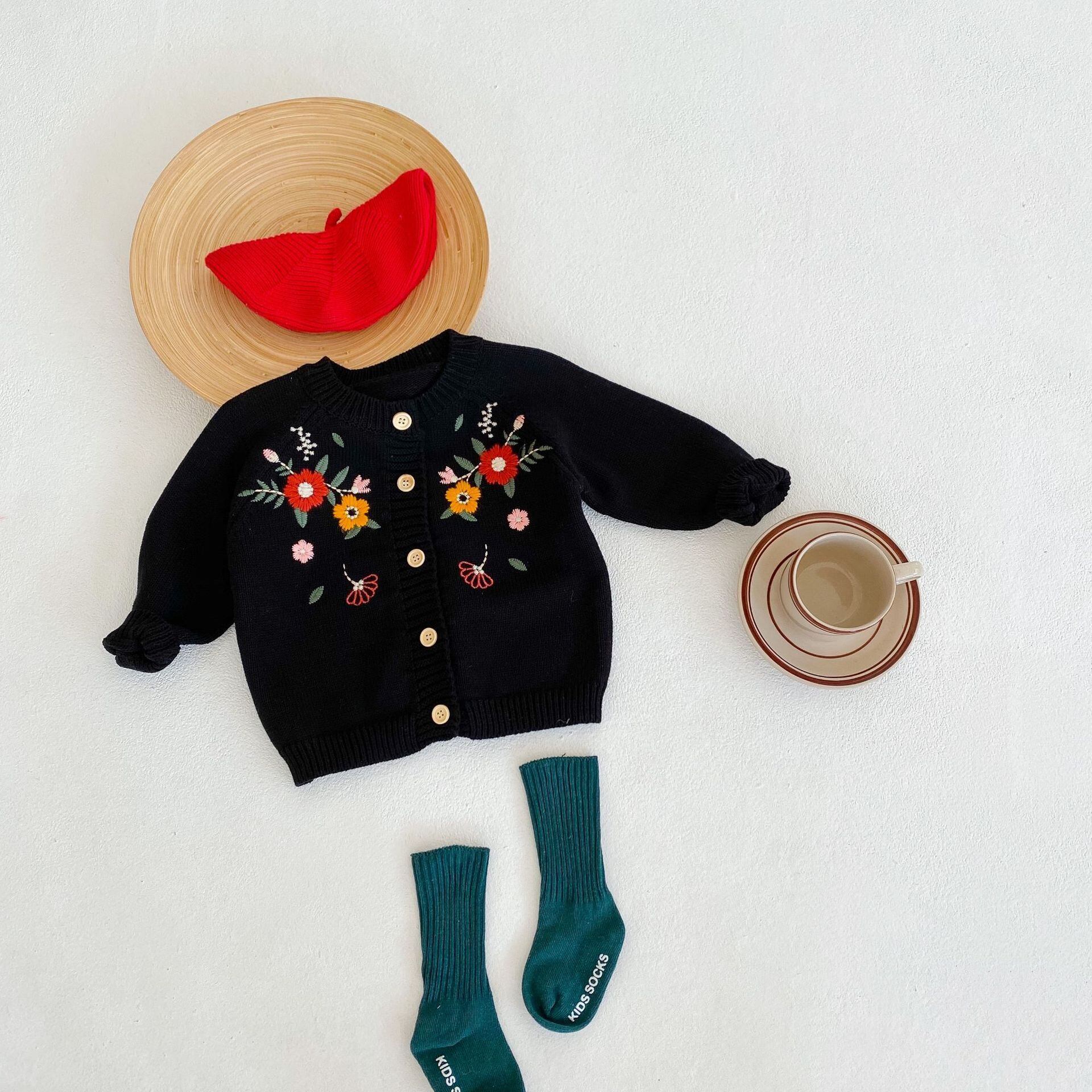 スプリングオータムFlowerデザイン ニットセーター 長袖スリーブ ロング レッド コットン 刺繍 大人ガーリー スウィート キュート カジュアル 春物 秋物 フラワーデザイン 9/24 秋冬 mi0996446849207 | Sagittarius By Constellation -KIDS&BABY-