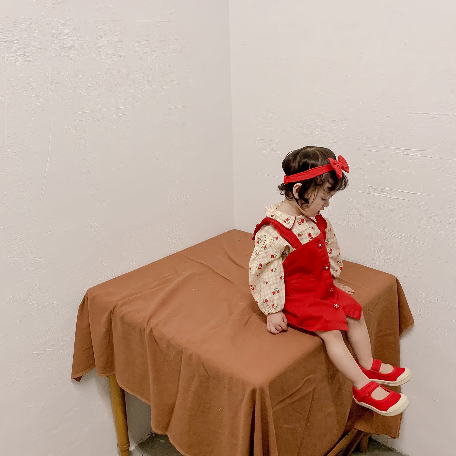 色:ヘアバンドなしのシャツ+サスペンダースカート