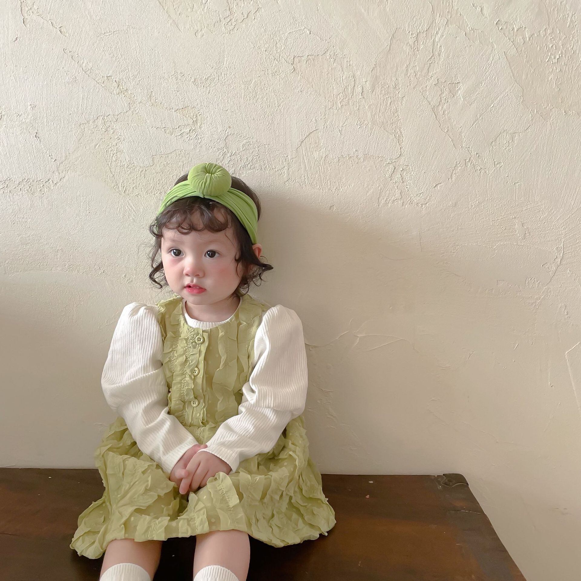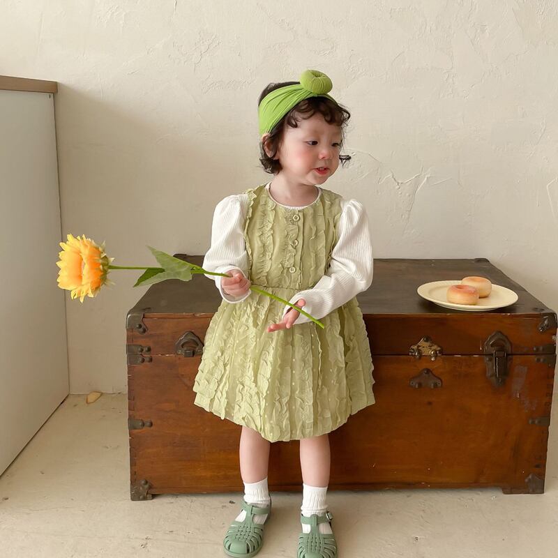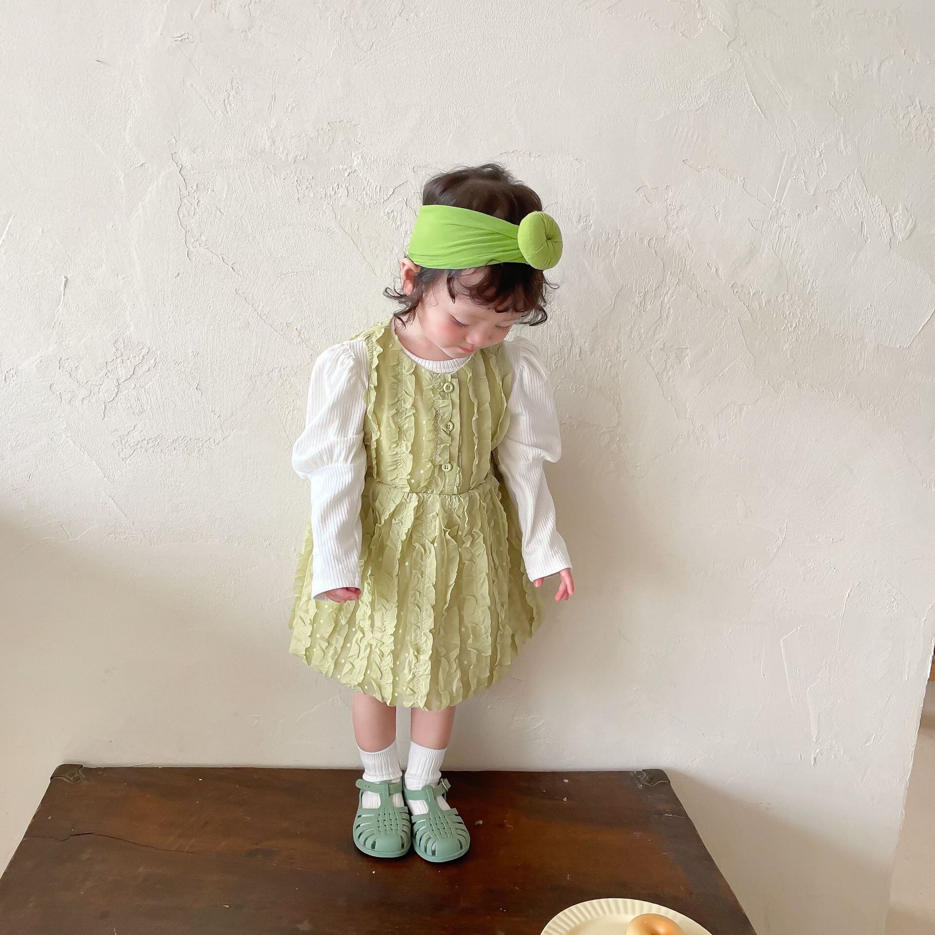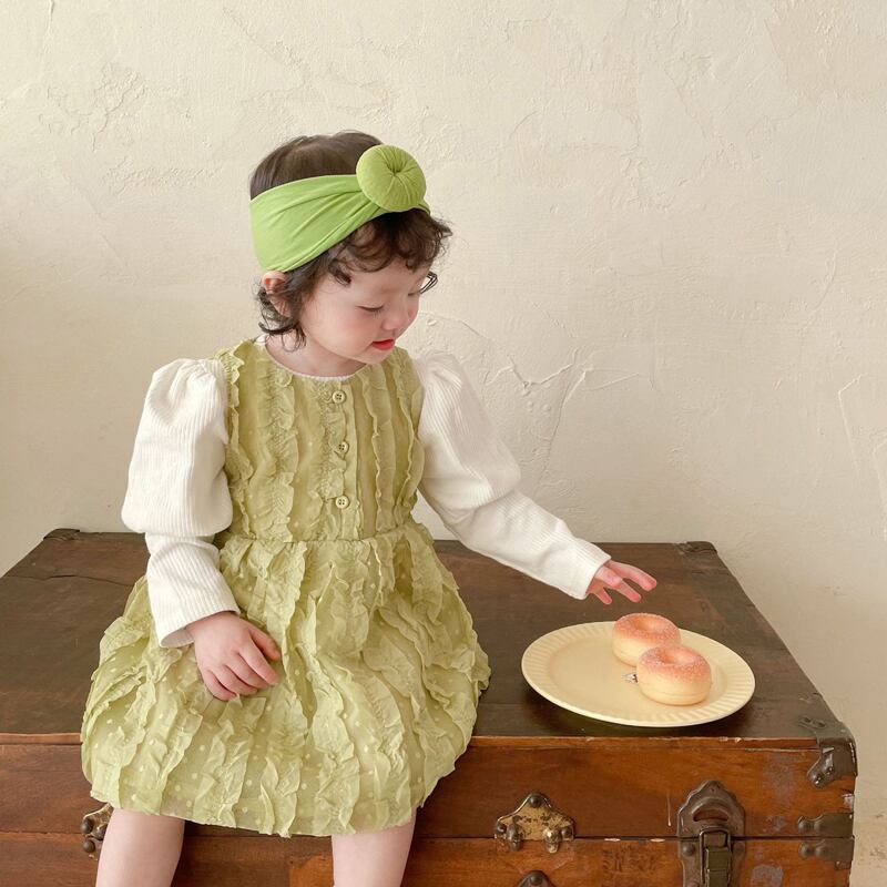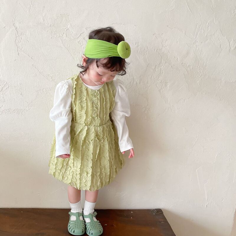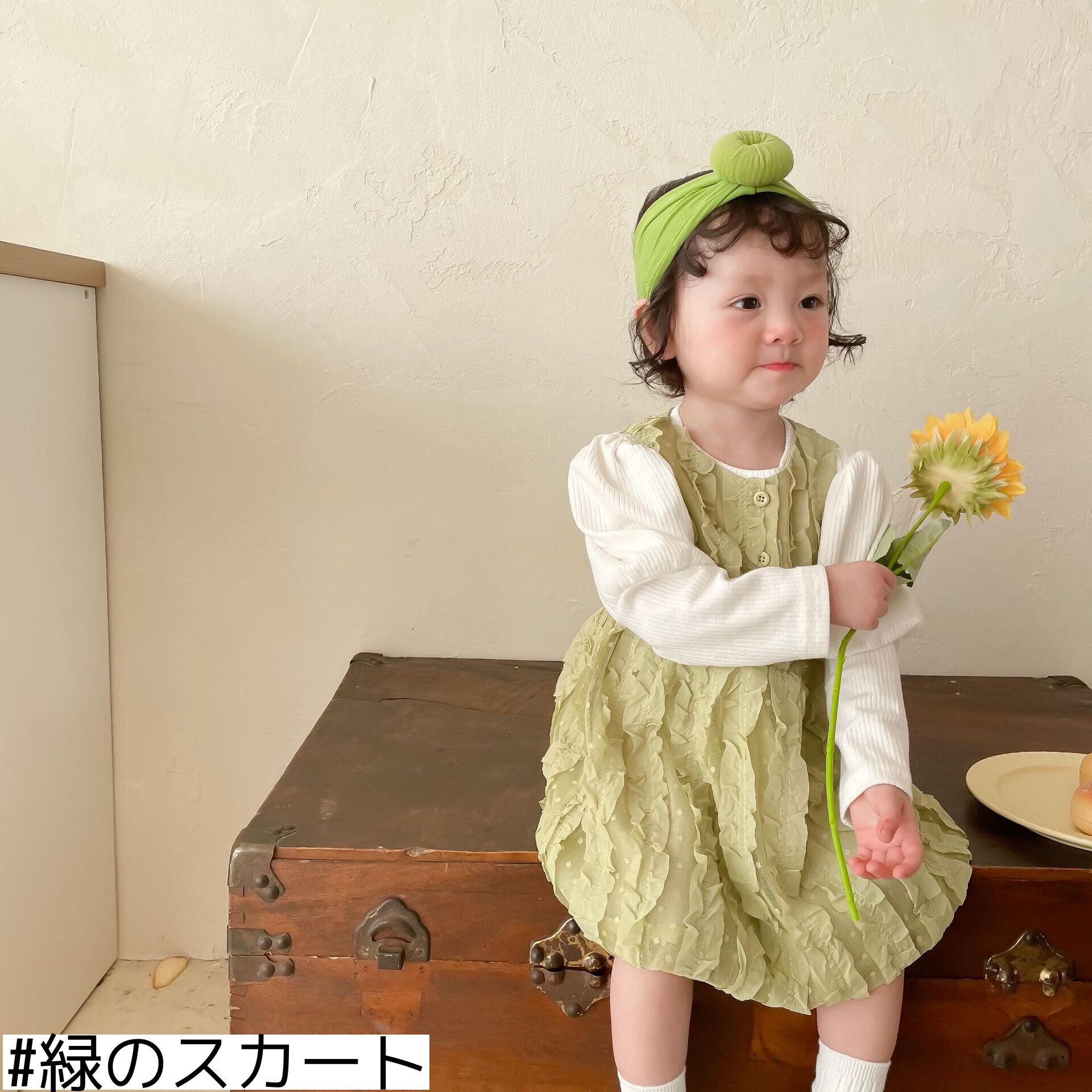 色:同じ段落のヘアバンド,ホワイトボトミングシャツ,緑のスカート