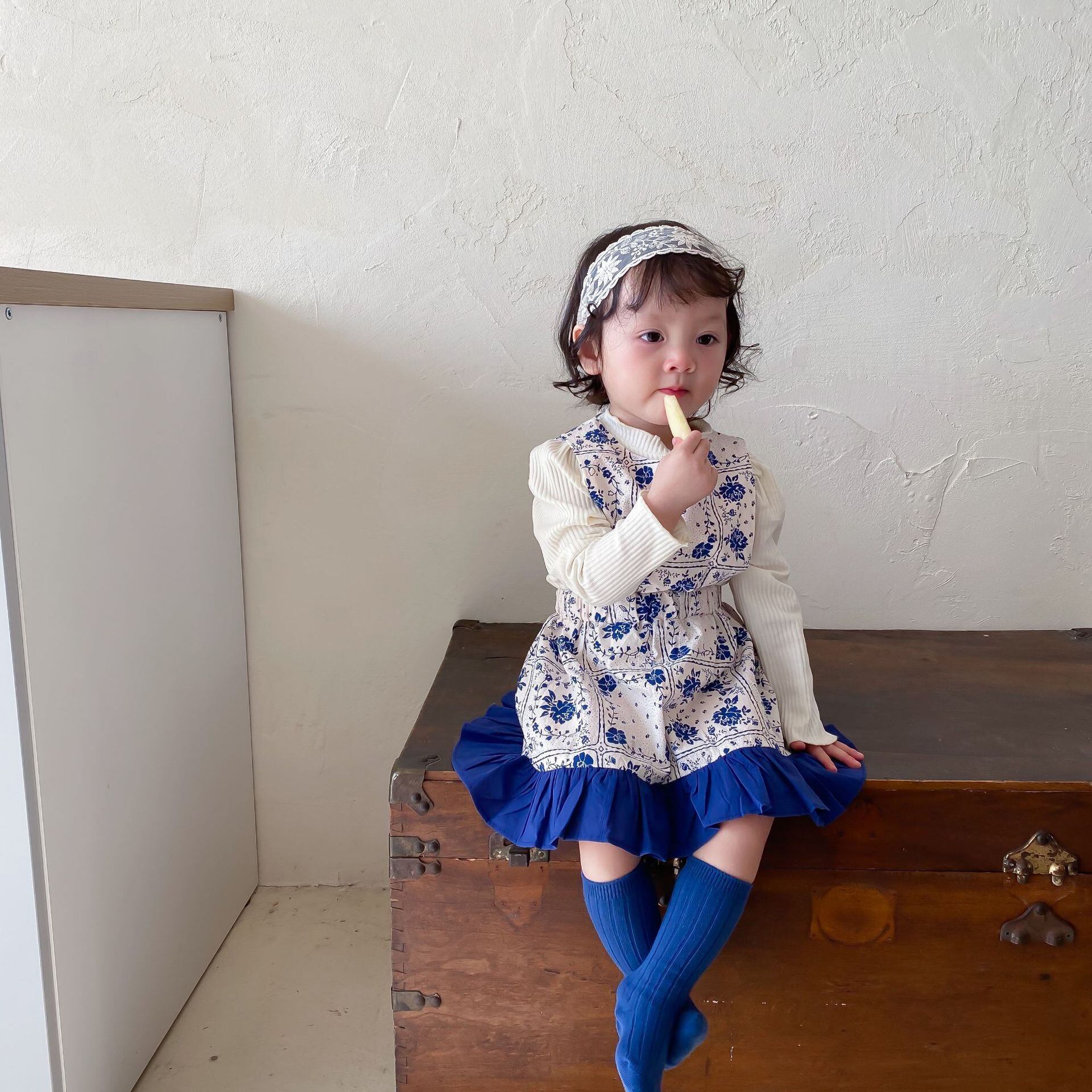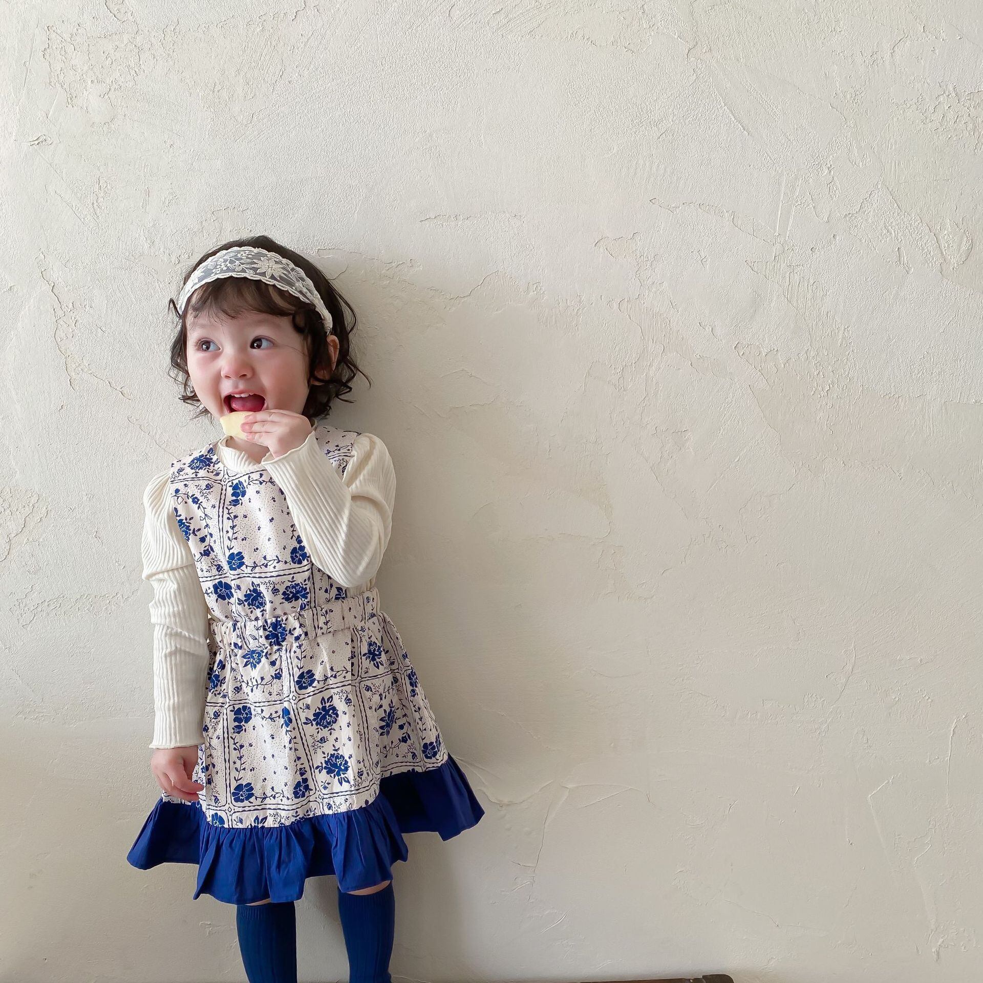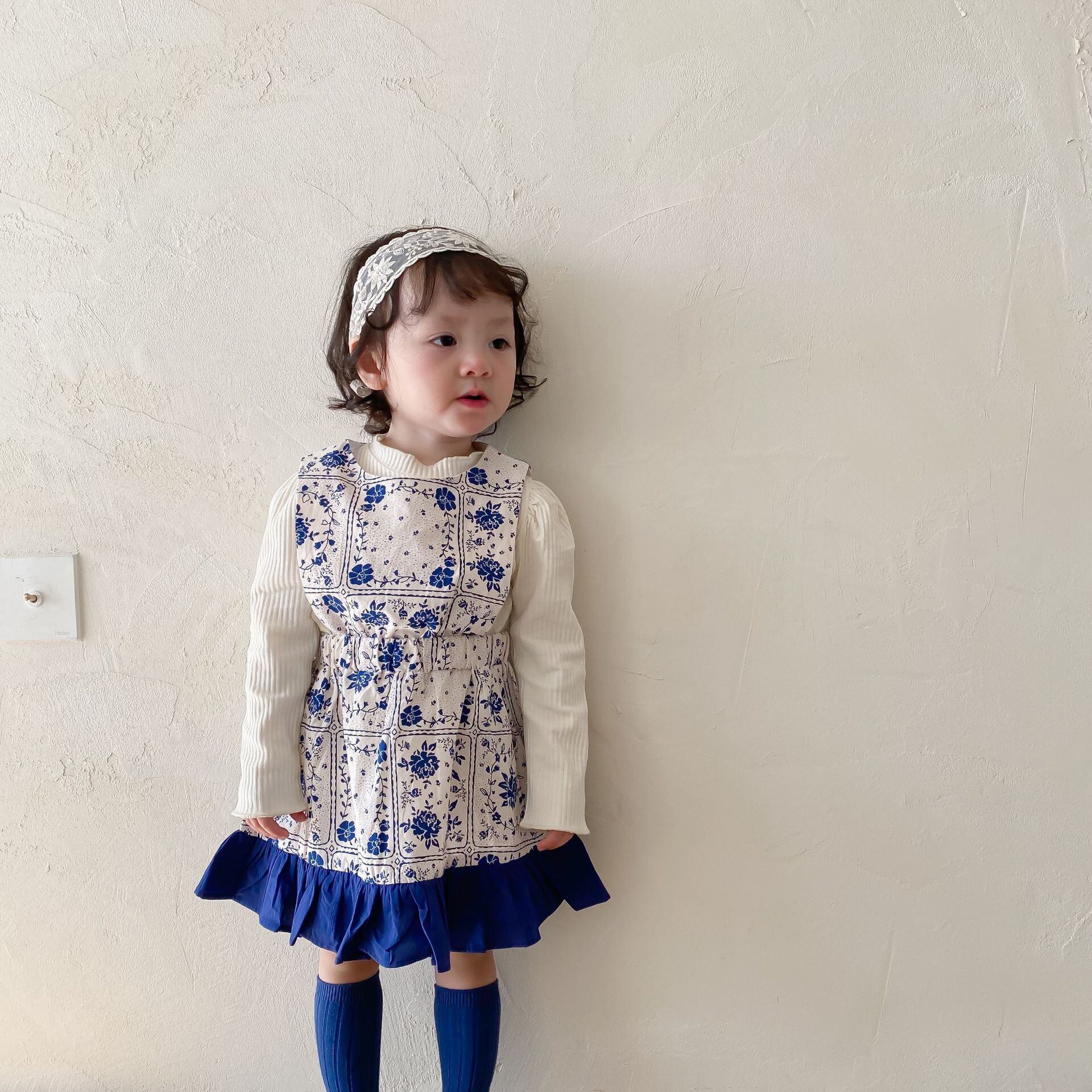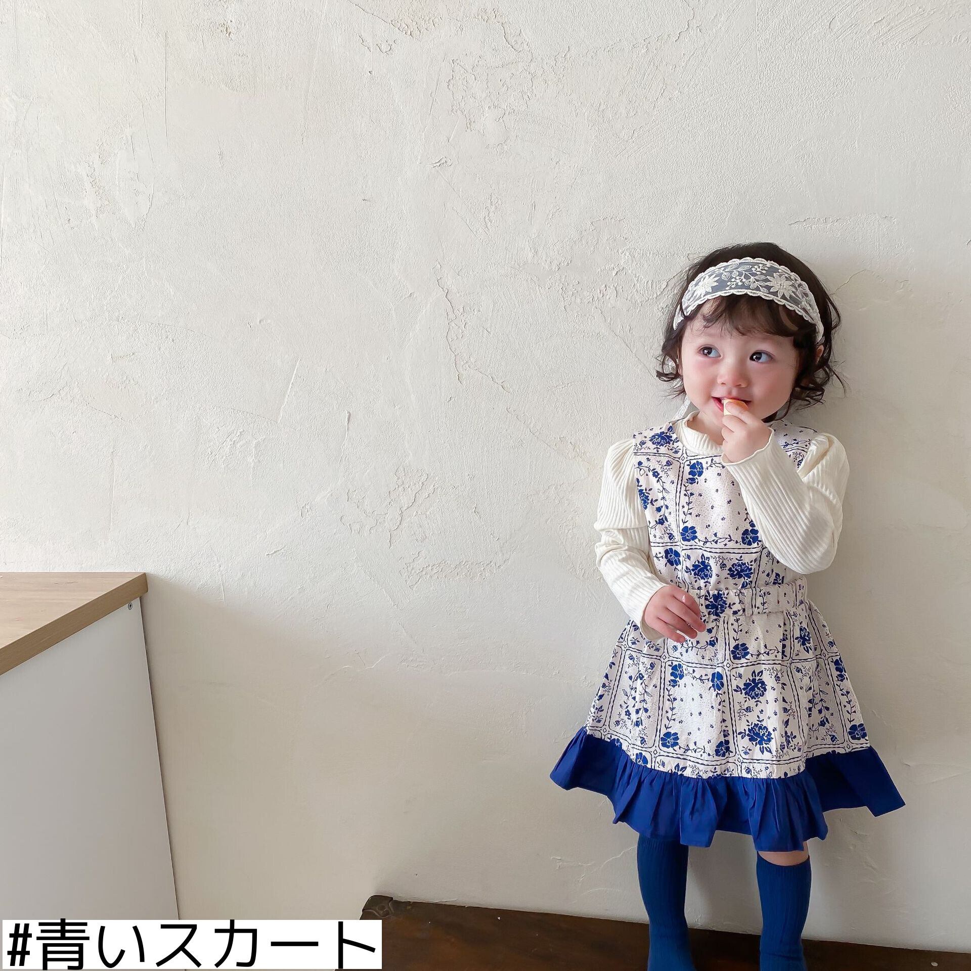 スプリングブルーホワイトドレス スカート 大人ガーリー スウィート キュート カジュアル 春物 9/24 秋冬 mi0987358284481