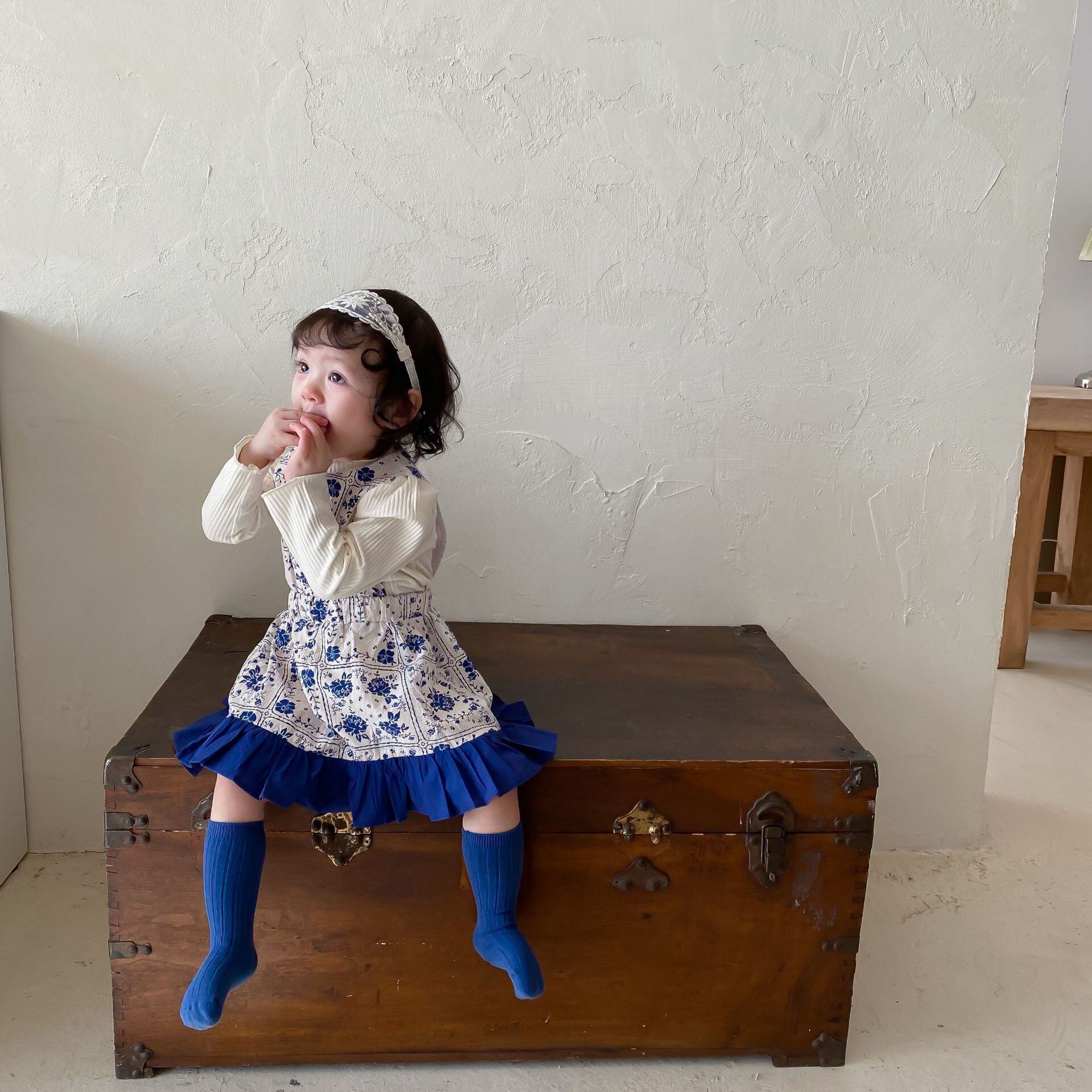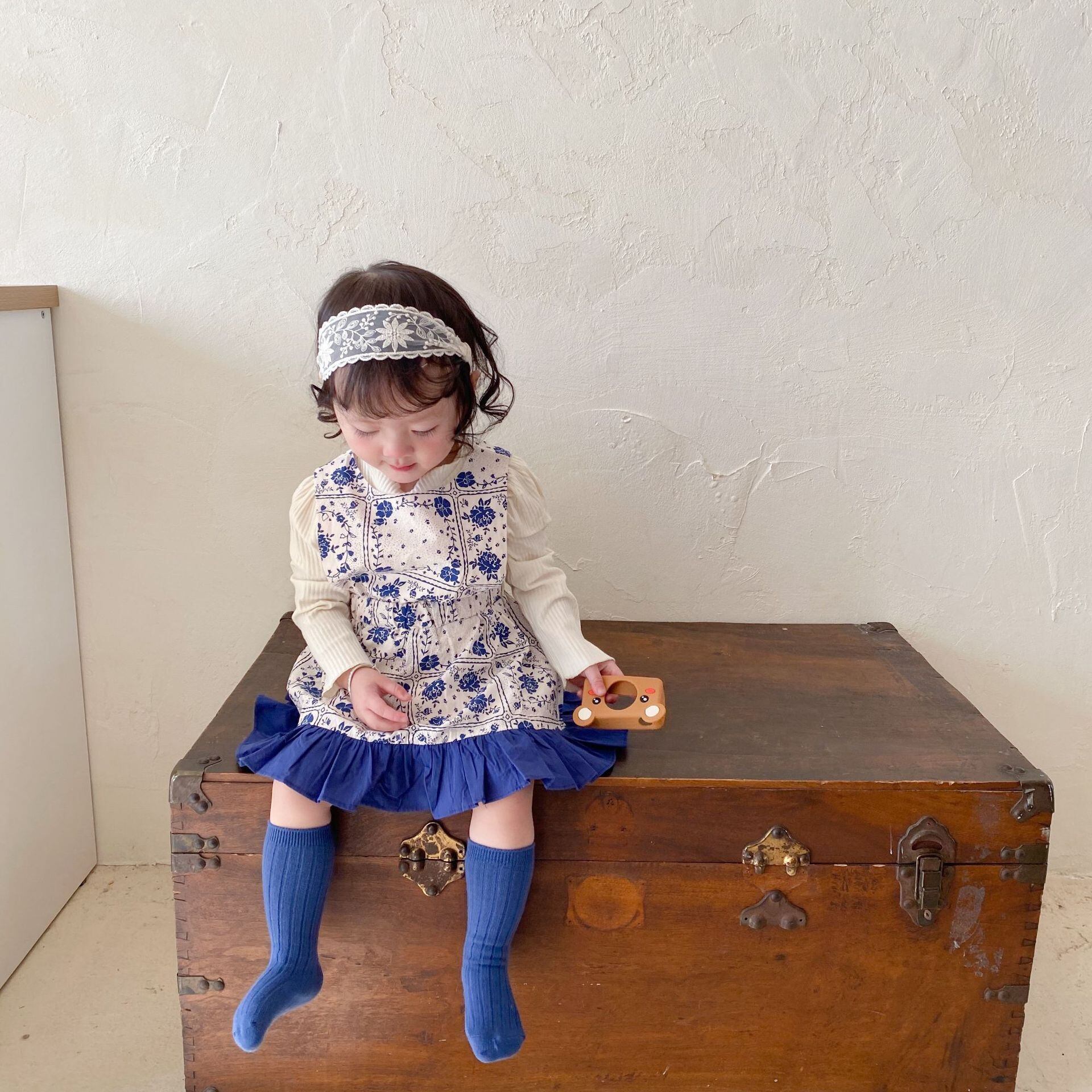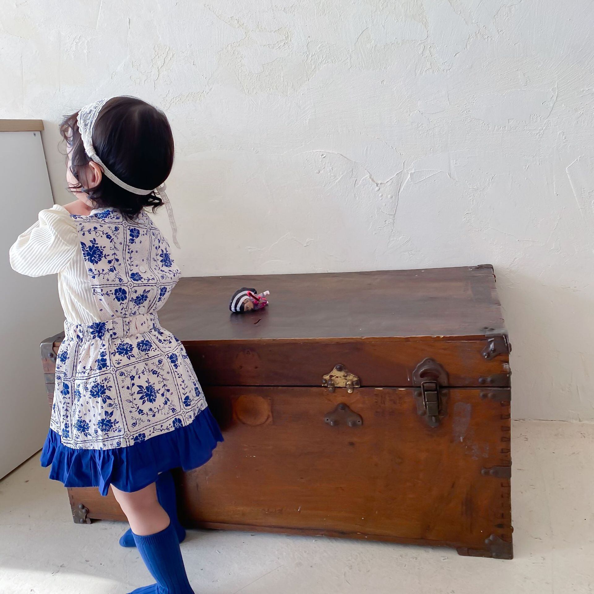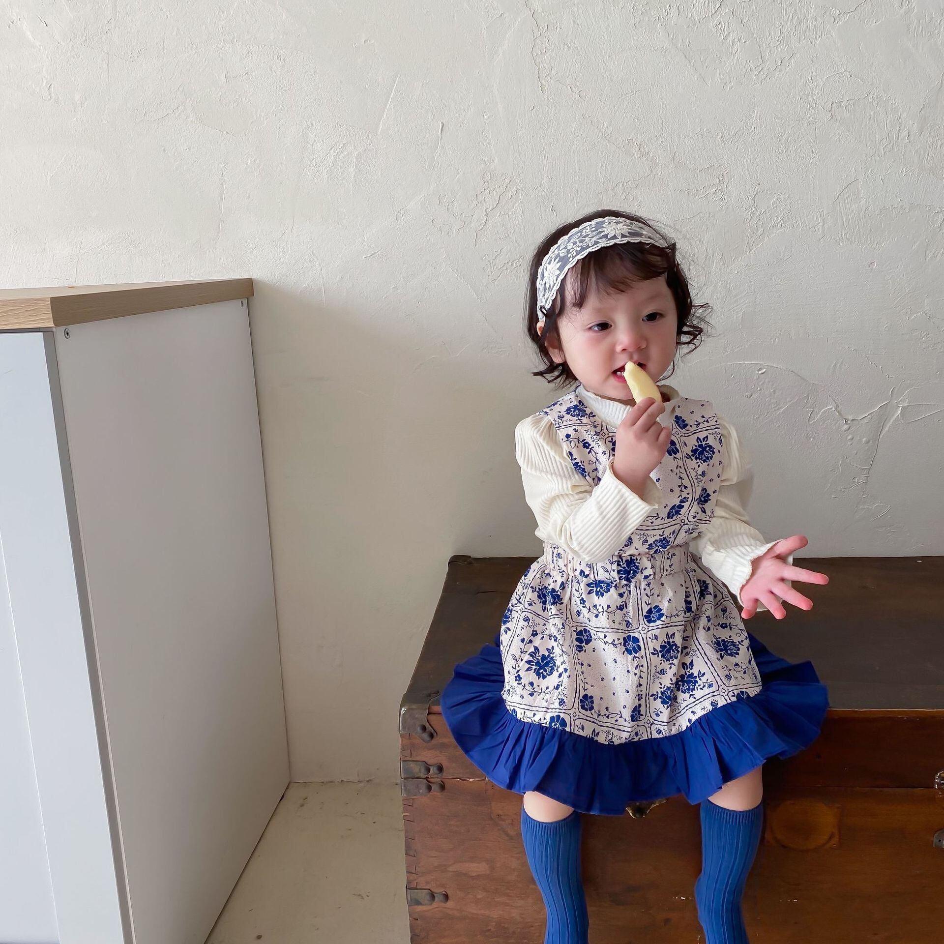 スプリングブルーホワイトドレス スカート 大人ガーリー スウィート キュート カジュアル 春物 9/24 秋冬 mi0987358284481