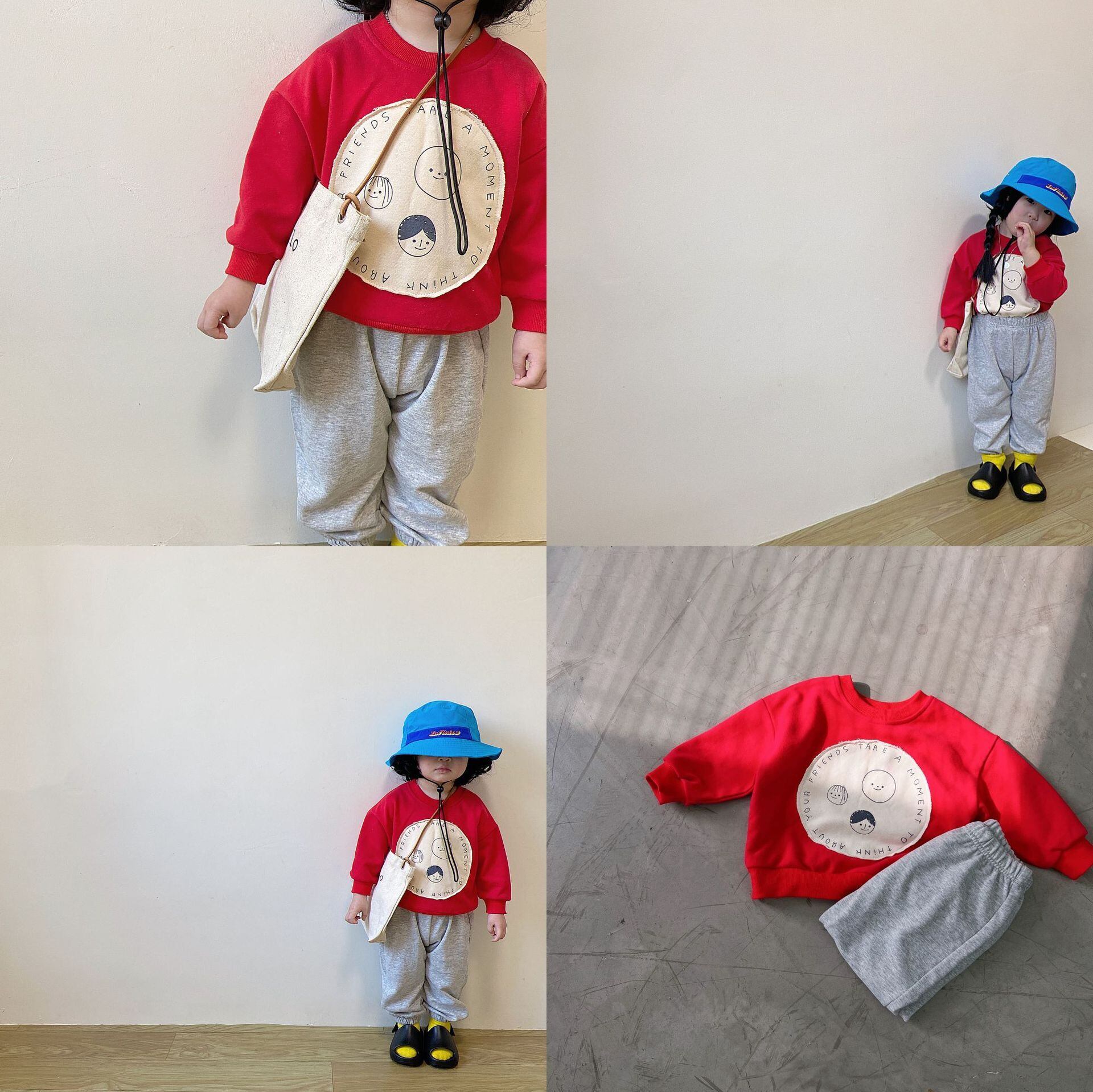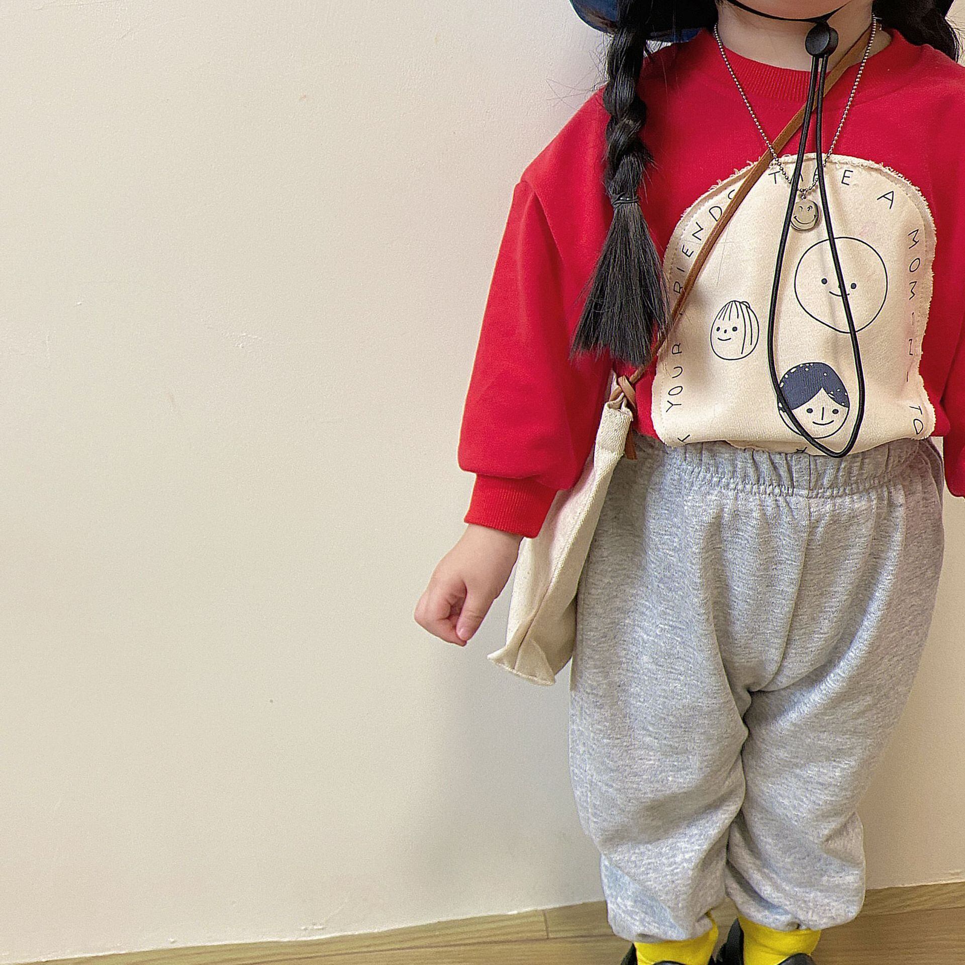 スプリングレッドラウンドネックセーター パンツ カジュアル 春物 Oネック 9/24 秋冬 mi0933675770603