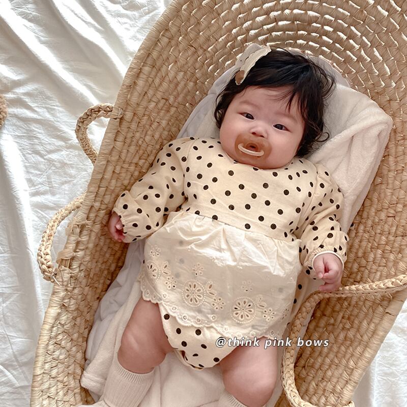 スプリングスタイル水玉トライアングルロンパース オールインワン レース ロング 春物 9/24 秋冬 mi0983336513859 | Sagittarius By Constellation -KIDS&BABY-