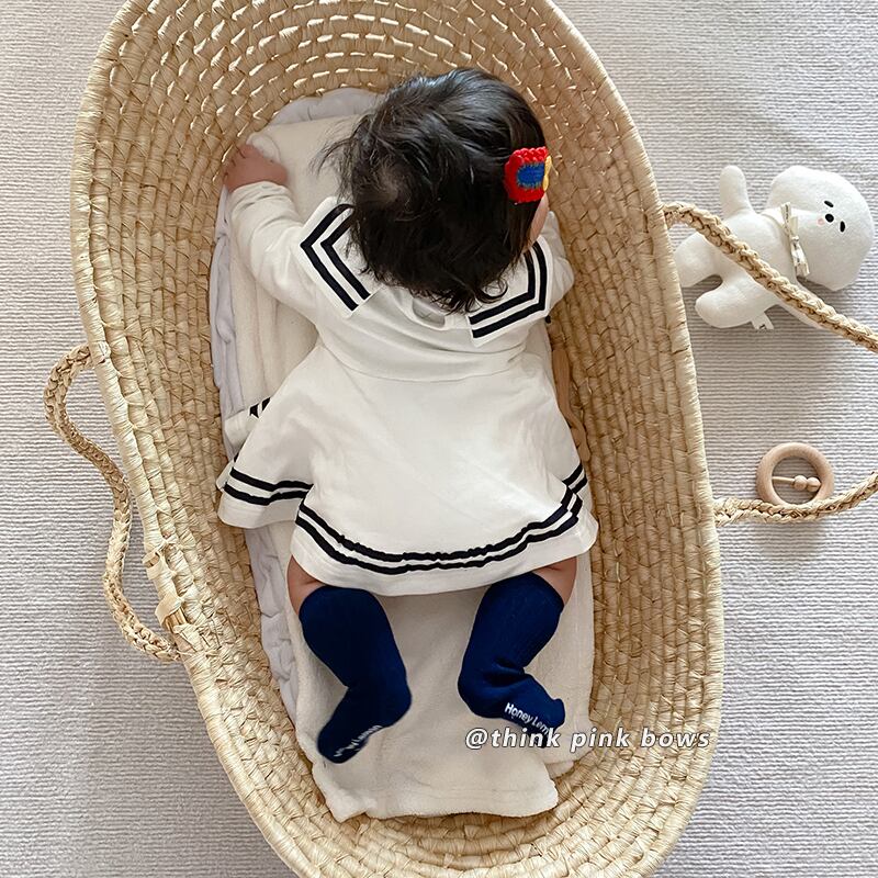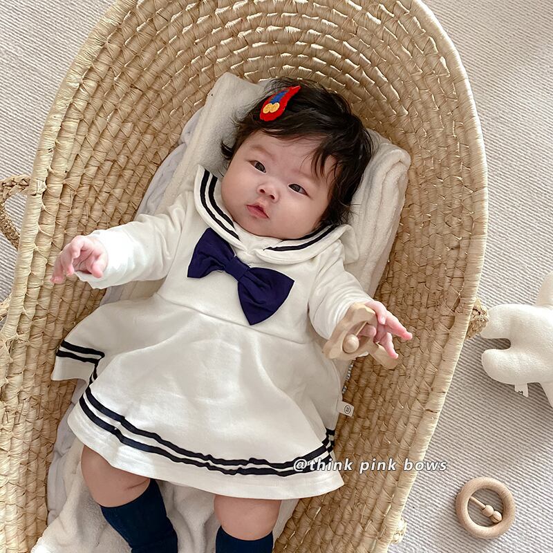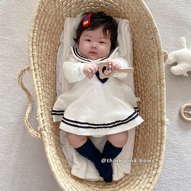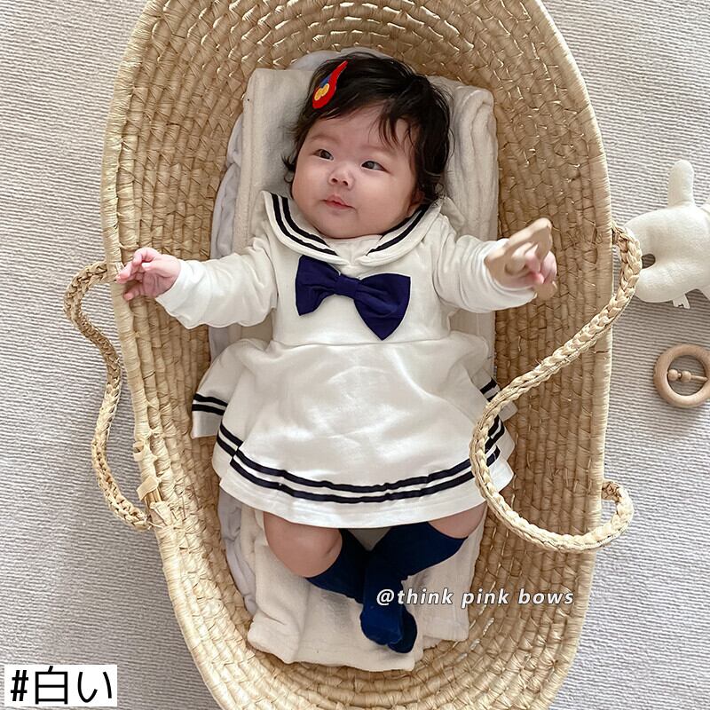 スプリングスタイルリボンネイビースカート トライアングルロンパース オールインワン ロング 春物 9/24 秋冬 mi0964518197166 | Sagittarius By Constellation -KIDS&BABY-