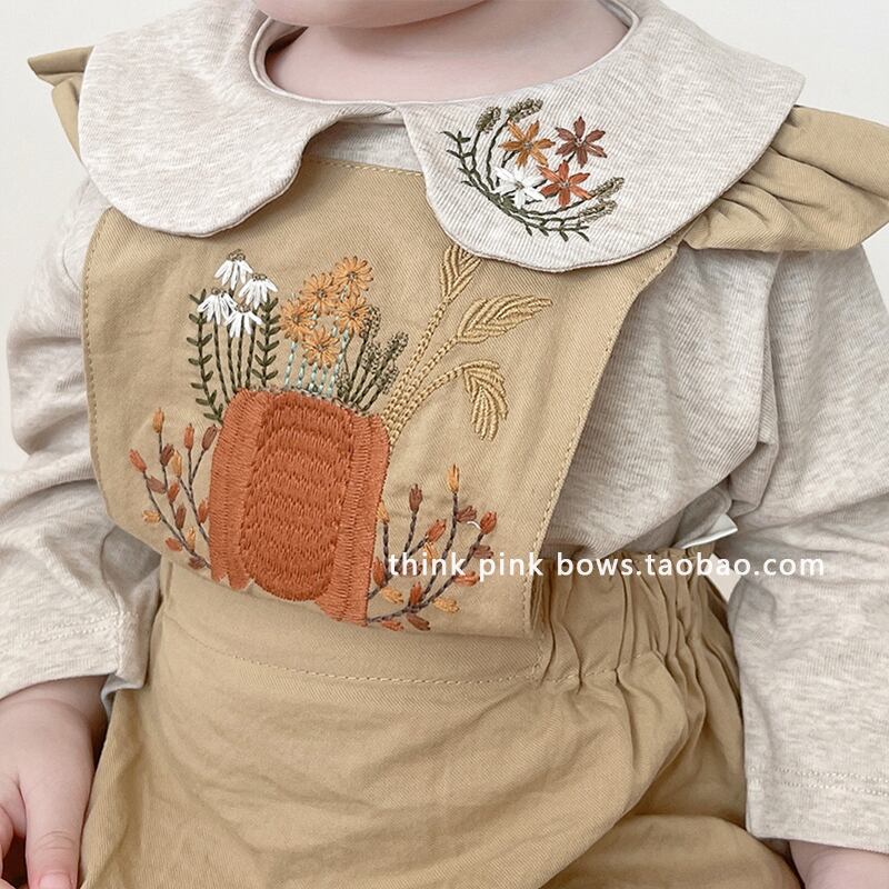 オータムドレス オーバーオール カラーシャツ セット ロング レッド 刺繍 大人ガーリー スウィート キュート カジュアル 秋物 9/24 秋冬 mi0990542113139 | Sagittarius By Constellation -KIDS&BABY-