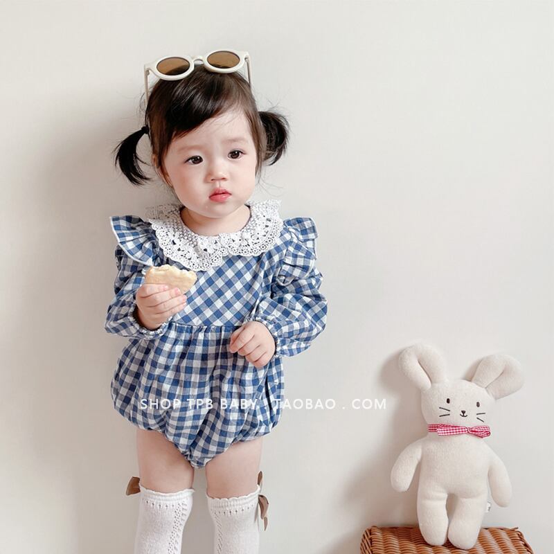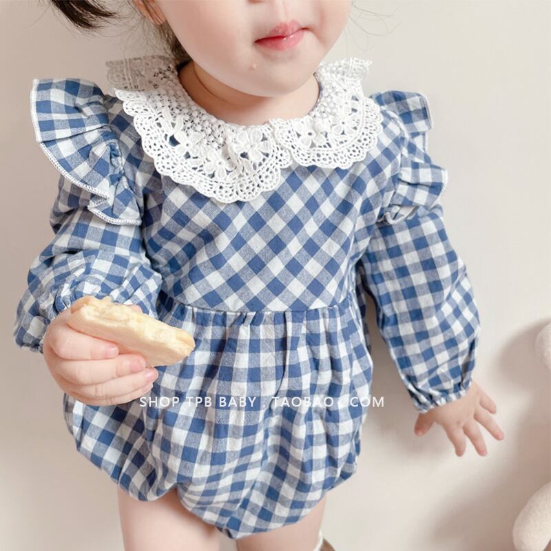 オータム格子柄レースカラートライアングルロンパース オールインワン スタイル 大人ガーリー スウィート キュート カジュアル 秋物 9/24 秋冬 mi0968895084621 | Sagittarius By Constellation -KIDS&BABY-