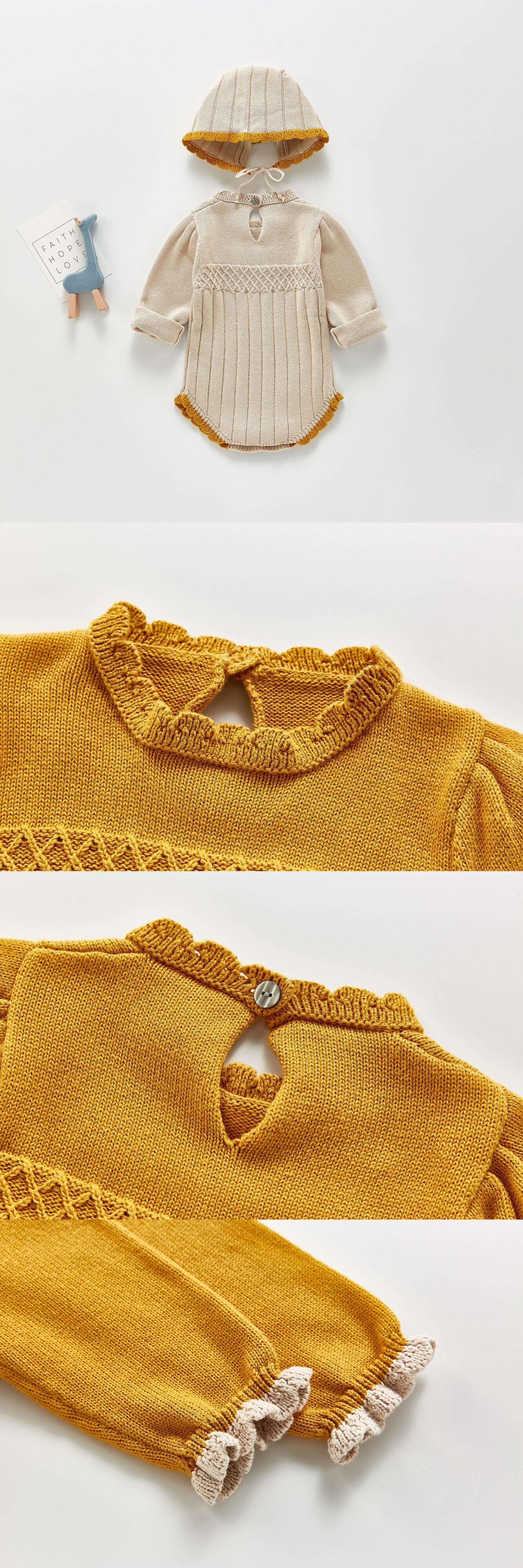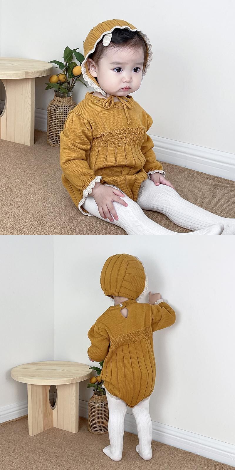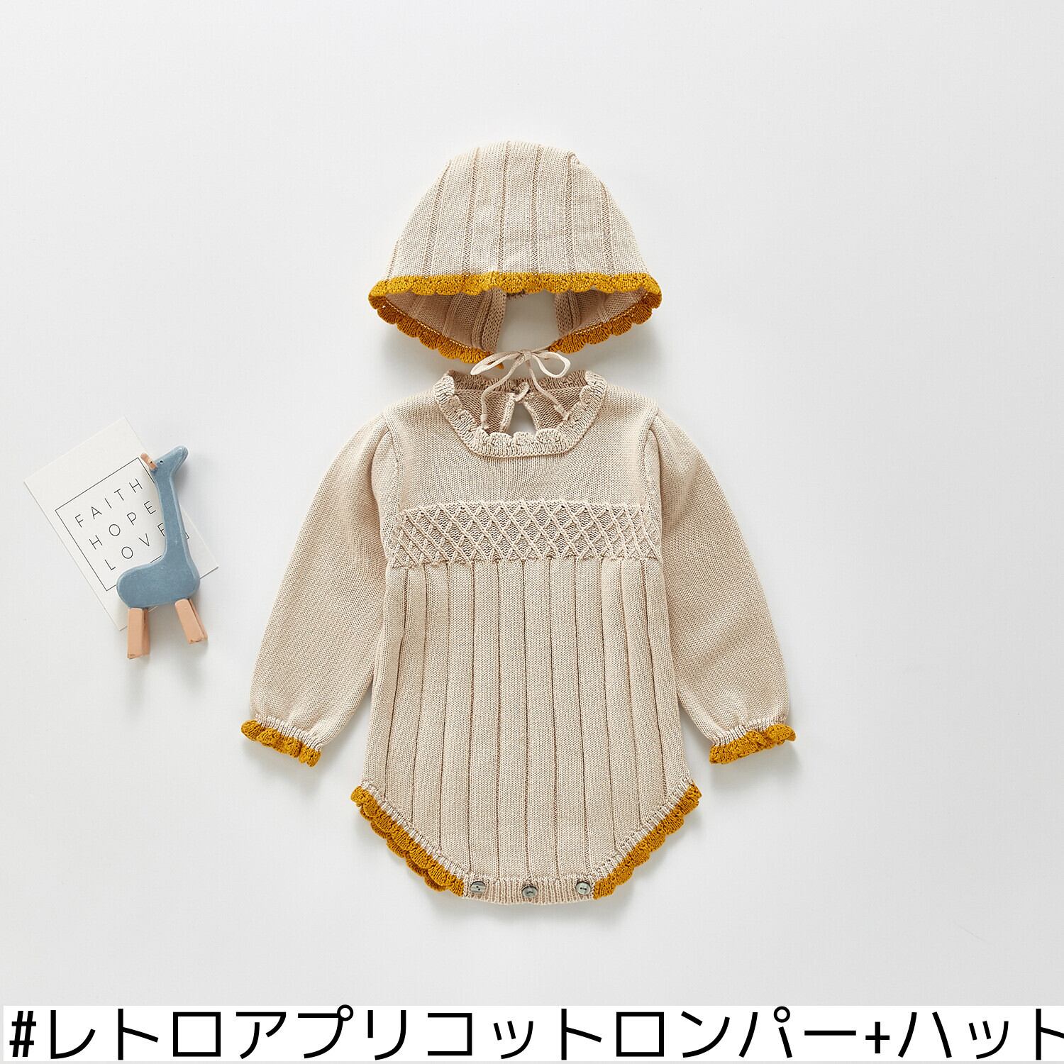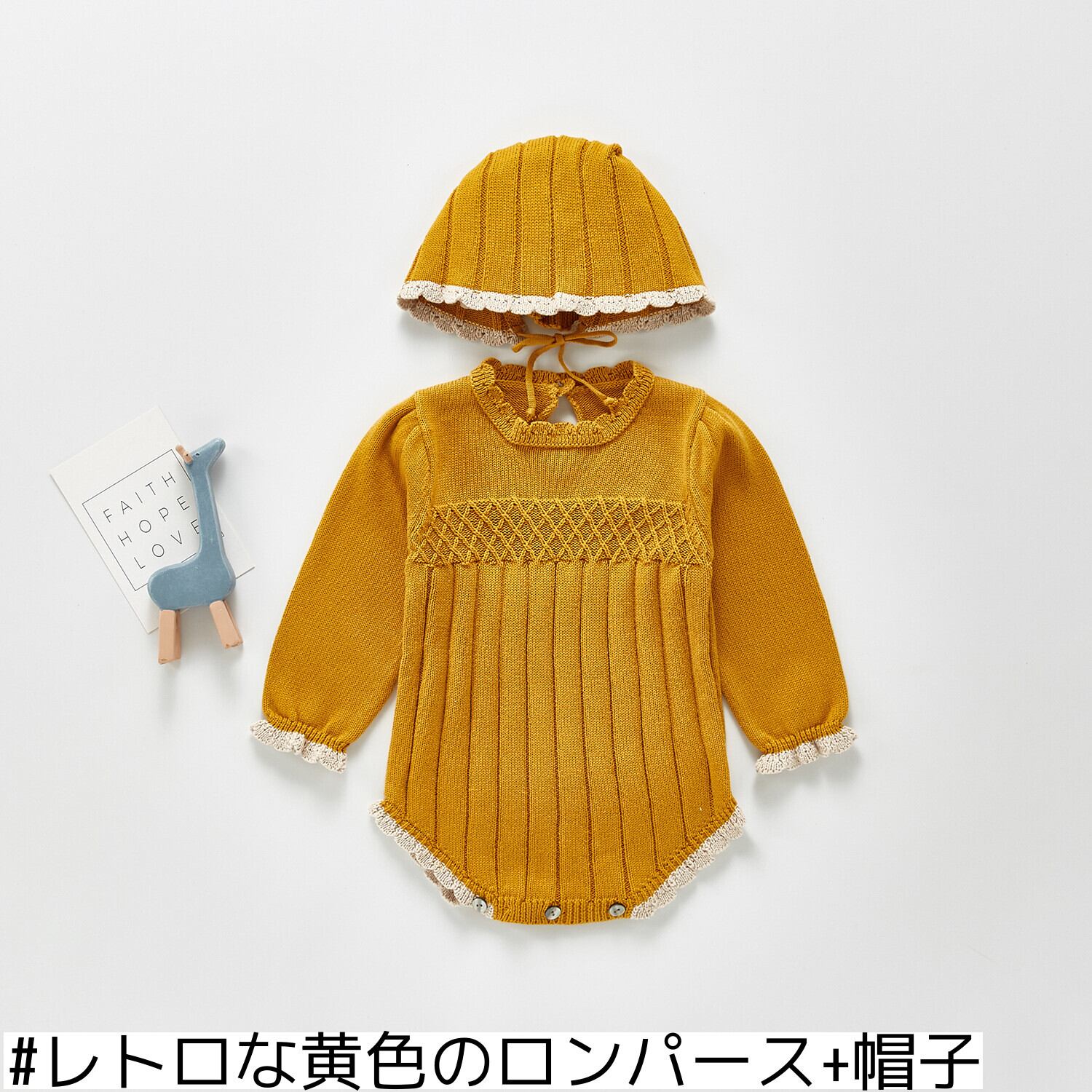 色:レトロな黄色のロンパース+帽子,レトロアプリコットロンパー+ハット