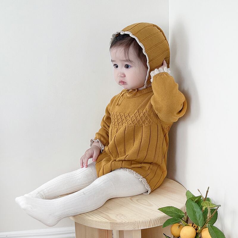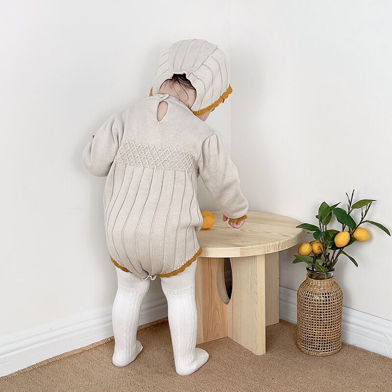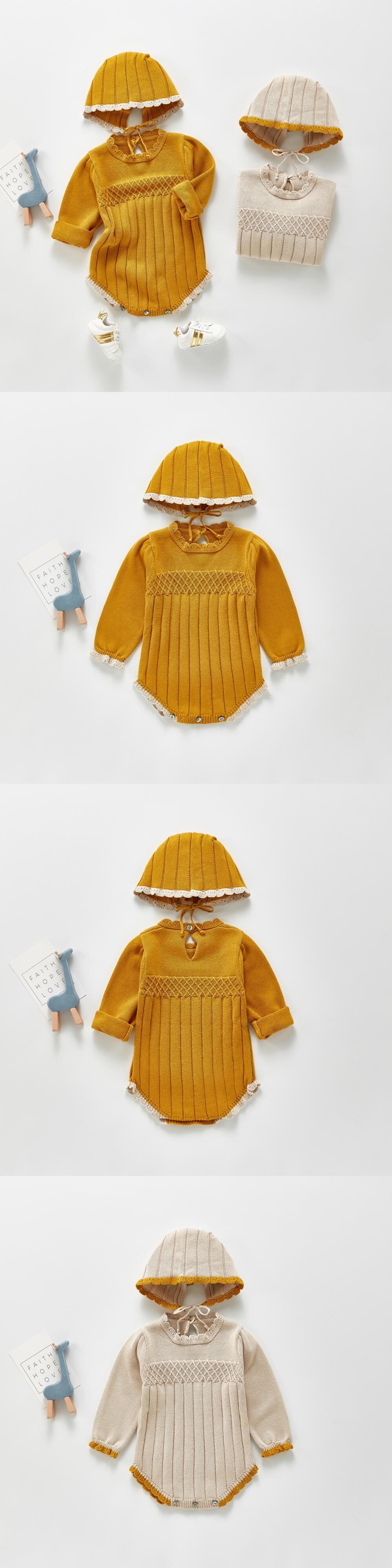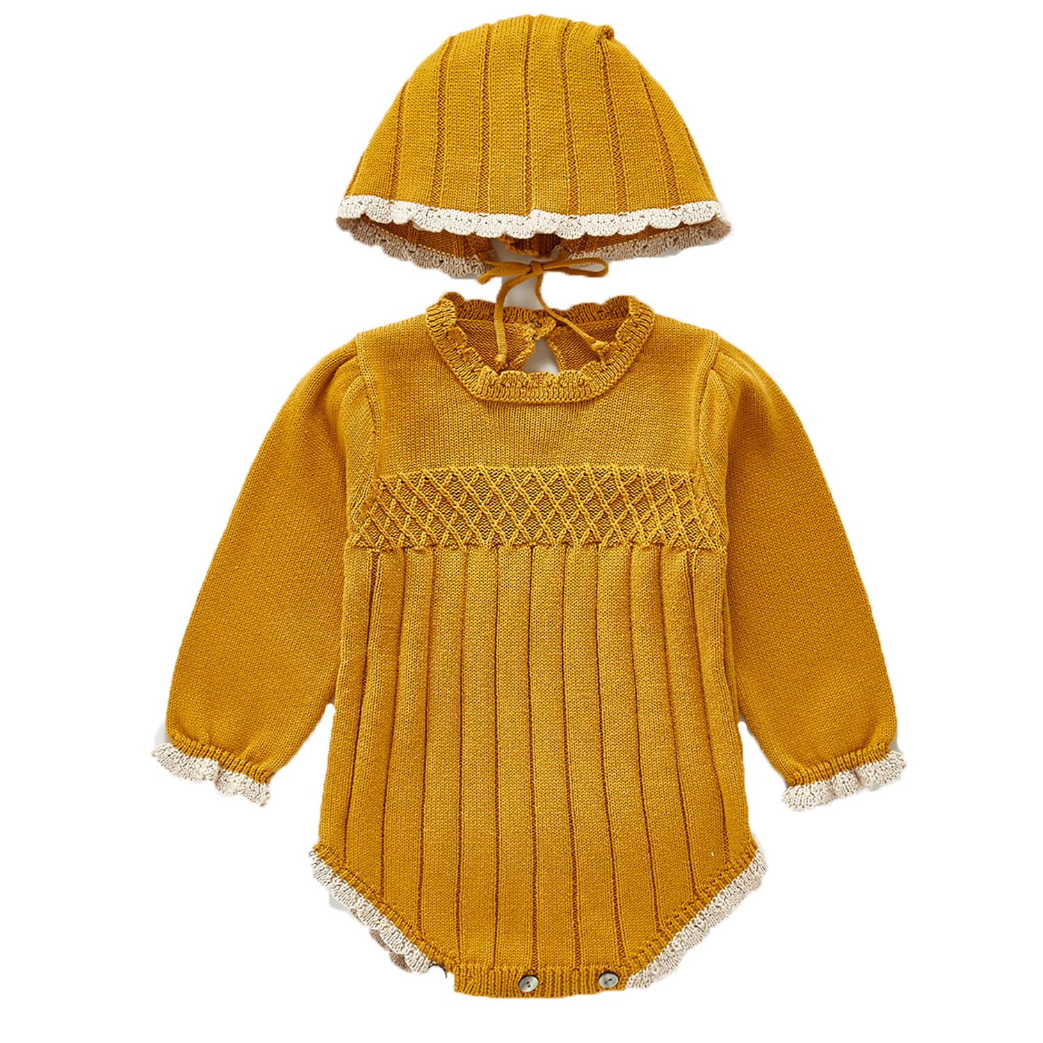 色:レトロな黄色のロンパース+帽子,レトロアプリコットロンパー+ハット