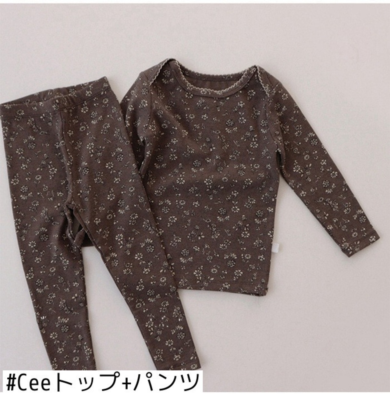色:Ceeトップ+パンツ,Ceeロンパース+ウエストパンツ,グレーロンパース+ウエストパンツ,フローラルグレーのブラウス+パンツ