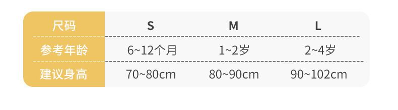 サイズ:XSコード[6〜12か月に適しています][推奨ボディ,Sコード[1〜2歳に適しています][推奨身長80-,Mコード[2〜4歳に適しています][推奨身長90-