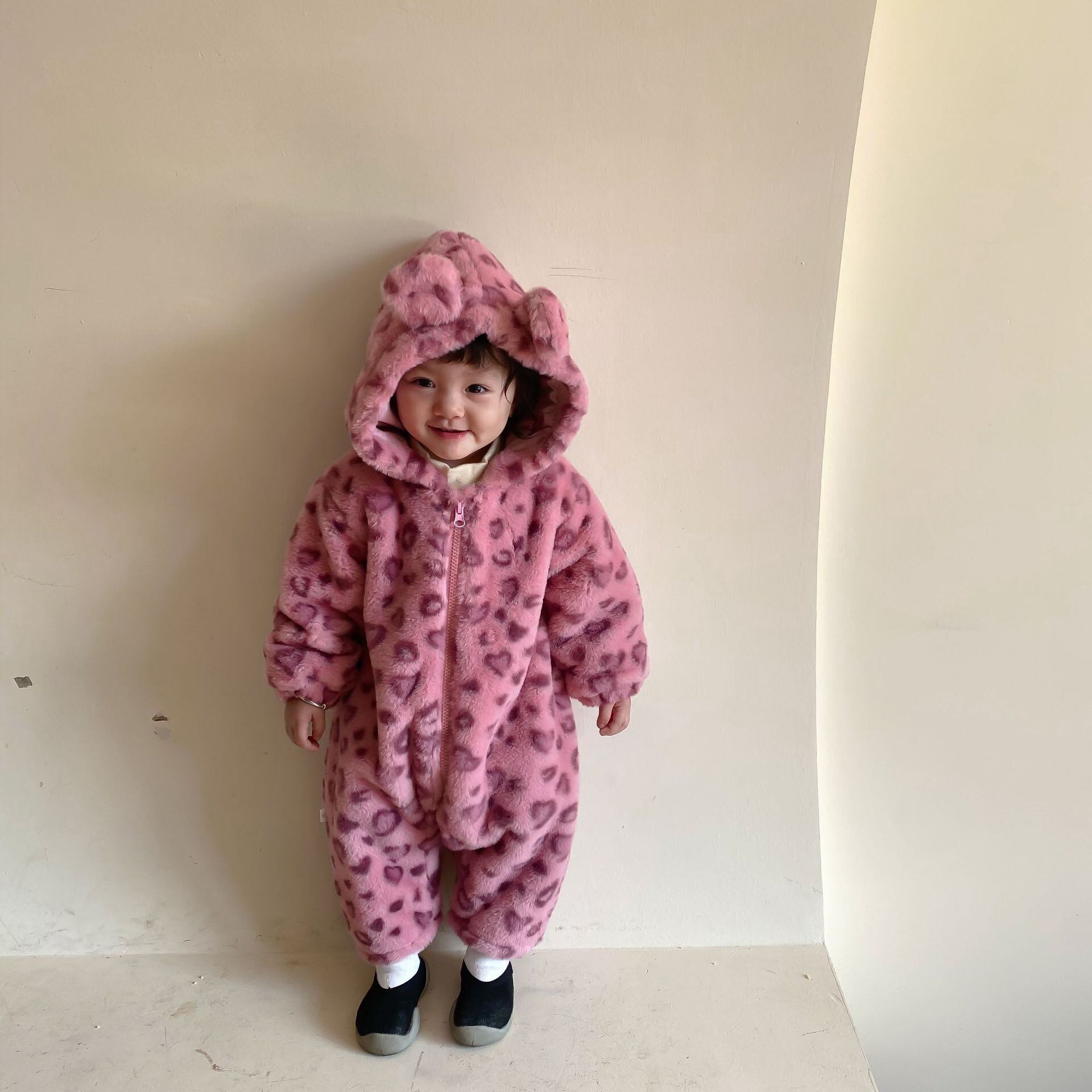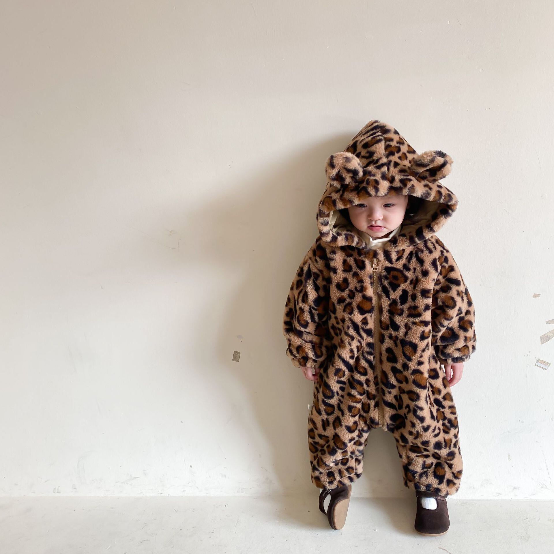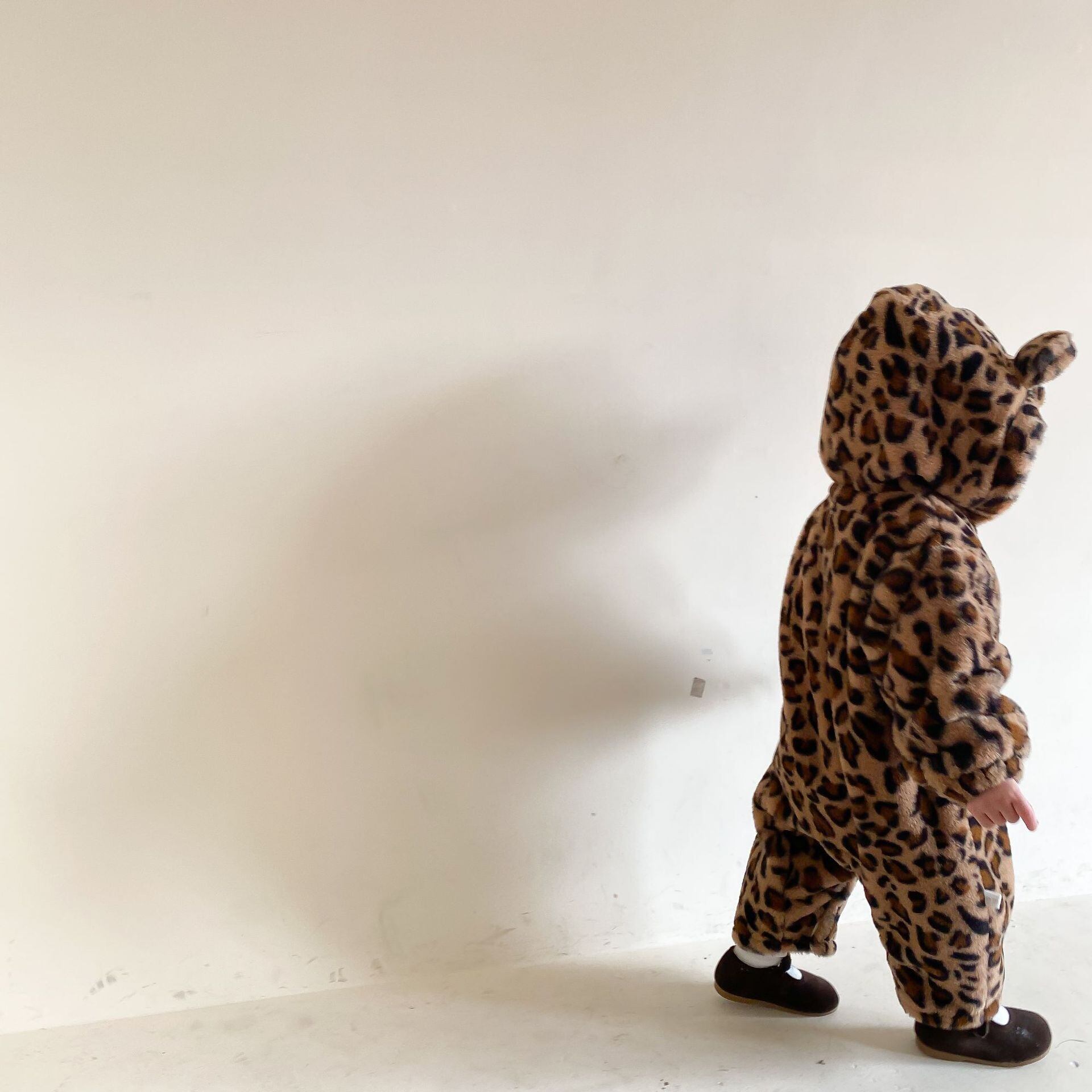 ウィンターレオパードプリント柄ジャンプスーツ オールインワン レディースフード 大人ガーリー スウィート キュート カジュアル 冬物 9/24 秋冬 mi0933013550362
