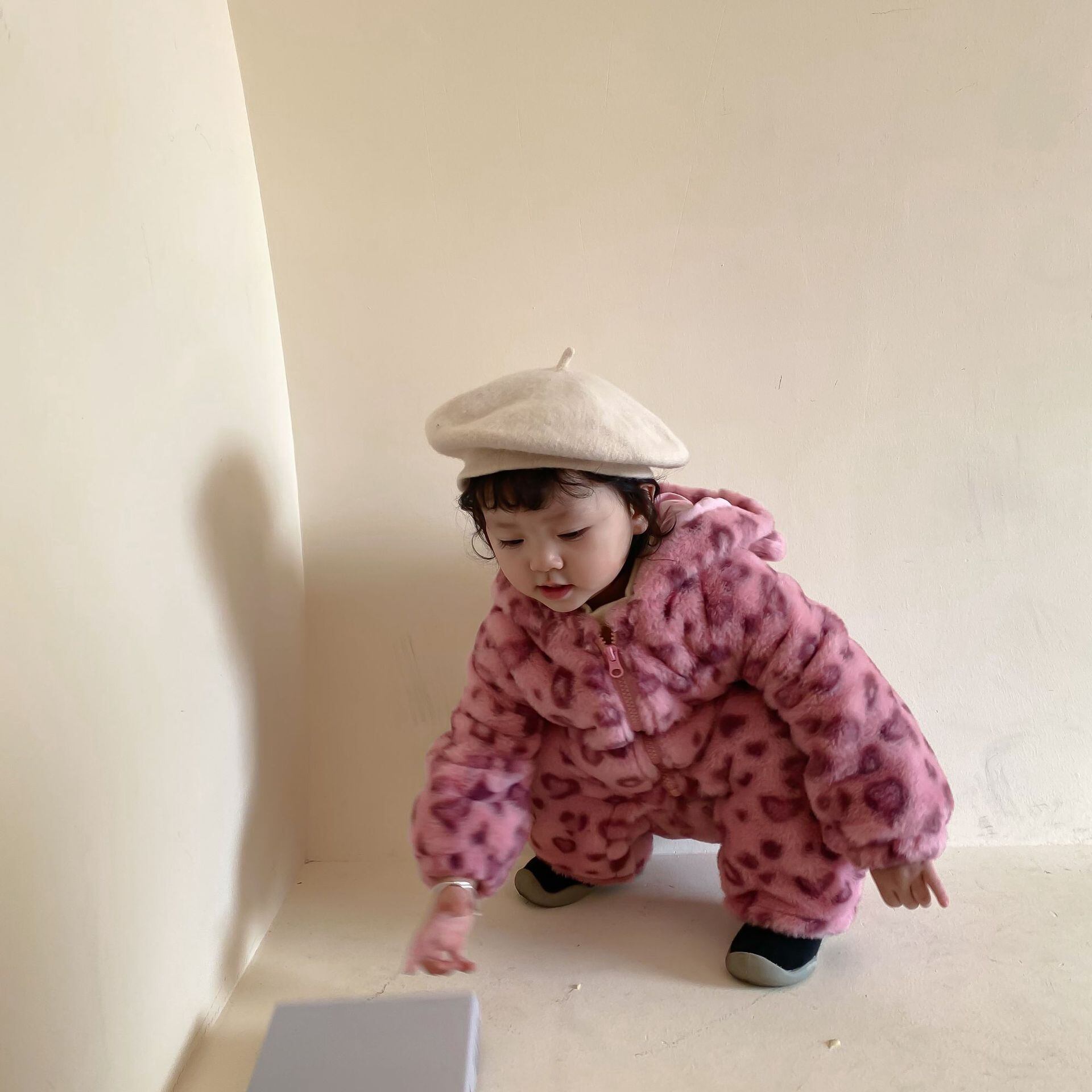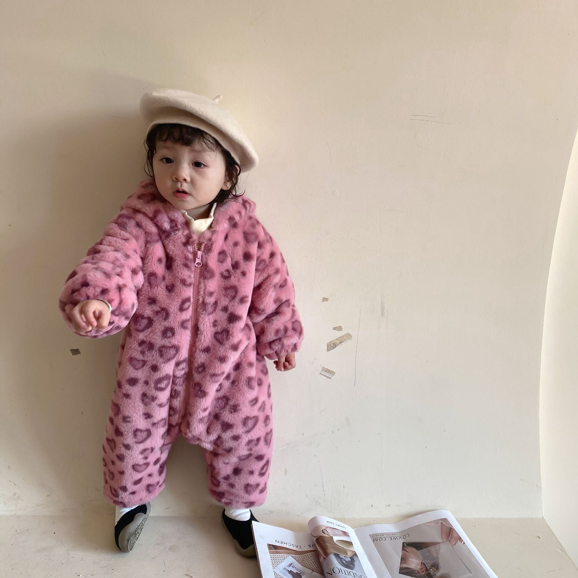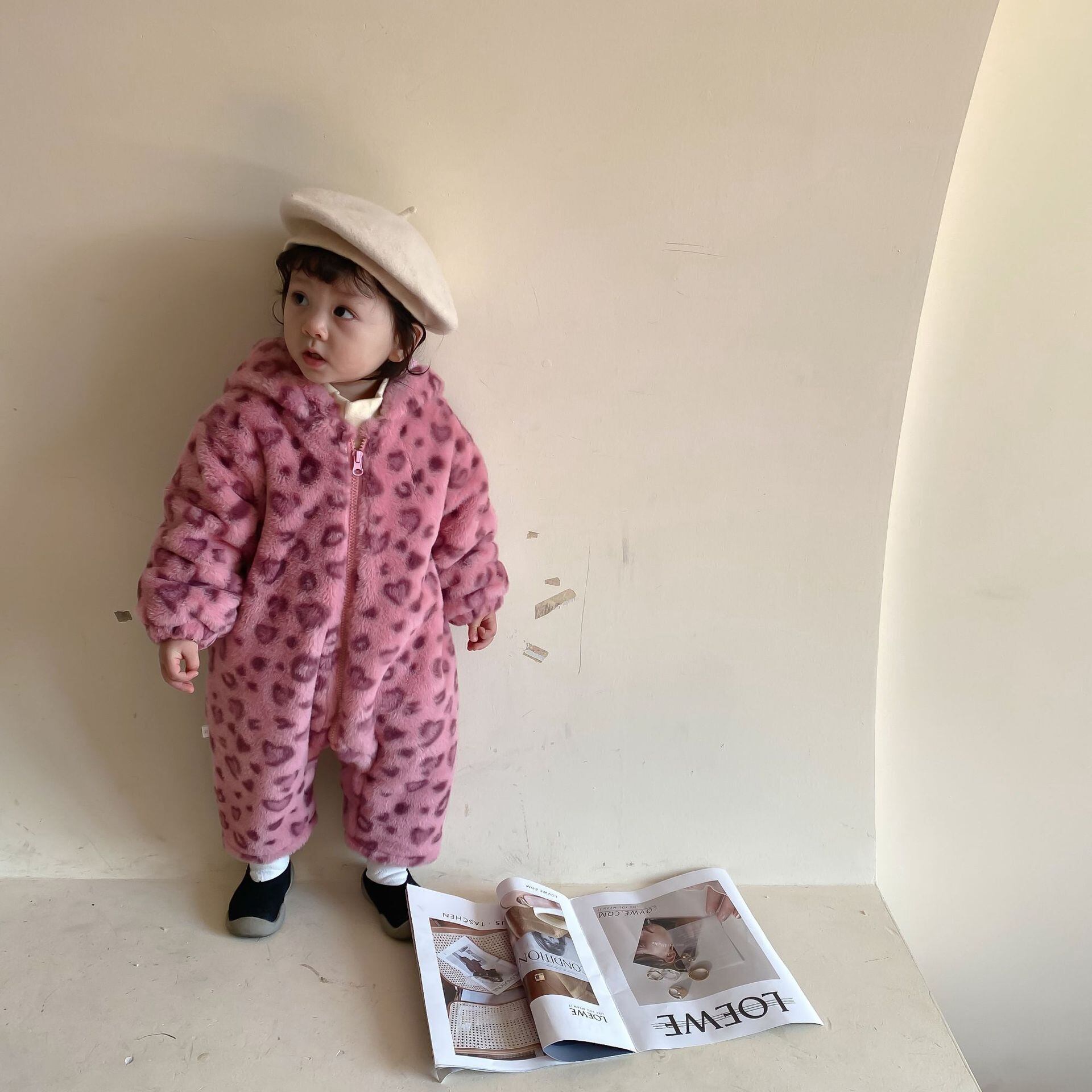 ウィンターレオパードプリント柄ジャンプスーツ オールインワン レディースフード 大人ガーリー スウィート キュート カジュアル 冬物 9/24 秋冬 mi0933013550362
