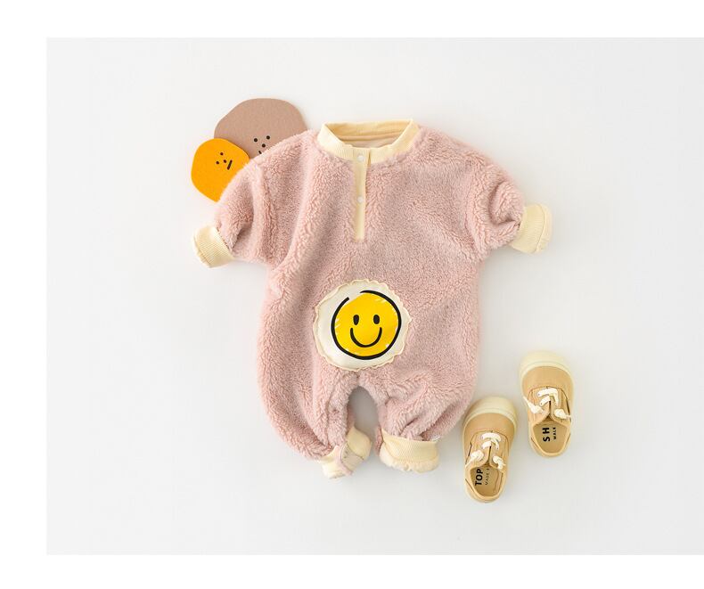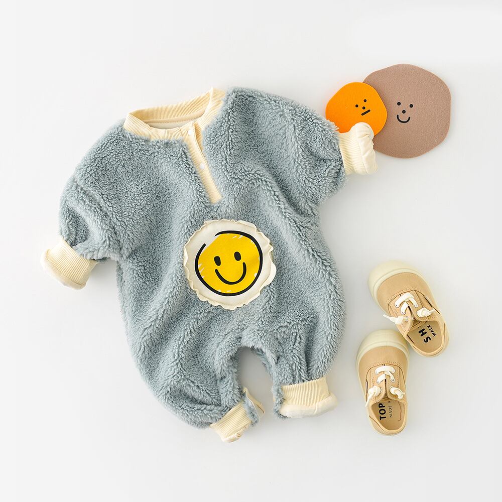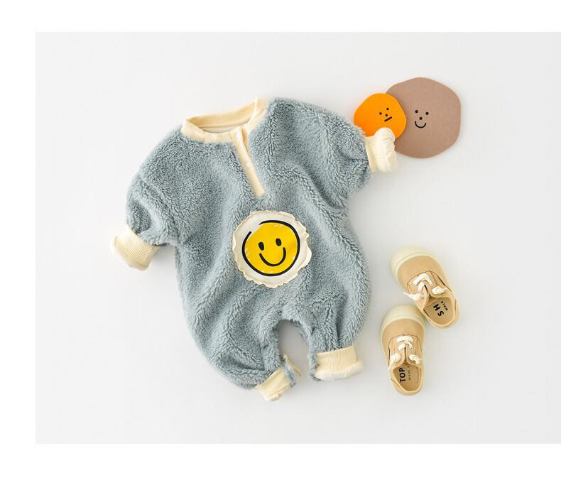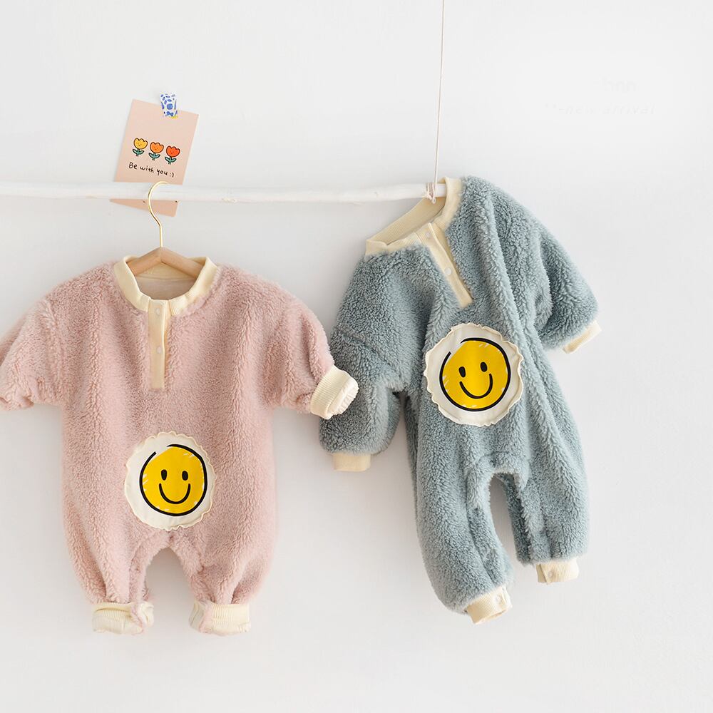 色:厚みのあるブルースマイリーロンパース,ピンクのスマイリーロンパースが厚くなりました