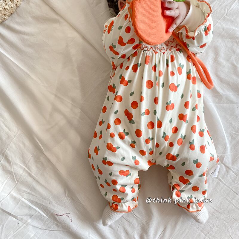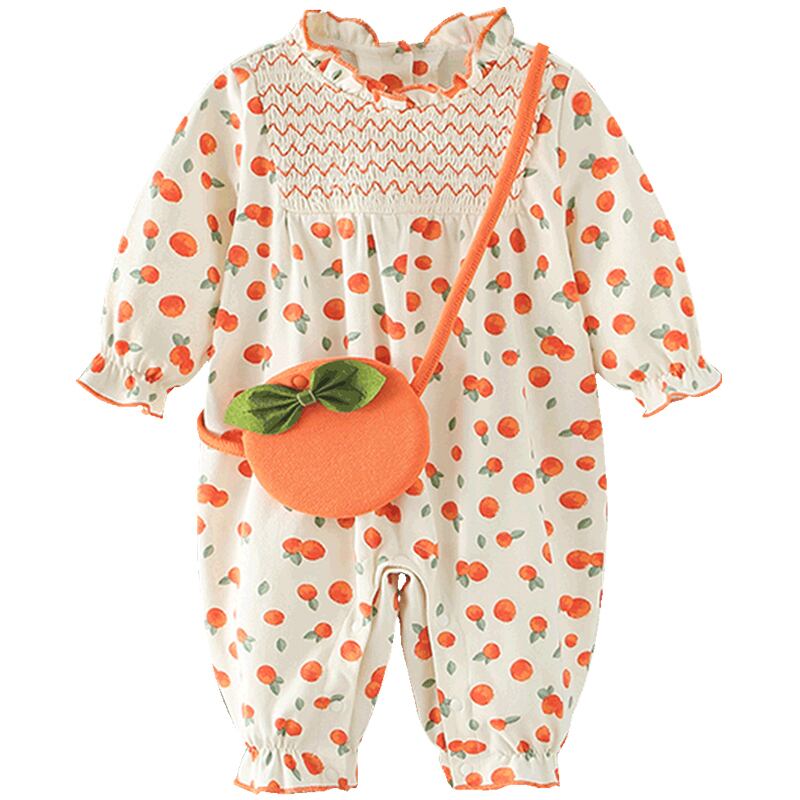 スプリングオレンジプリントジャンプスーツ オールインワン ロンパース オールインワン ロング 大人ガーリー スウィート キュート カジュアル 春物 9/24 秋冬 mi0924802614449