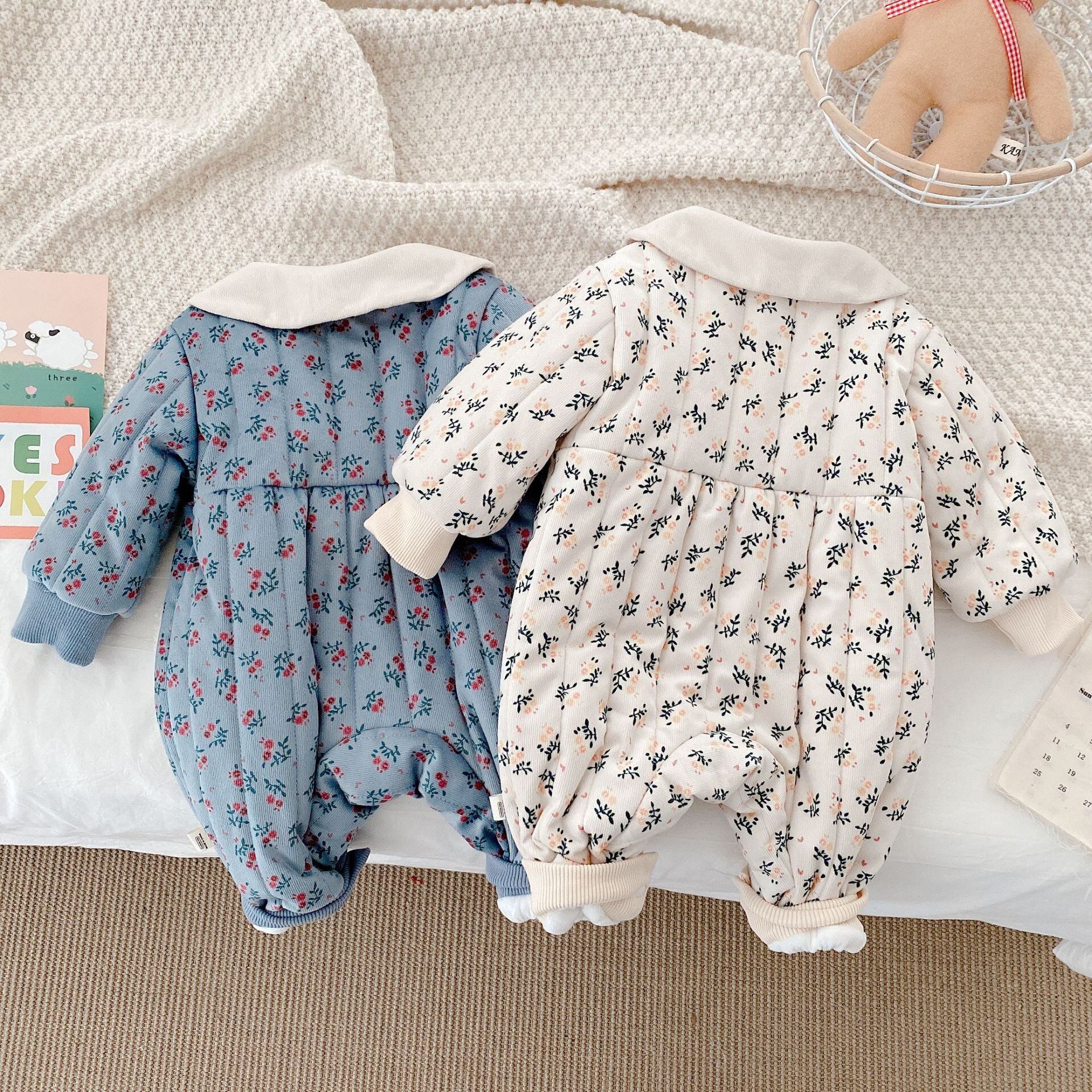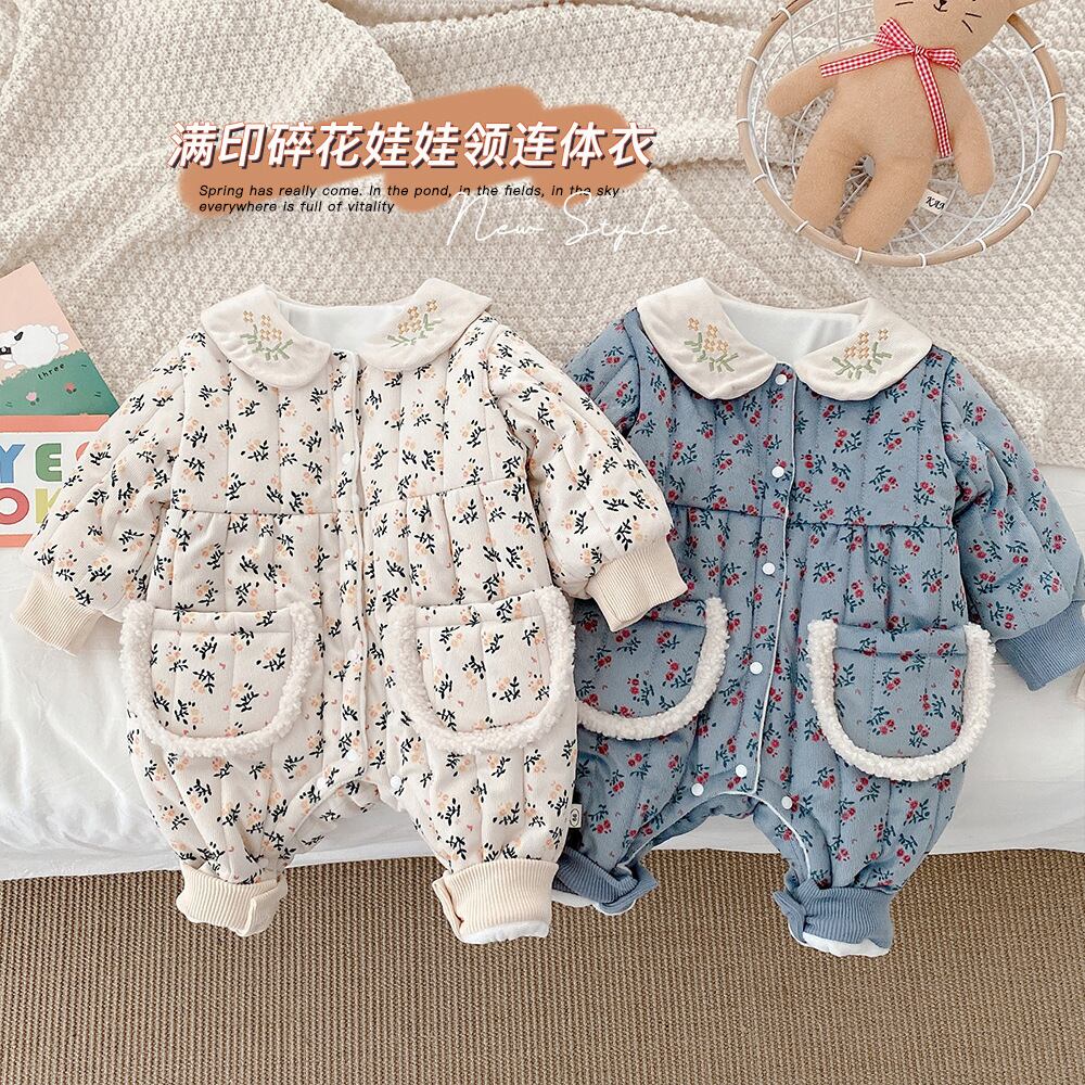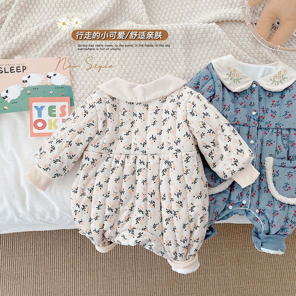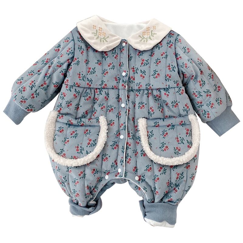 ウィンタースタイルフローラルジャンプスーツ オールインワン ベルベットロンパース オールインワン 冬物 花柄 9/24 秋冬 mi0989649903066