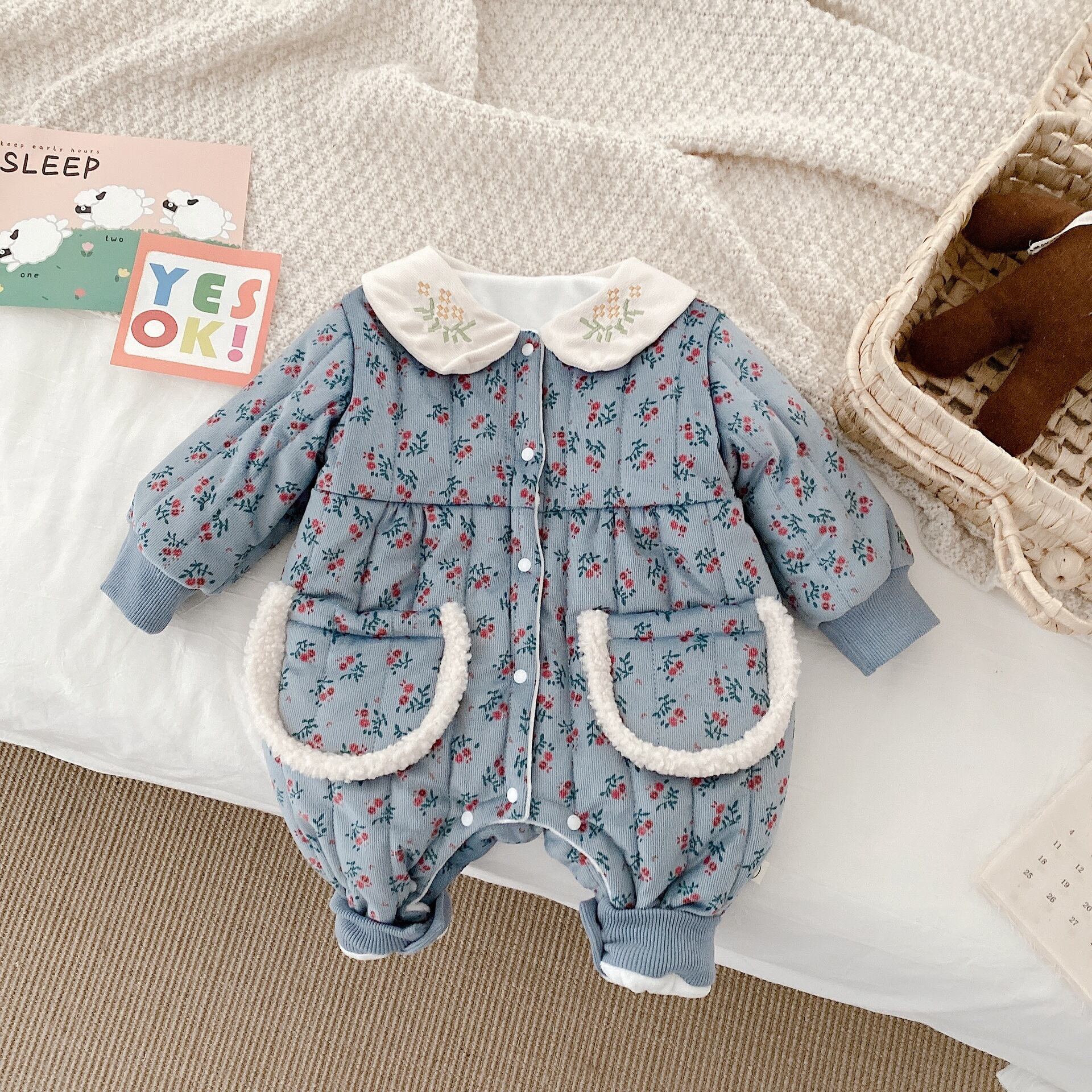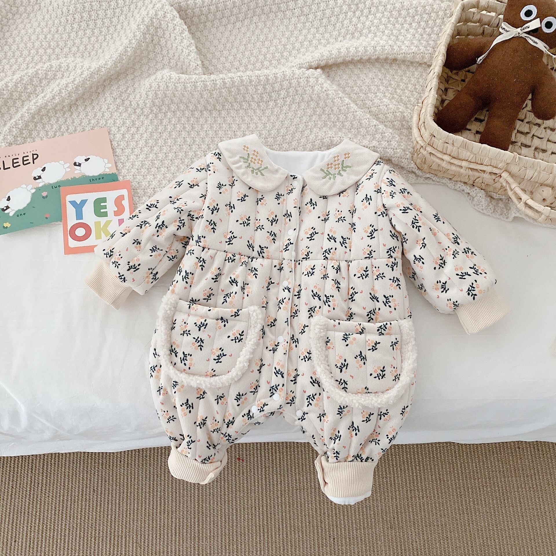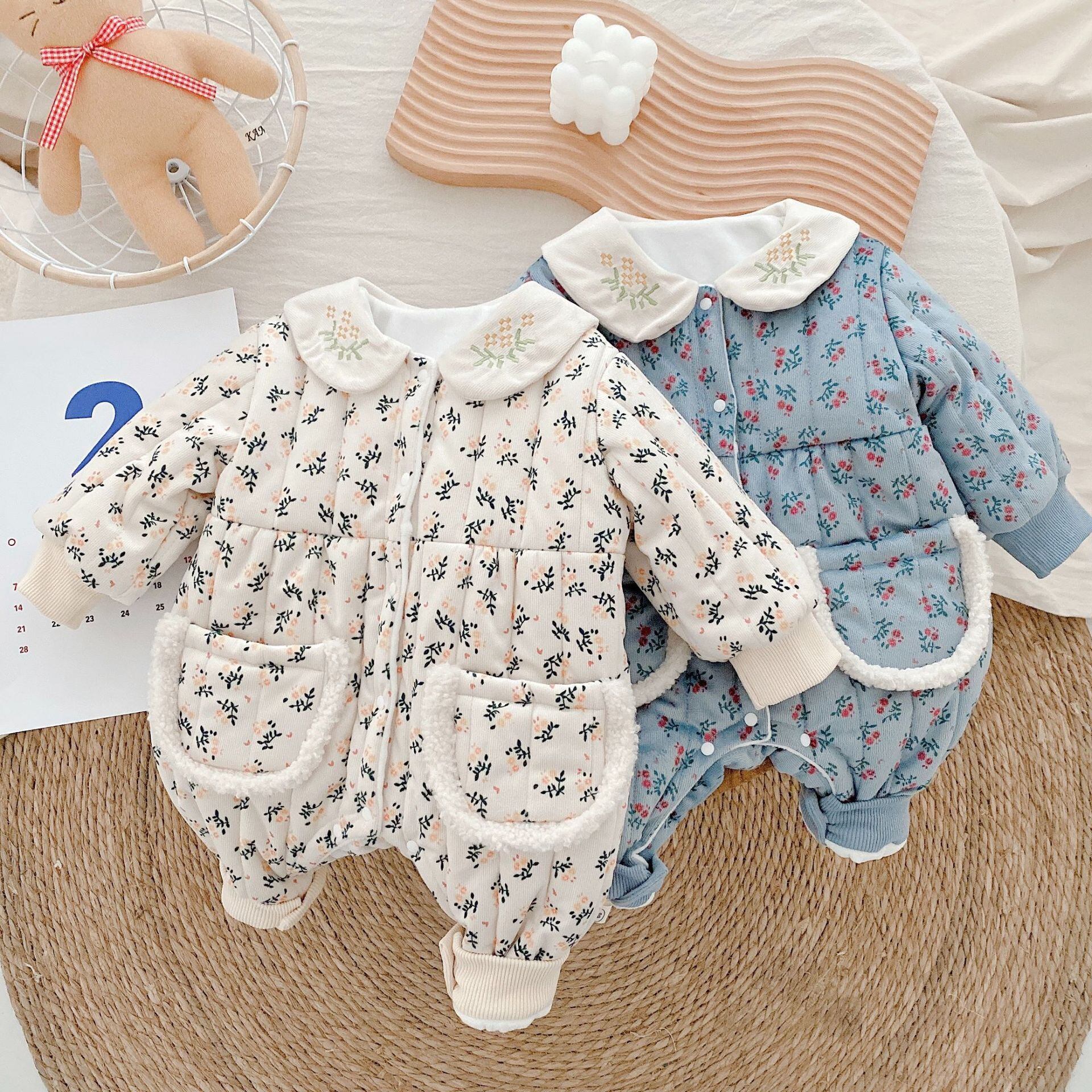 ウィンタースタイルフローラルジャンプスーツ オールインワン ベルベットロンパース オールインワン 冬物 花柄 9/24 秋冬 mi0989649903066