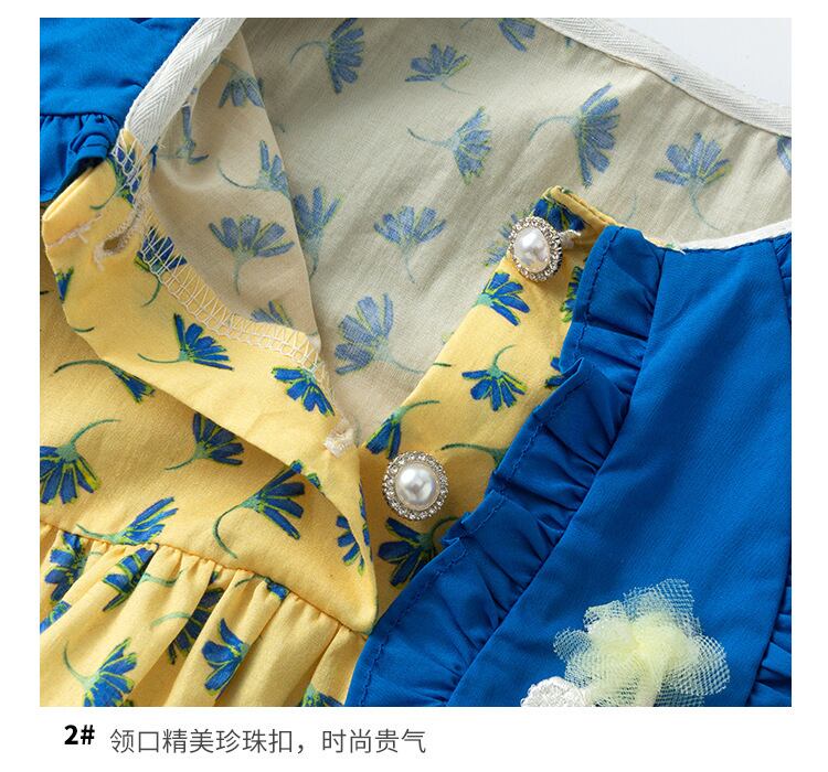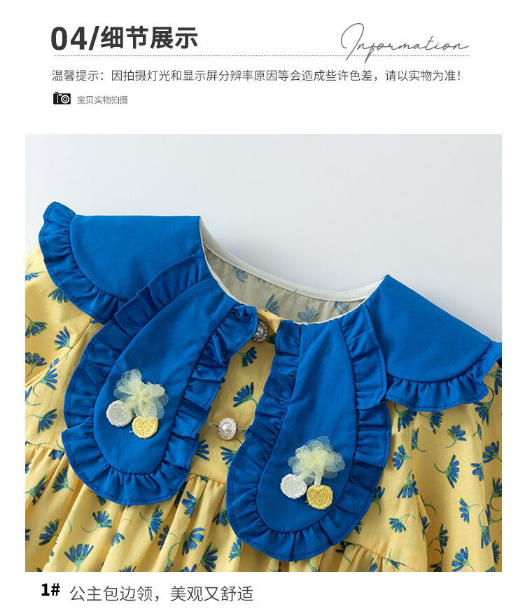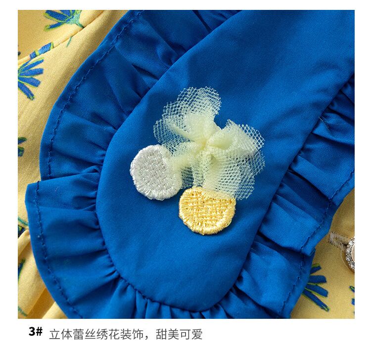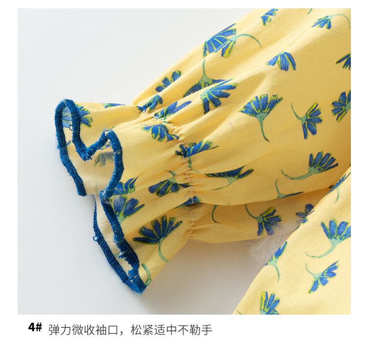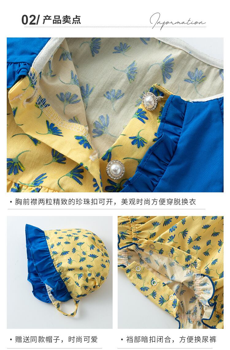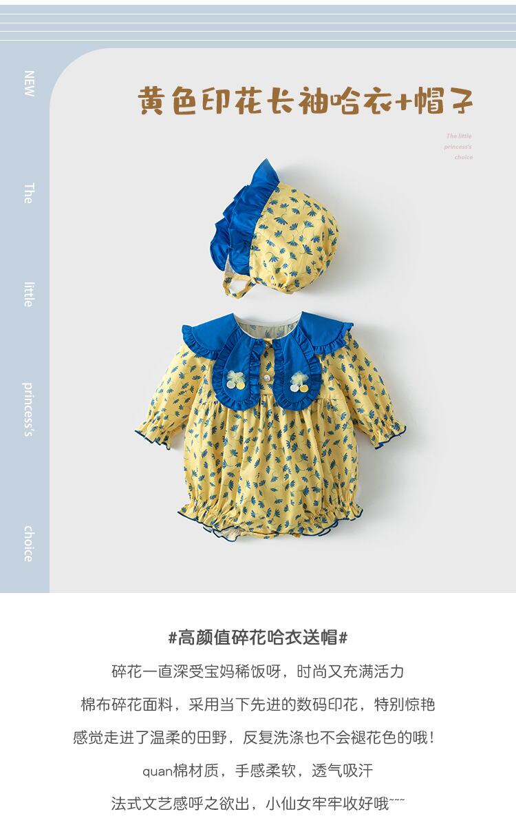 色:イエロープリント長袖ロンパース+帽子