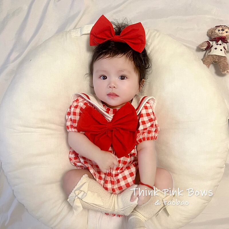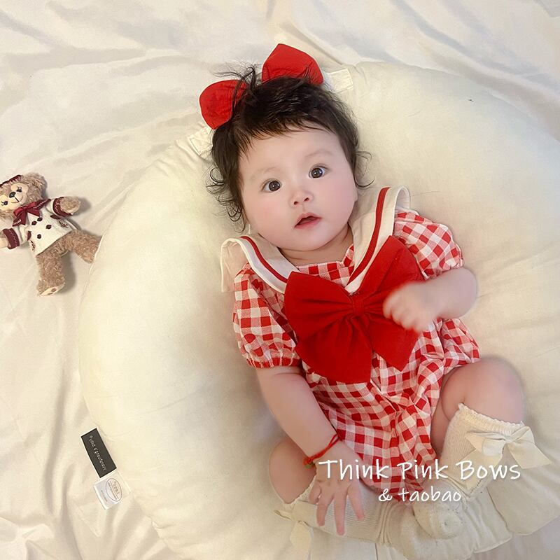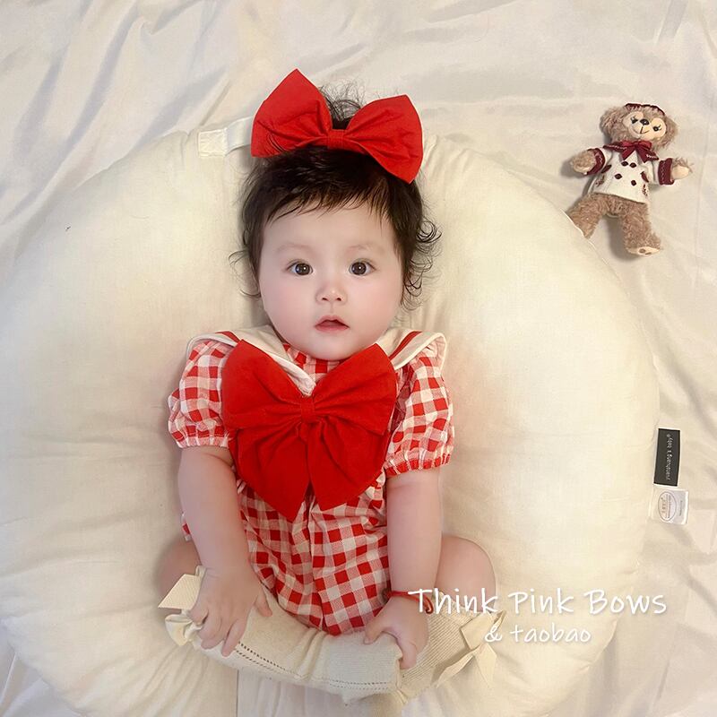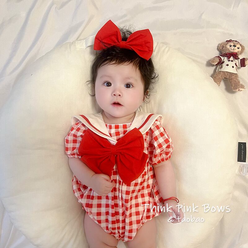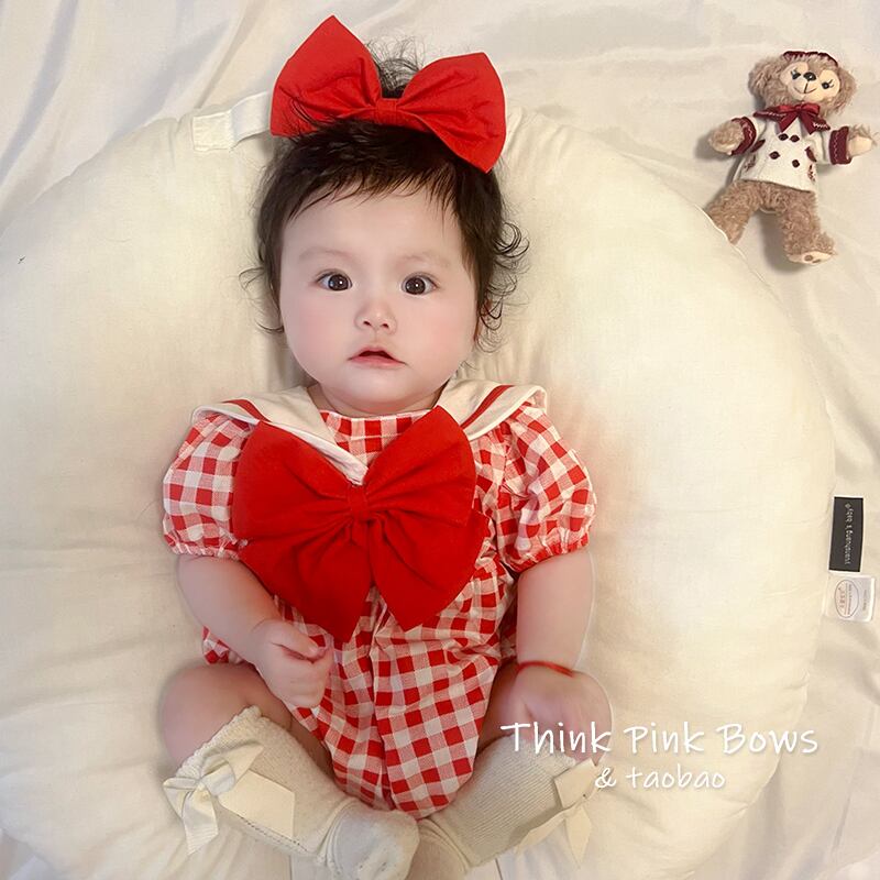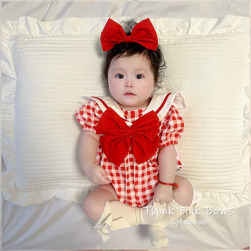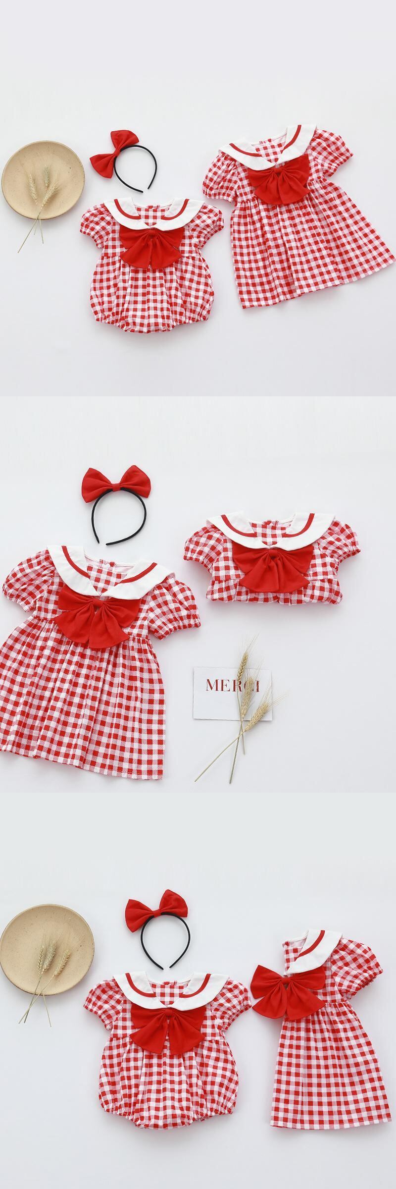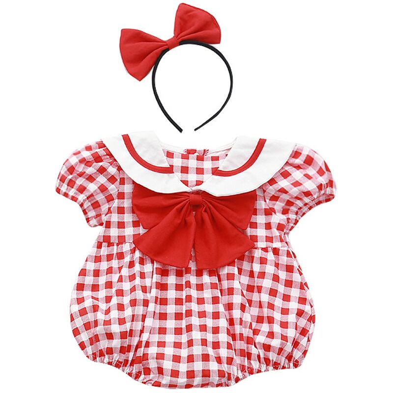 サマーレッド格子柄リボントライアングルロンパース オールインワン スタイルドレス ヘアバンド 夏物 ヘアアクセサリー 9/24 秋冬 mi0974191108698 | Sagittarius By Constellation -KIDS&BABY-