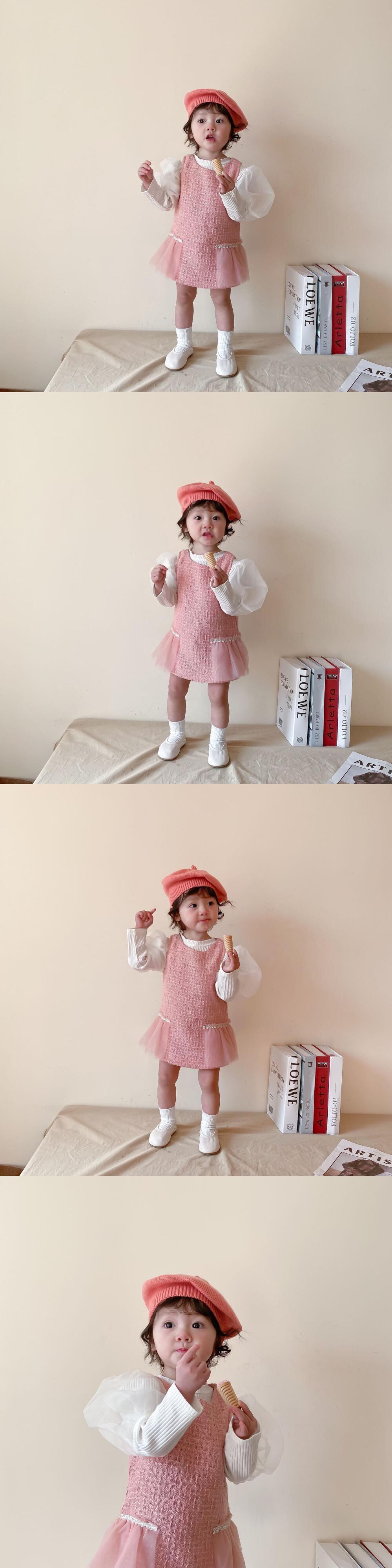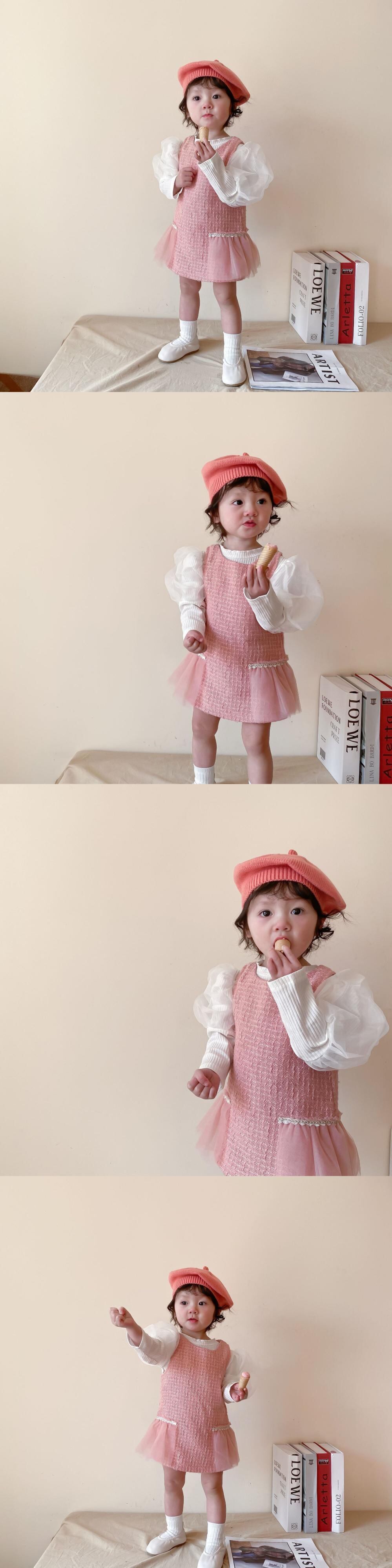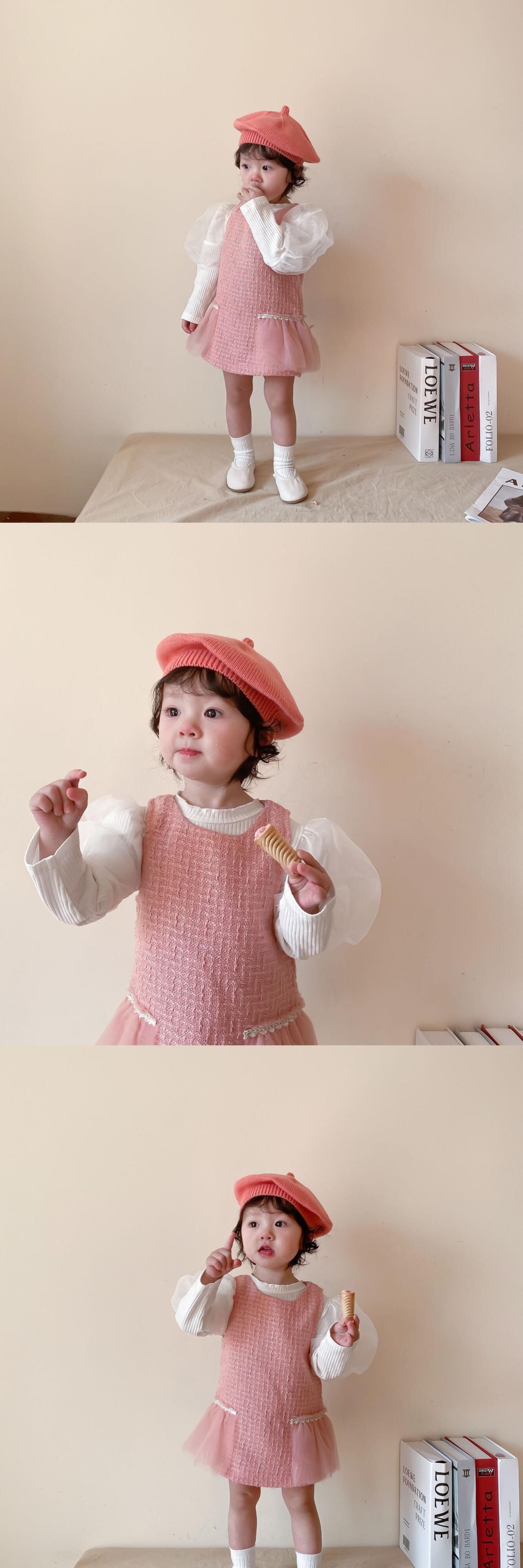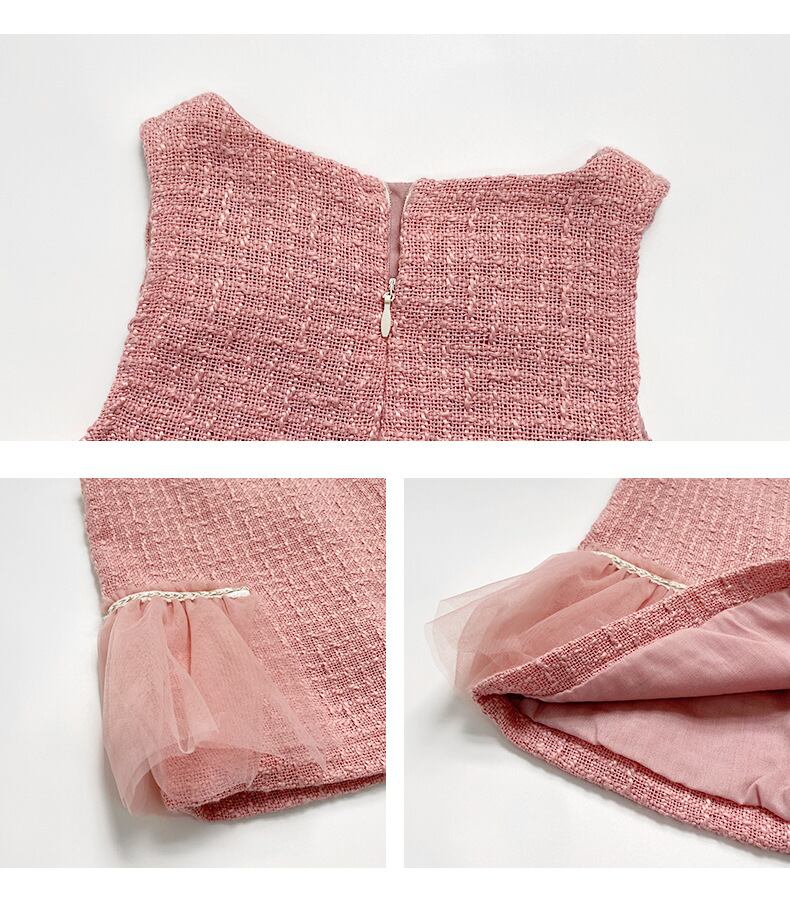 色:ピンクのスモールフレグランスベストスカート,パフスリーブボトミングシャツ