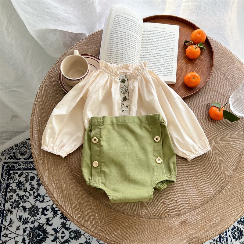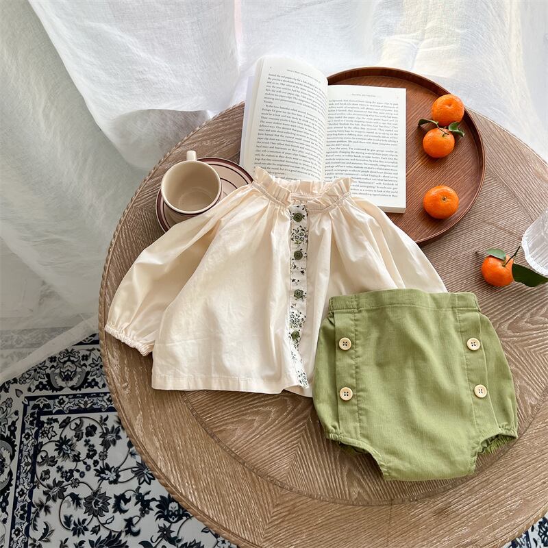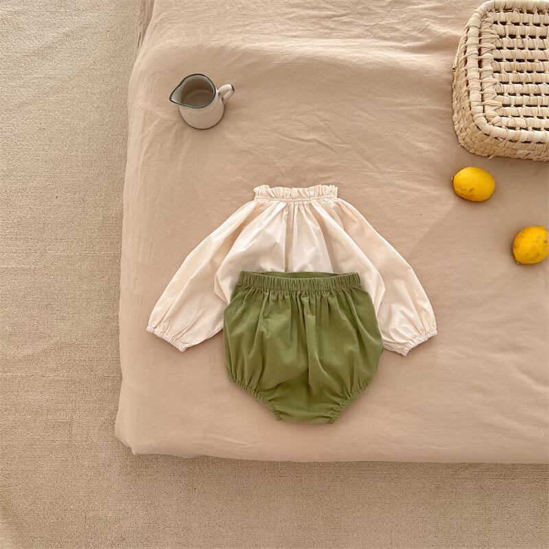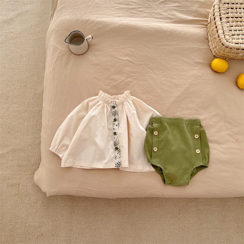 スプリングレースカラーシャツ グリーンショーツ セット 大人ガーリー スウィート キュート カジュアル 春物 ブルマー 9/24 秋冬 mi0949293243172 | Sagittarius By Constellation -KIDS&BABY-