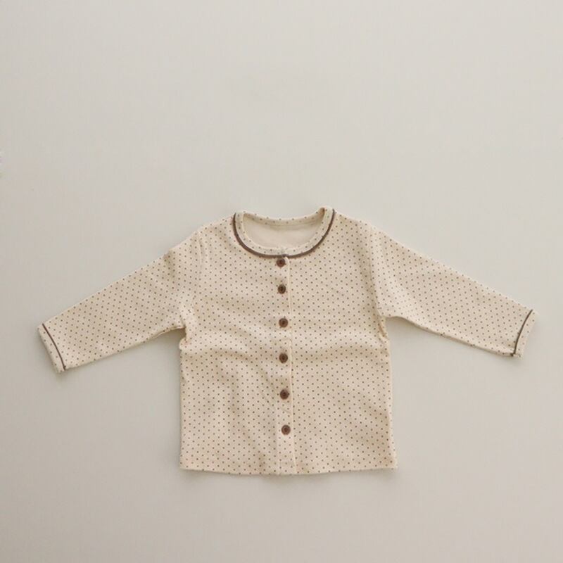 スプリングオータム水玉カーディガンラウンドネックカジュアル ロング コットン 春物 秋物 Oネック 9/24 秋冬 mi0972974624115